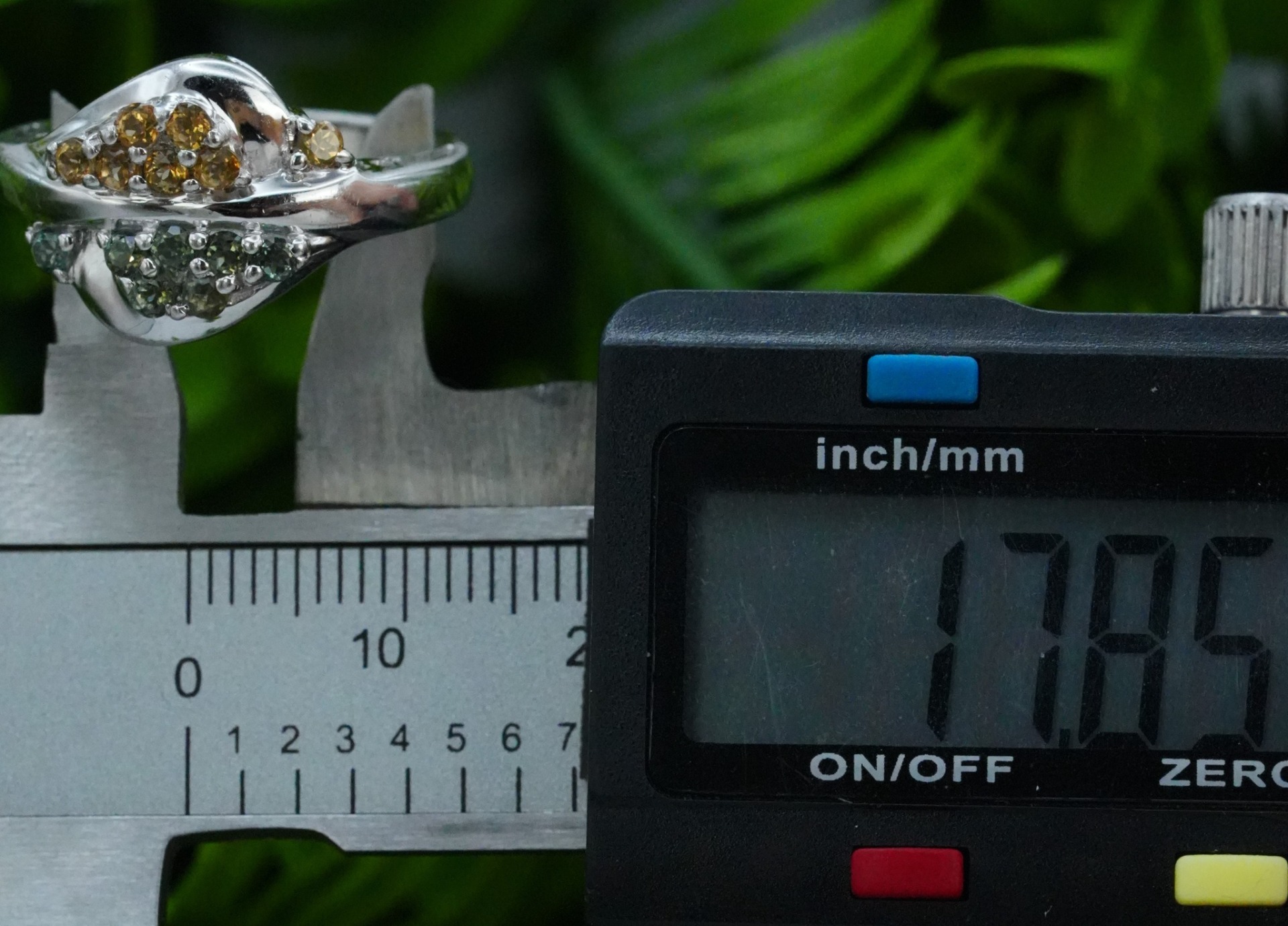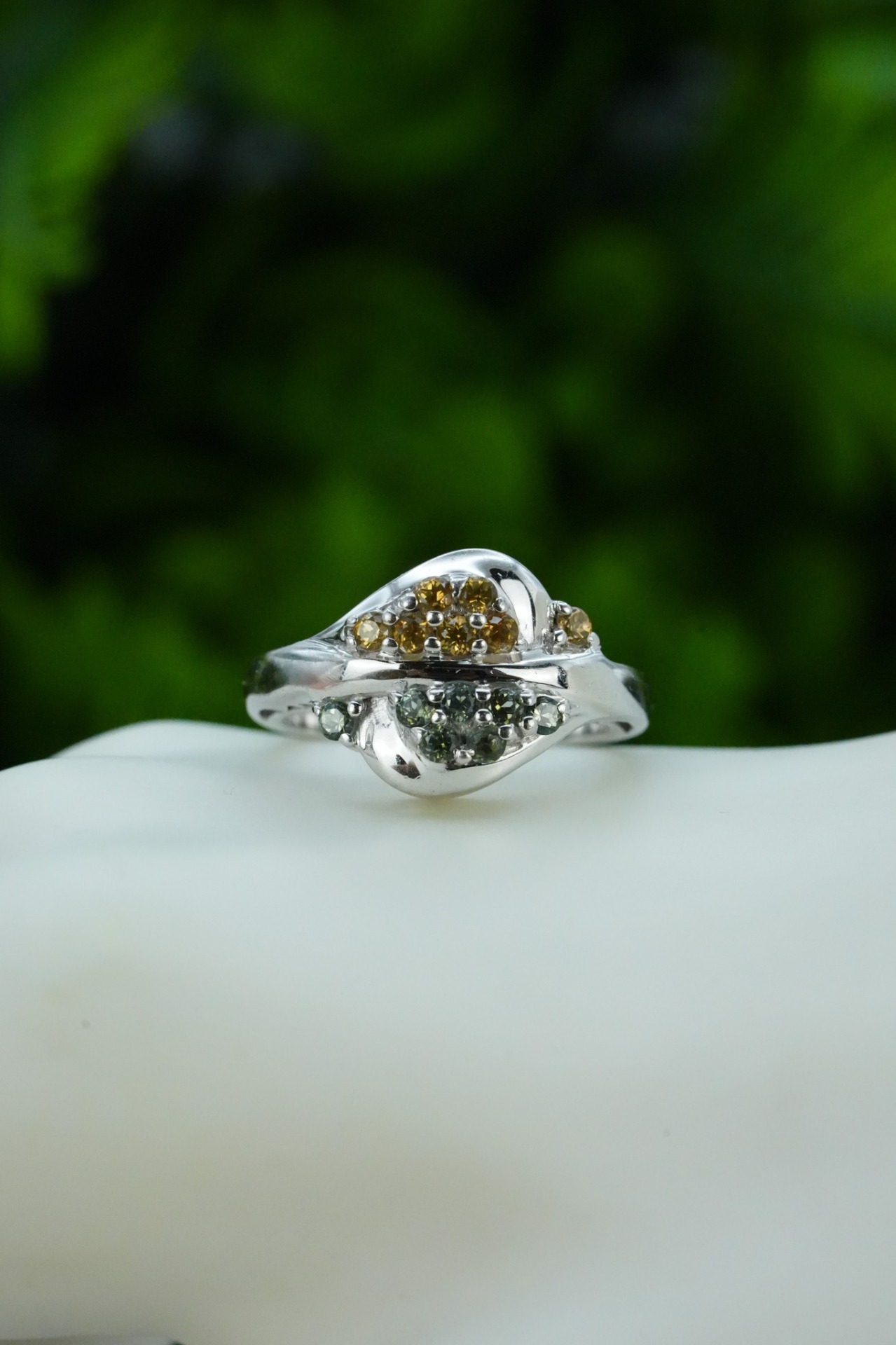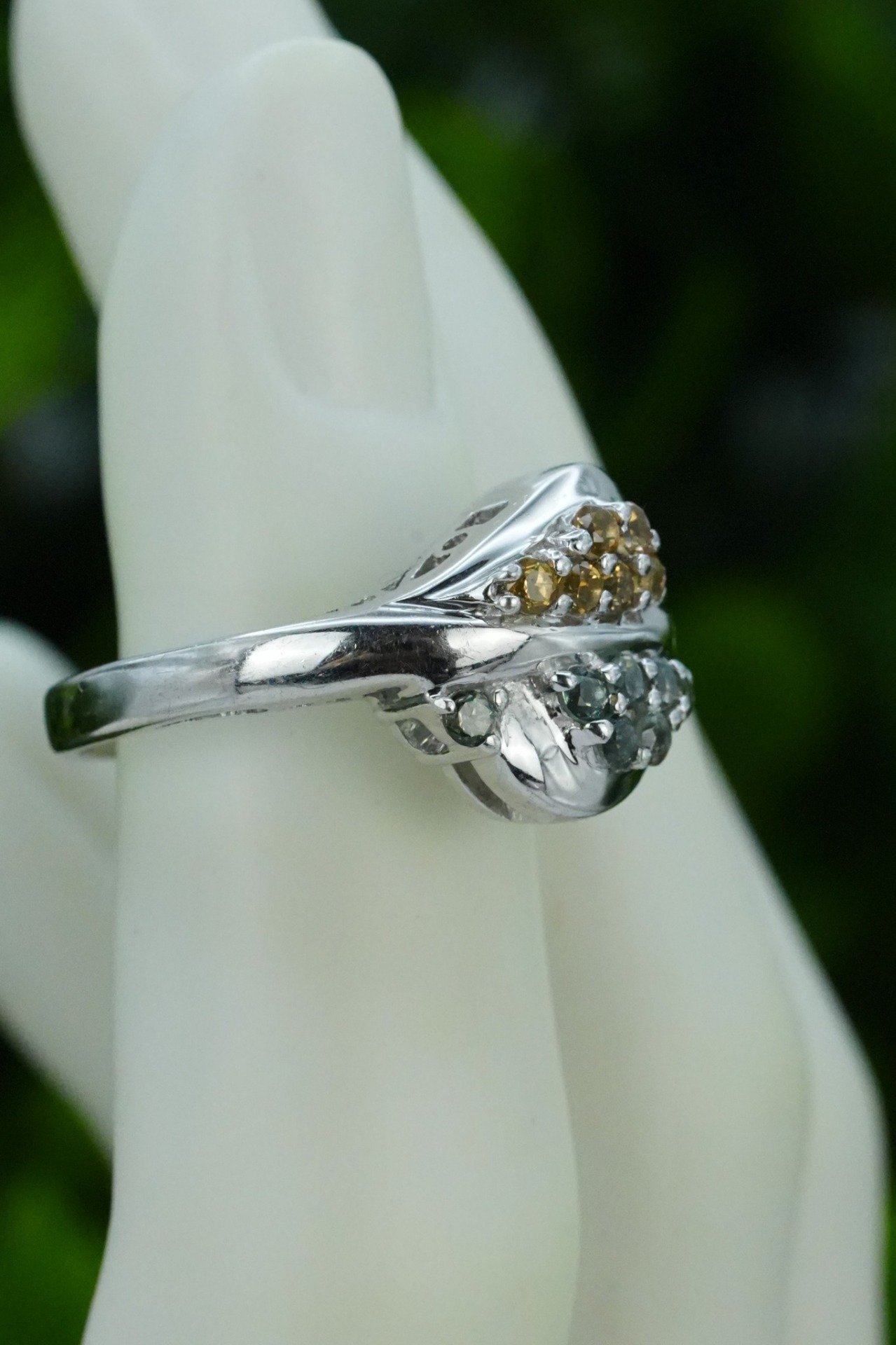 Inel vechi din argint, cu citrin și peridot naturale.