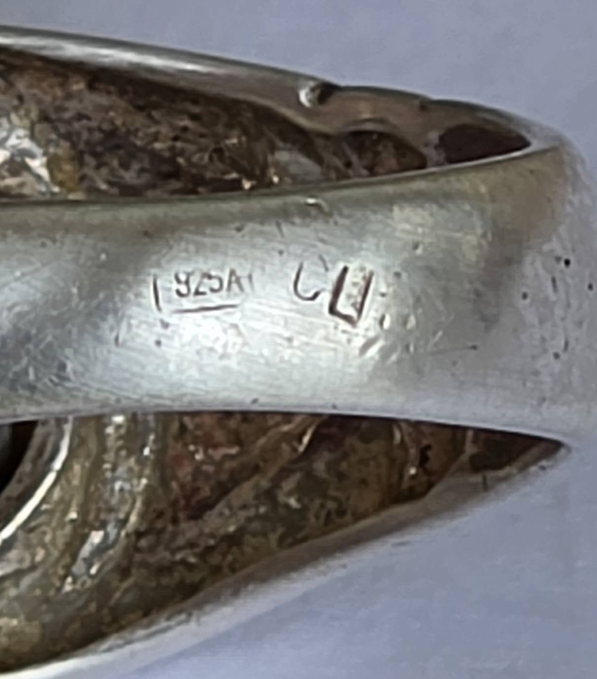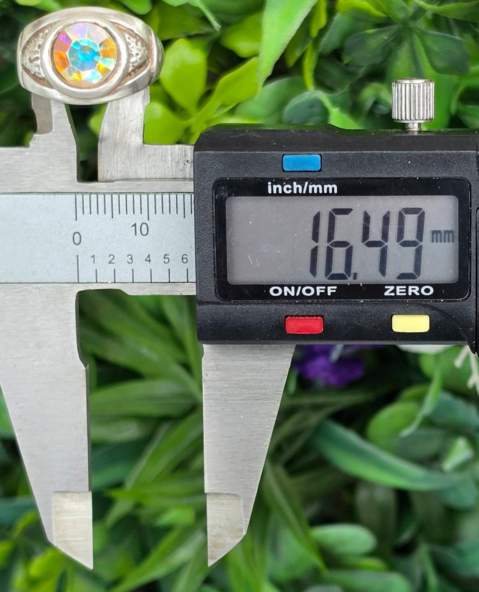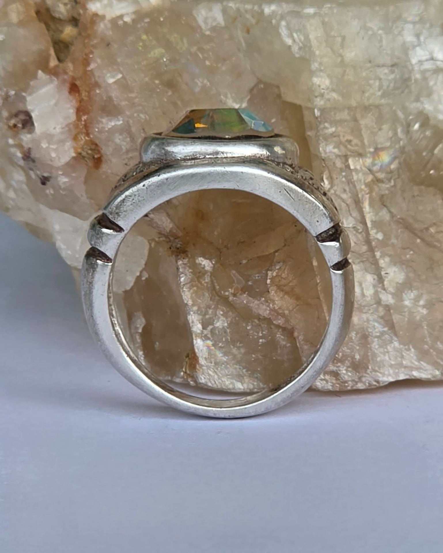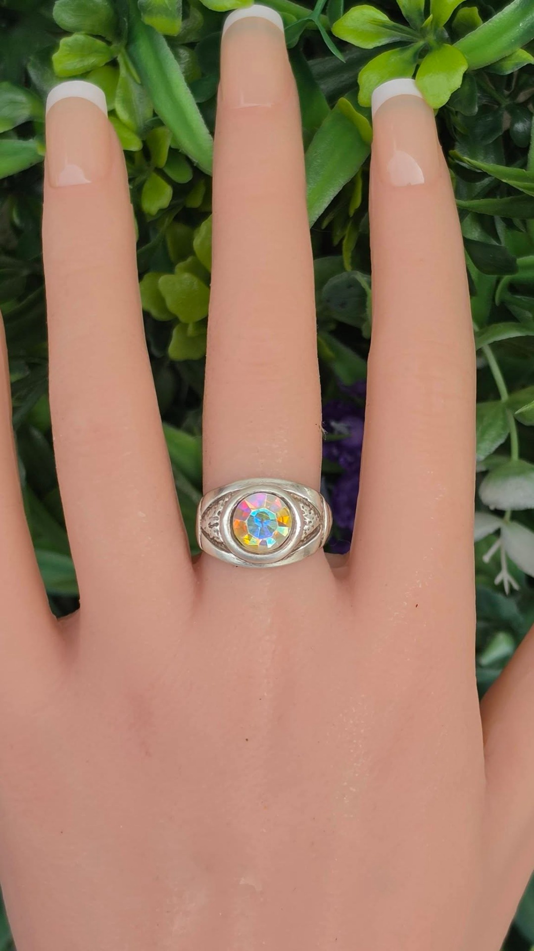 Inel vechi din argint, cu cristal Aurora Borealis.