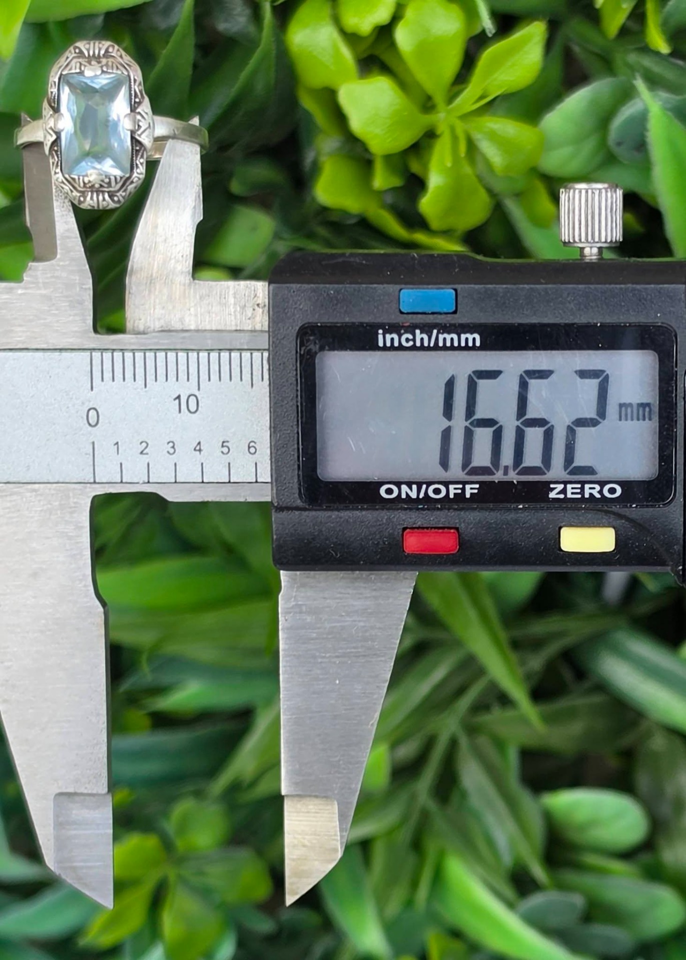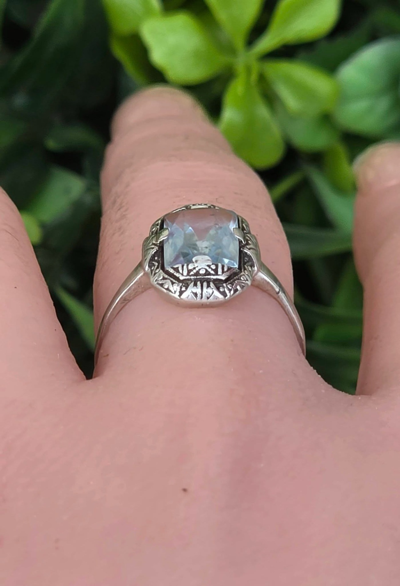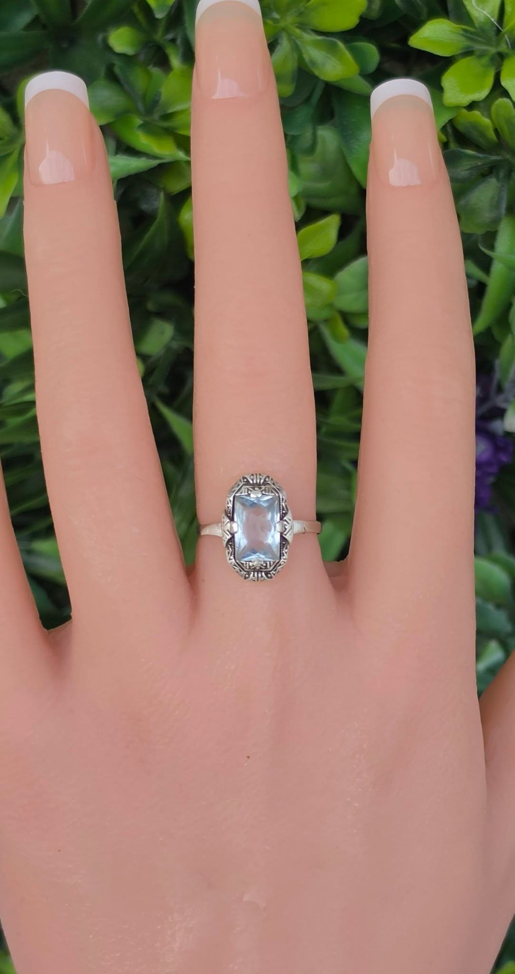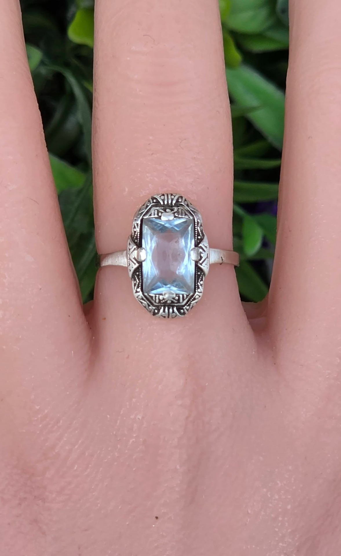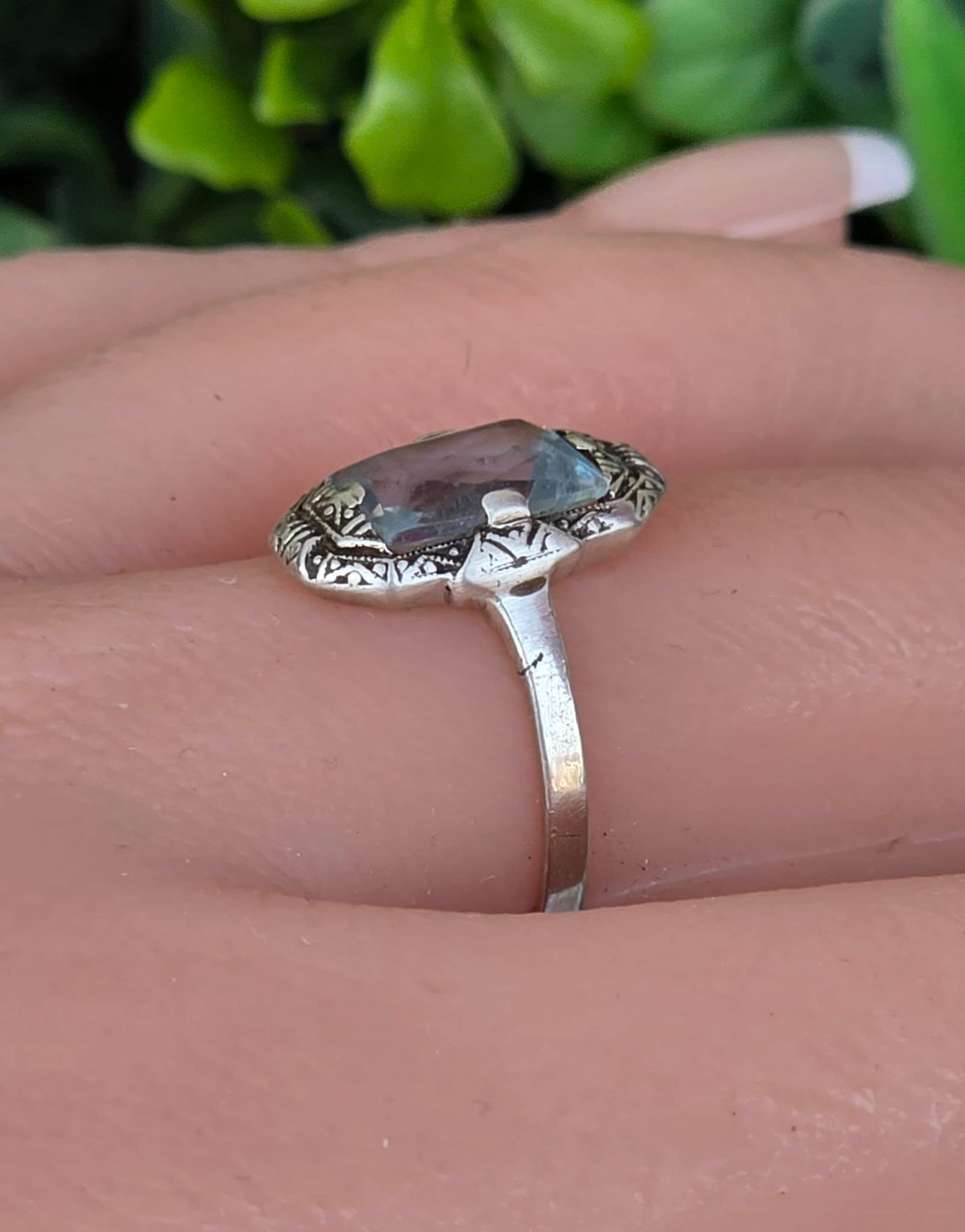 Inel vechi din argint, cu "glass paste" albastru, manufactură în stil Art Deco.
