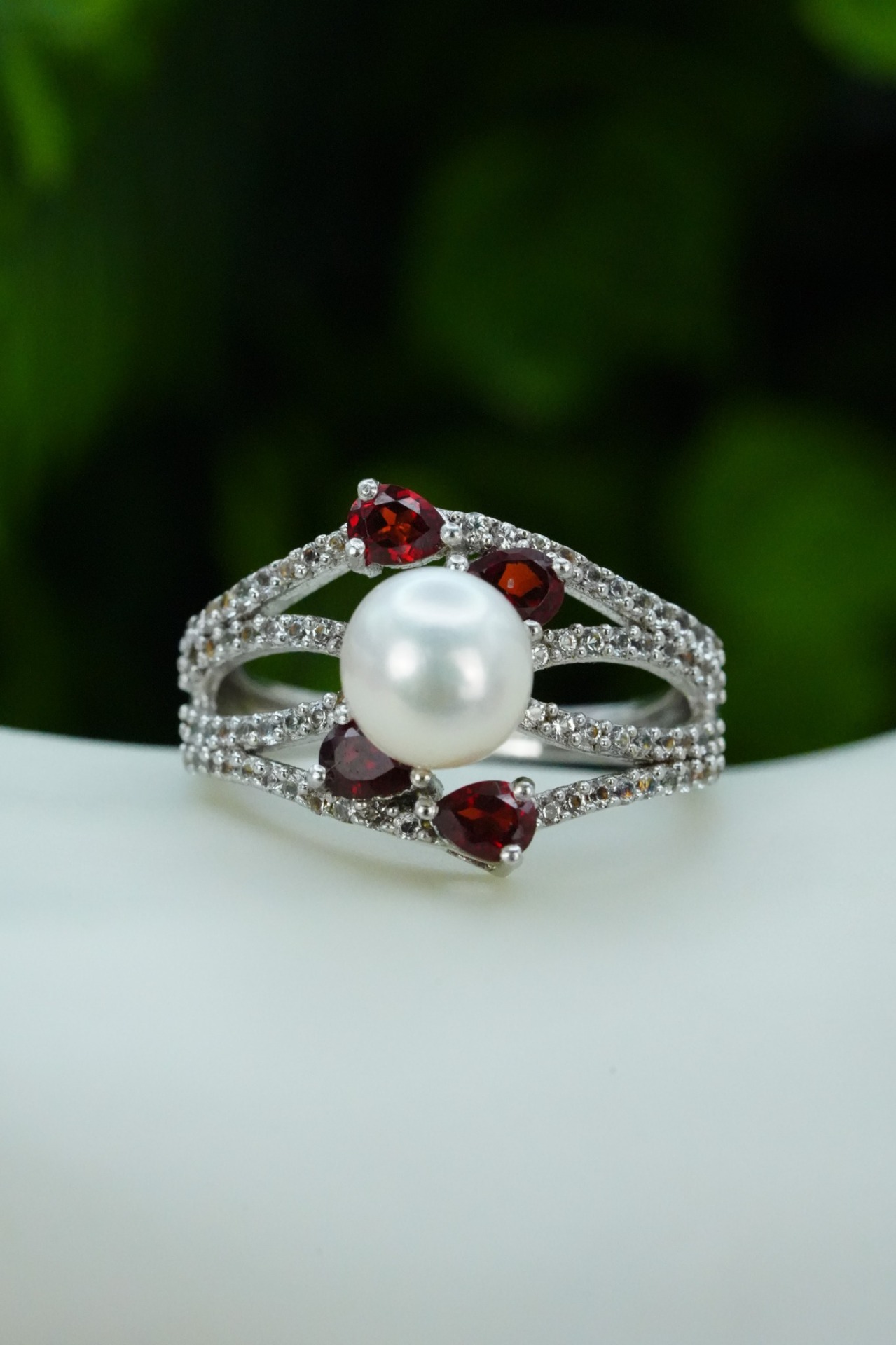 Cod produs R inel granate perlă 45