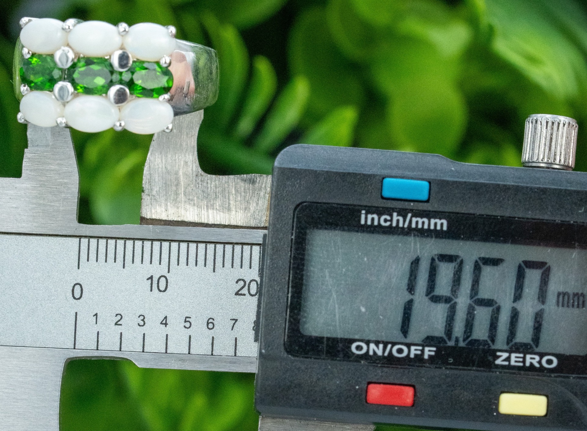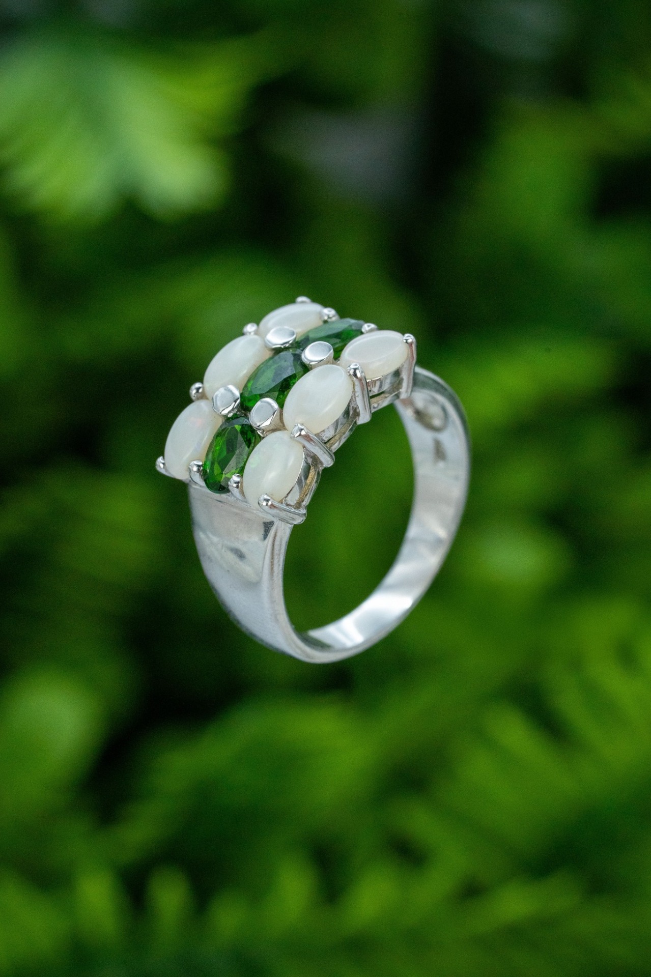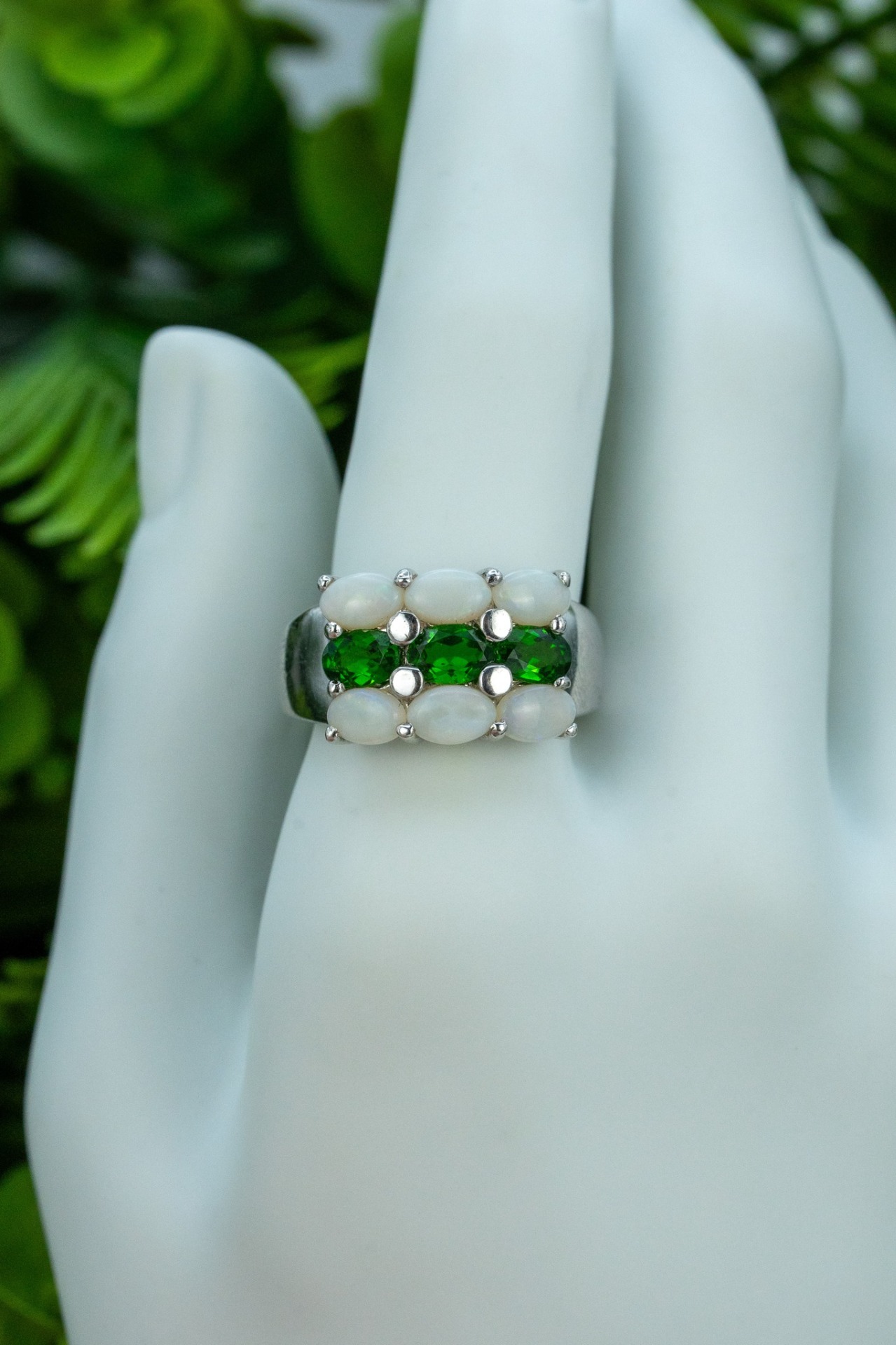 Inel vechi din argint, cu opale și peridot naturale.