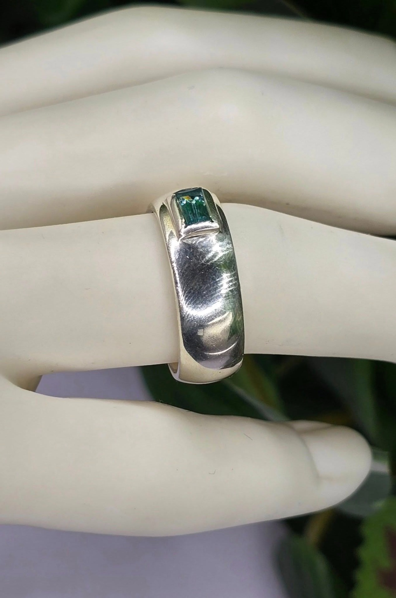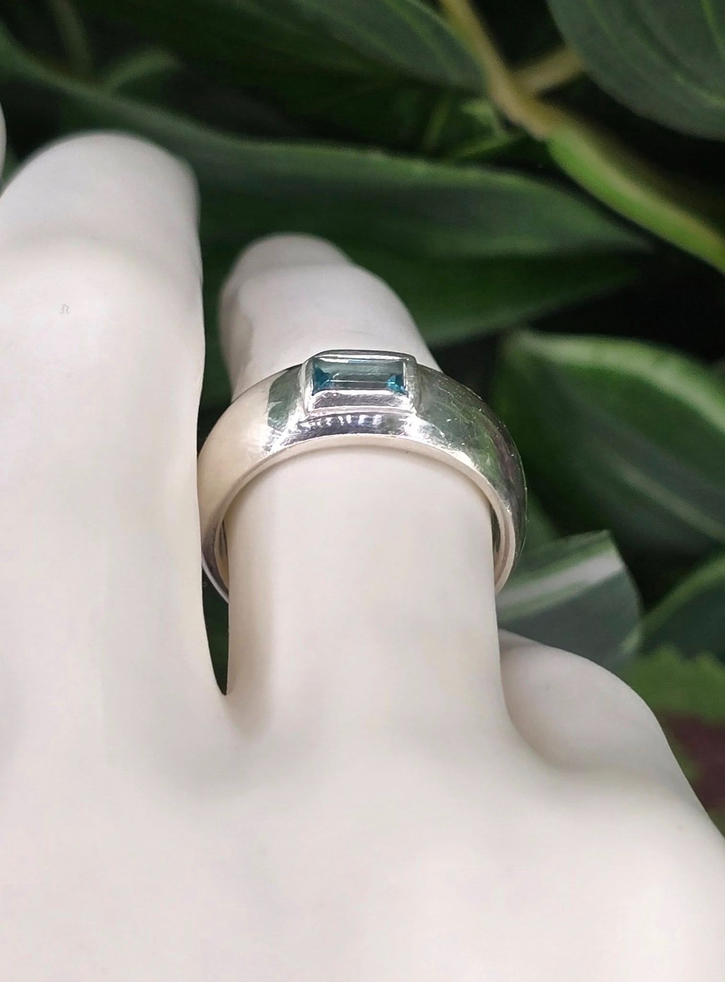 Inel vechi din argint, cu piatră cubic zirconia albastră.