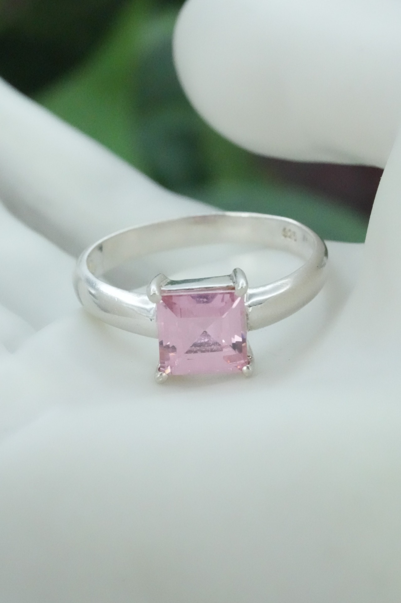 Inel vechi din argint, cu piatră cubic zirconia.