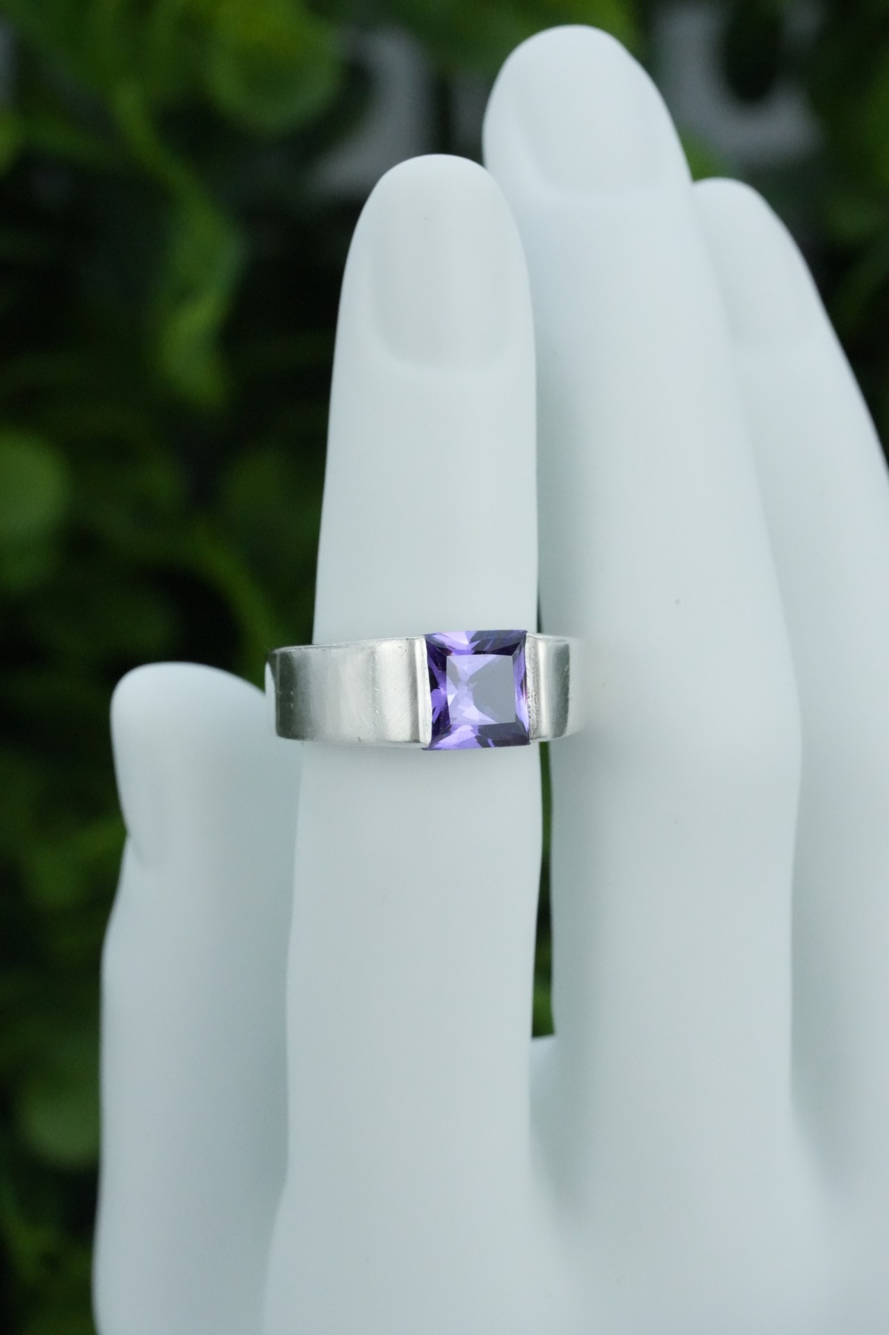 Inel vechi din argint, cu piatră cubic zirconia.