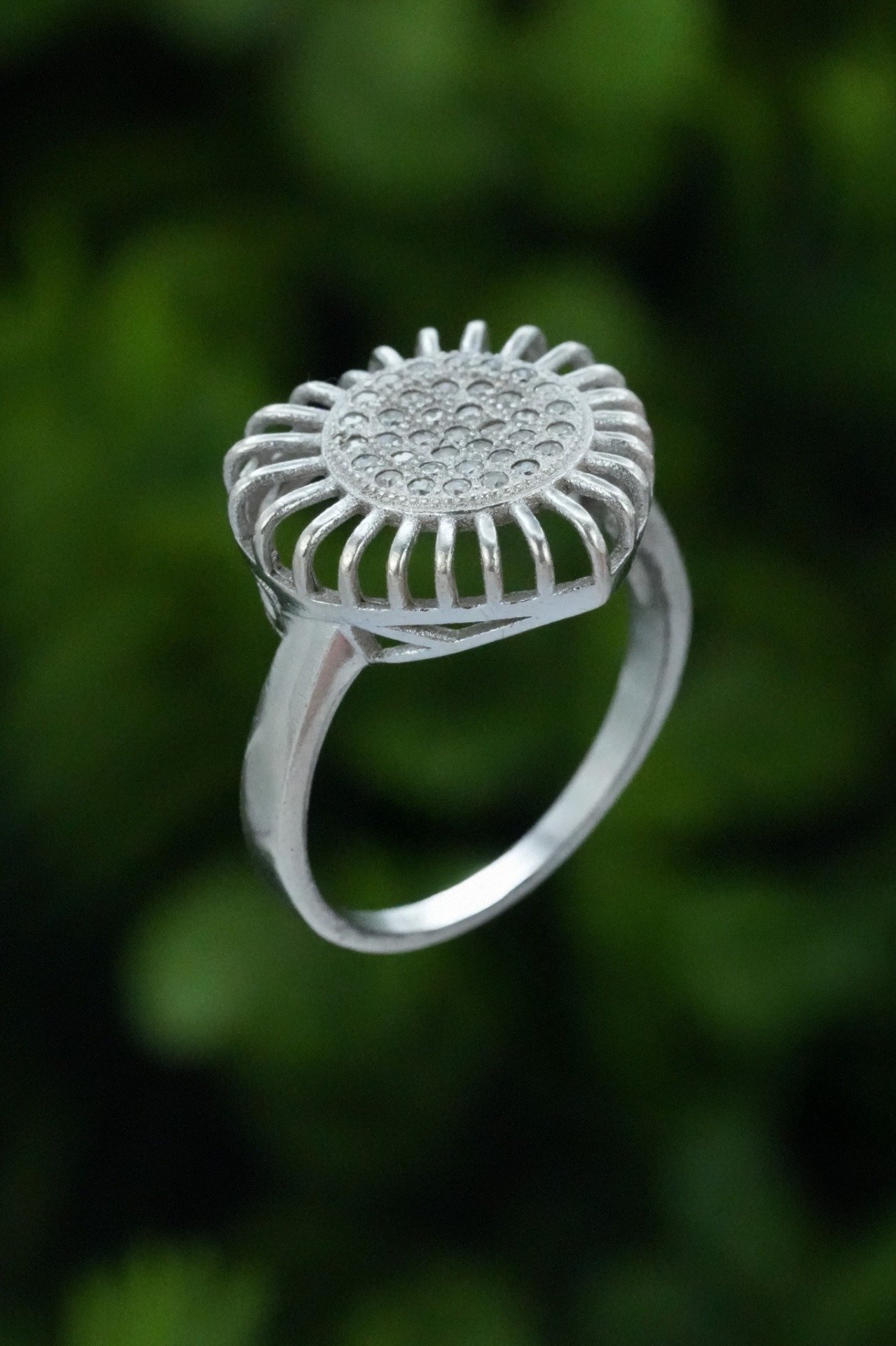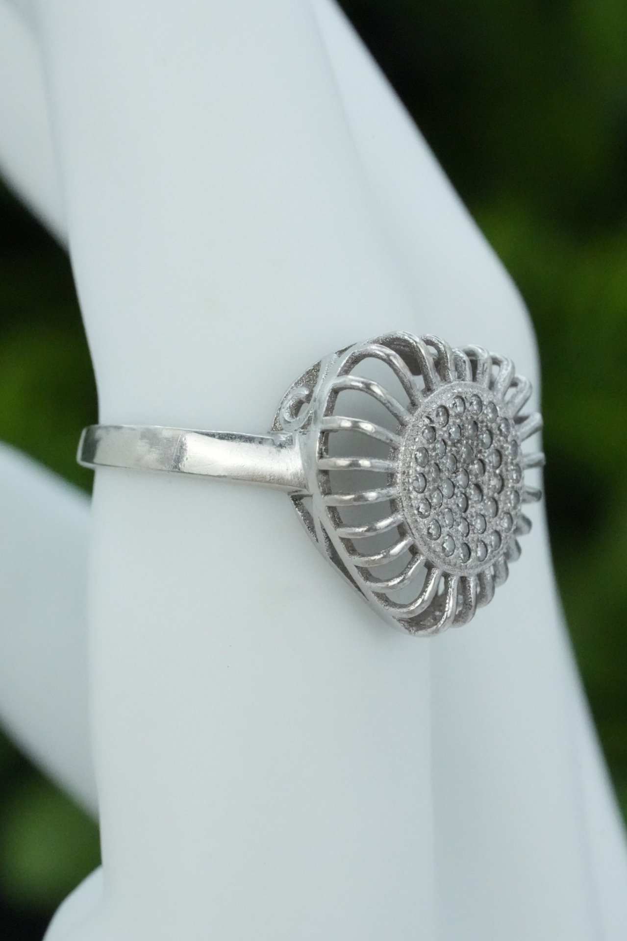 Inel vechi din argint, cu pietre cubic zirconia.