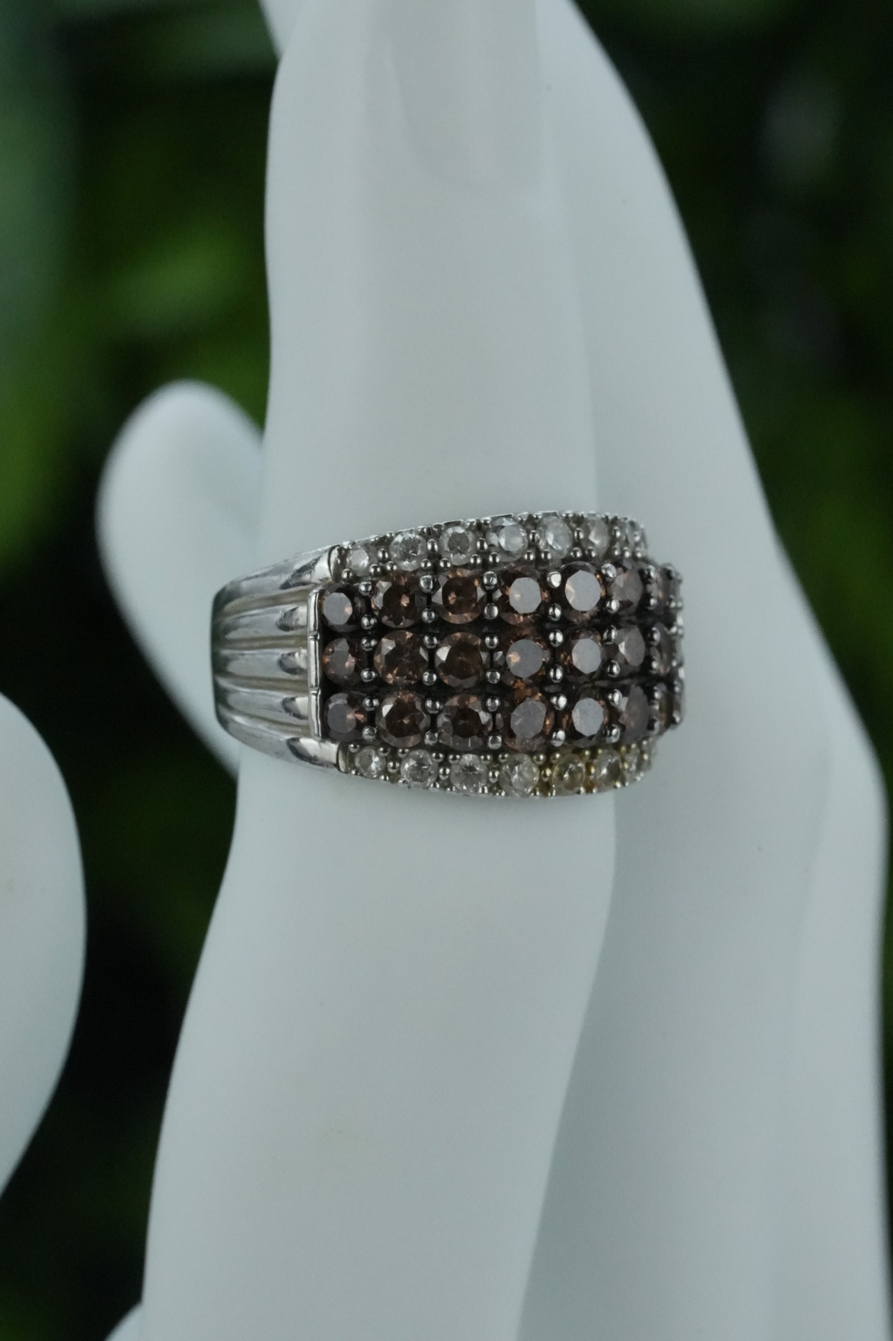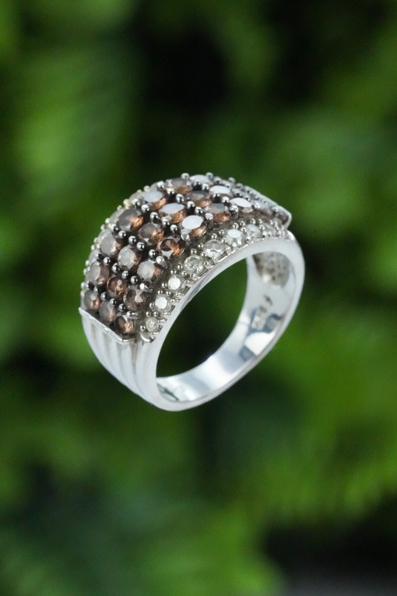Inel vechi din argint, cu pietre cubic zirconia.