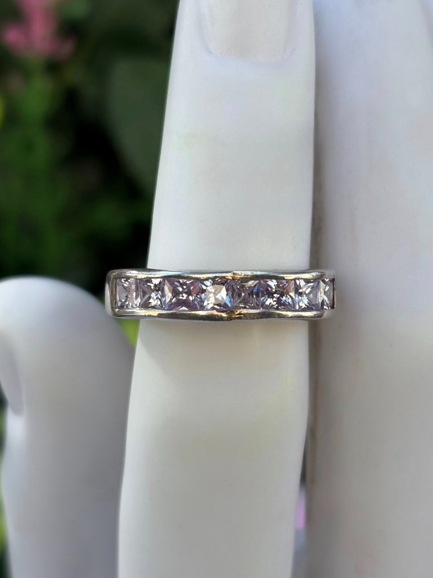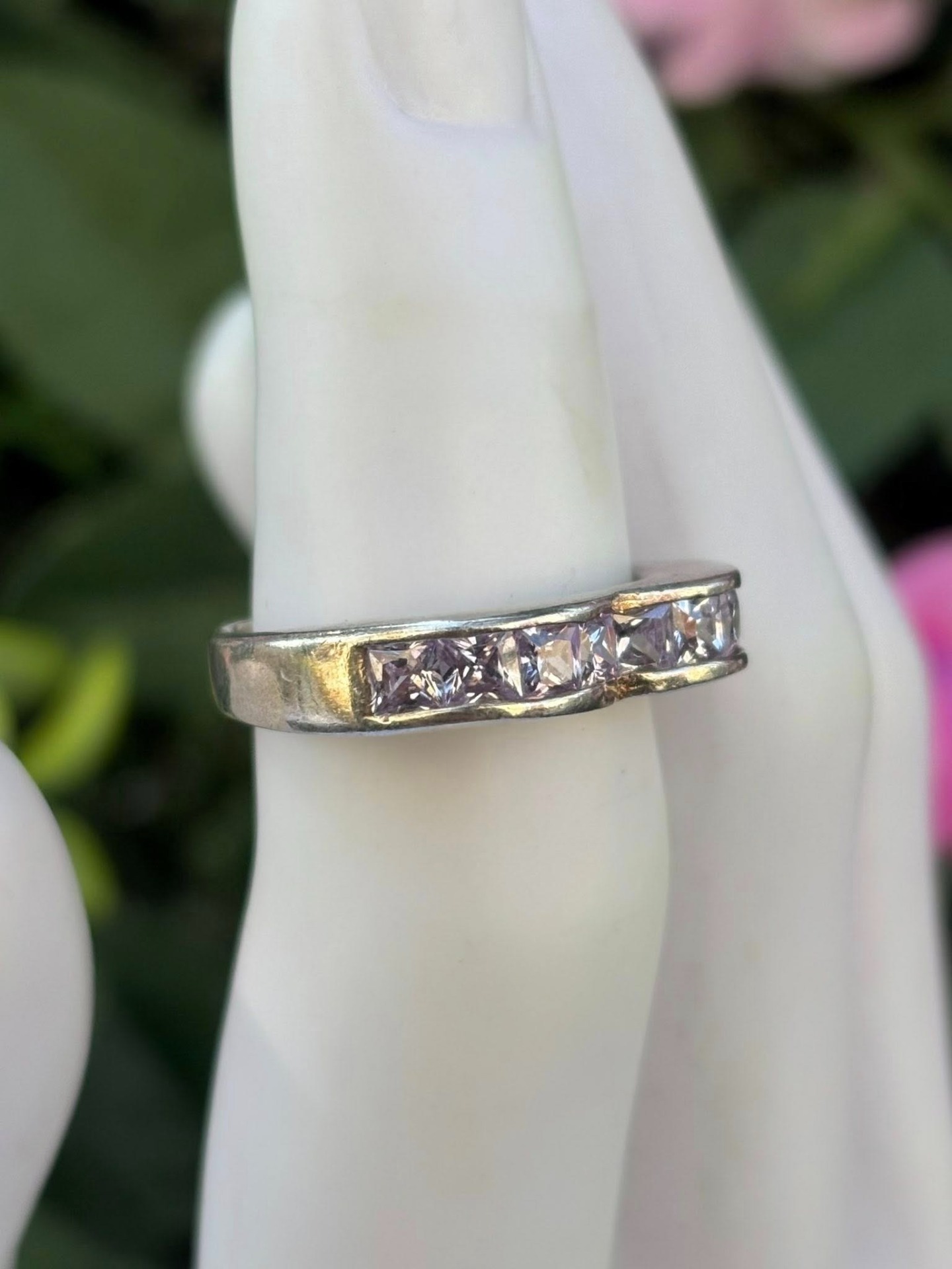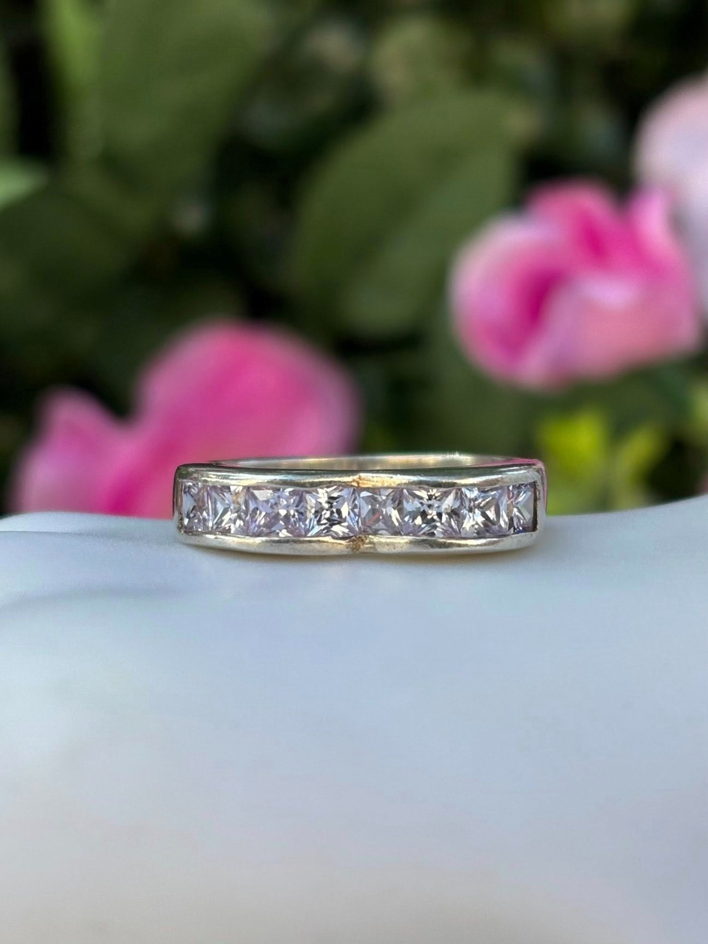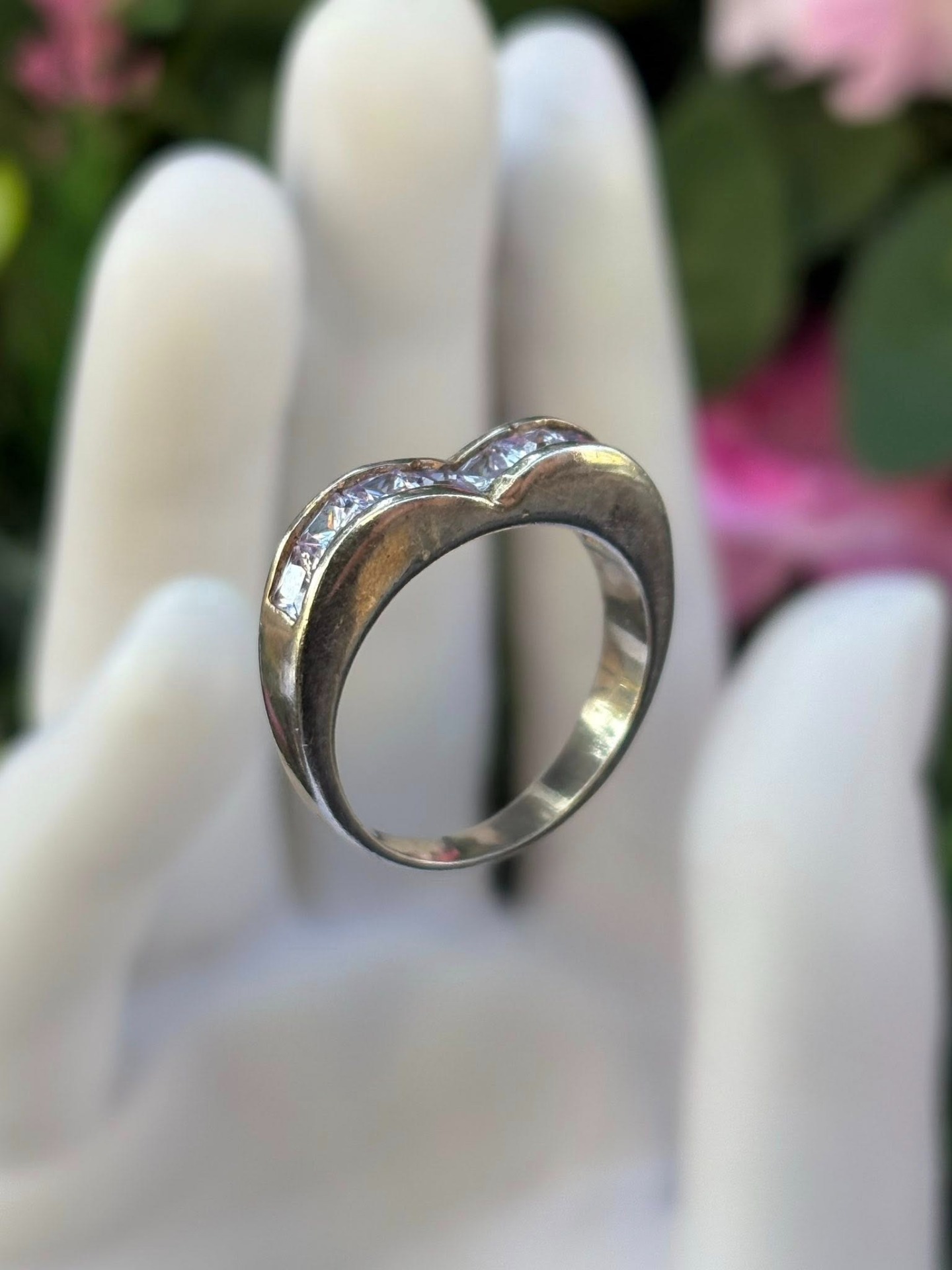 Inel vechi din argint, cu pietre cubic zirconia.