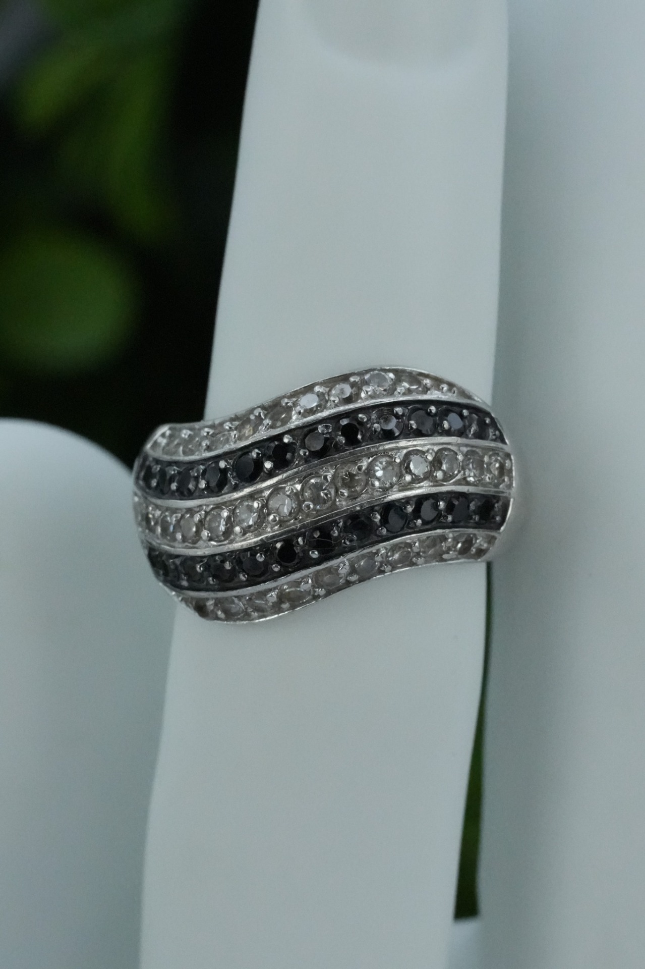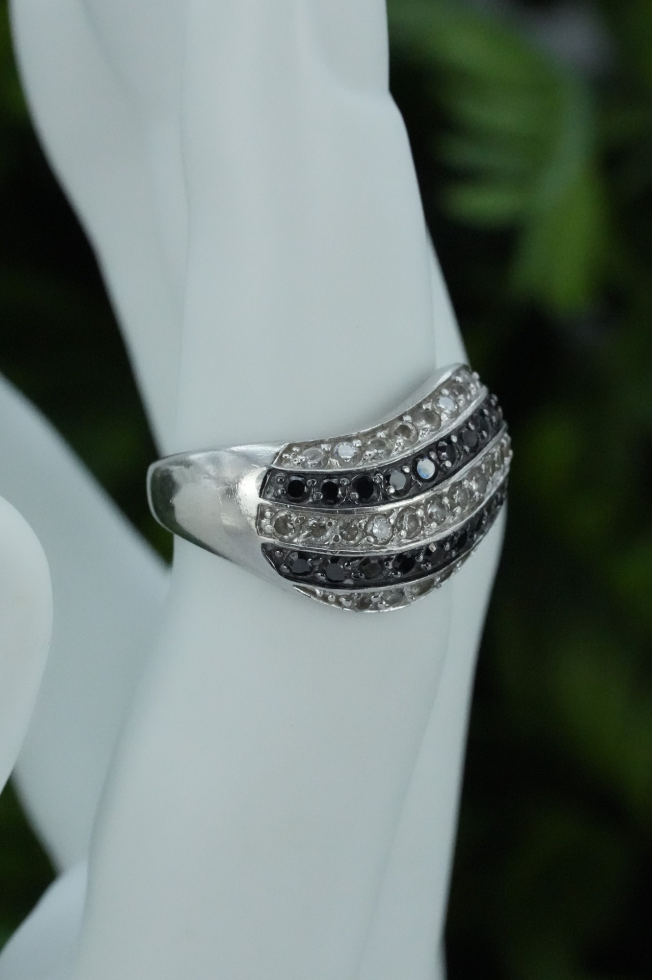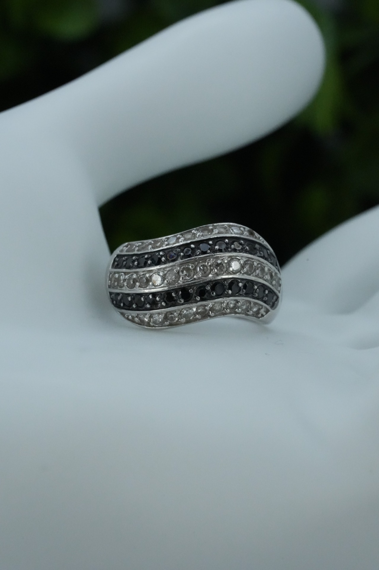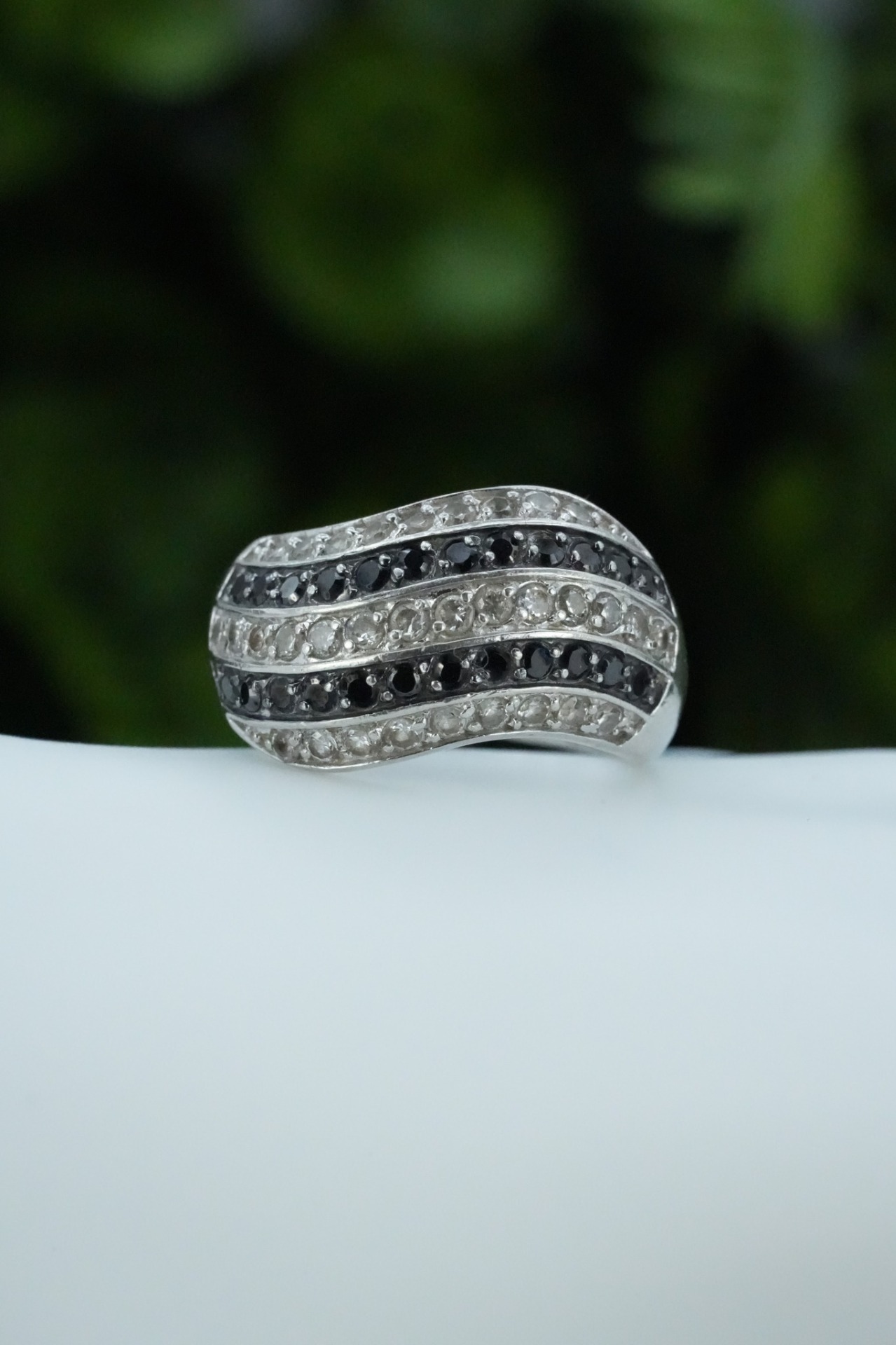 Inel vechi din argint, cu pietre cubic zirconia.