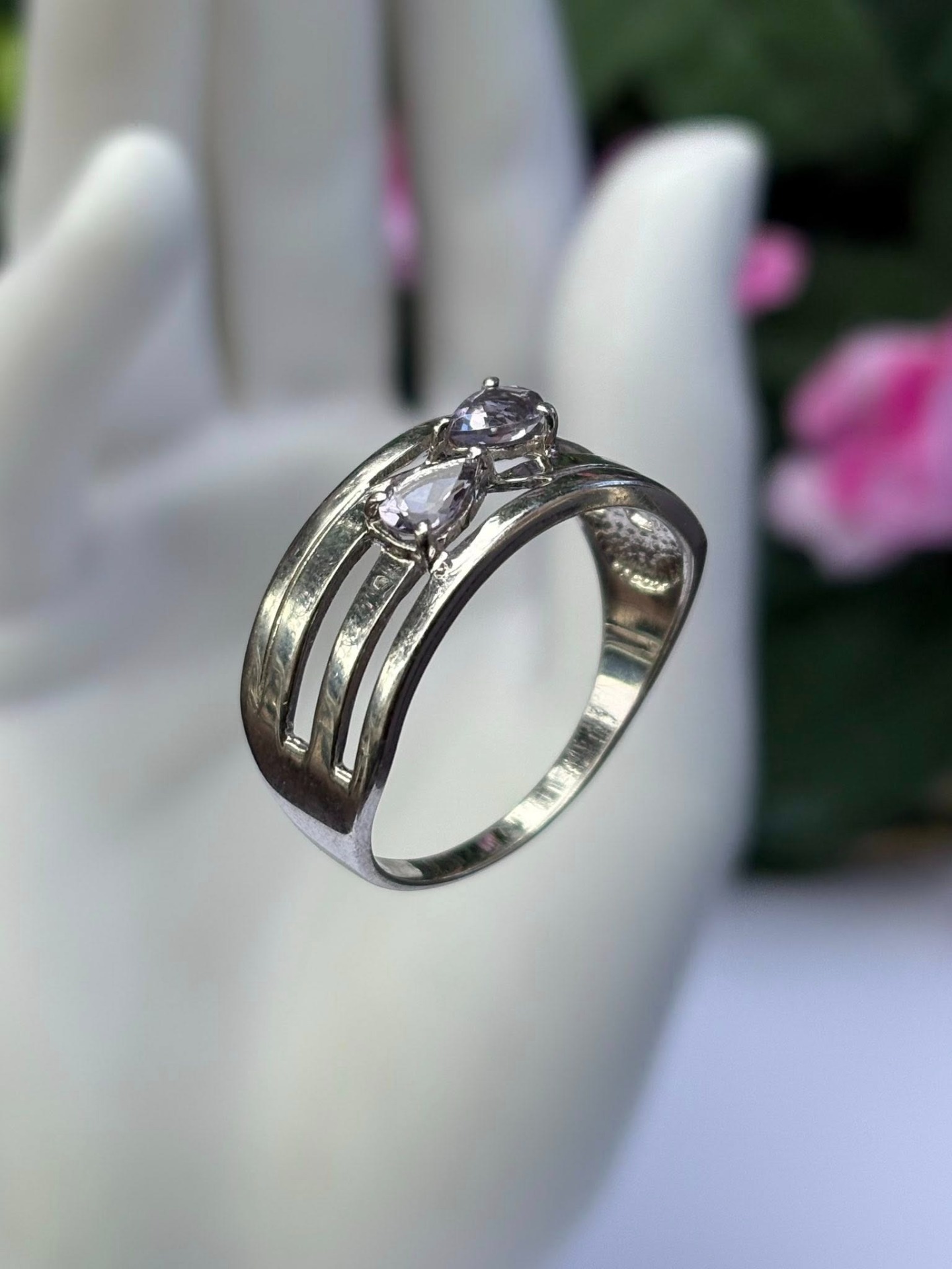 Inel vechi din argint, cu pietre cubic zirconia.
