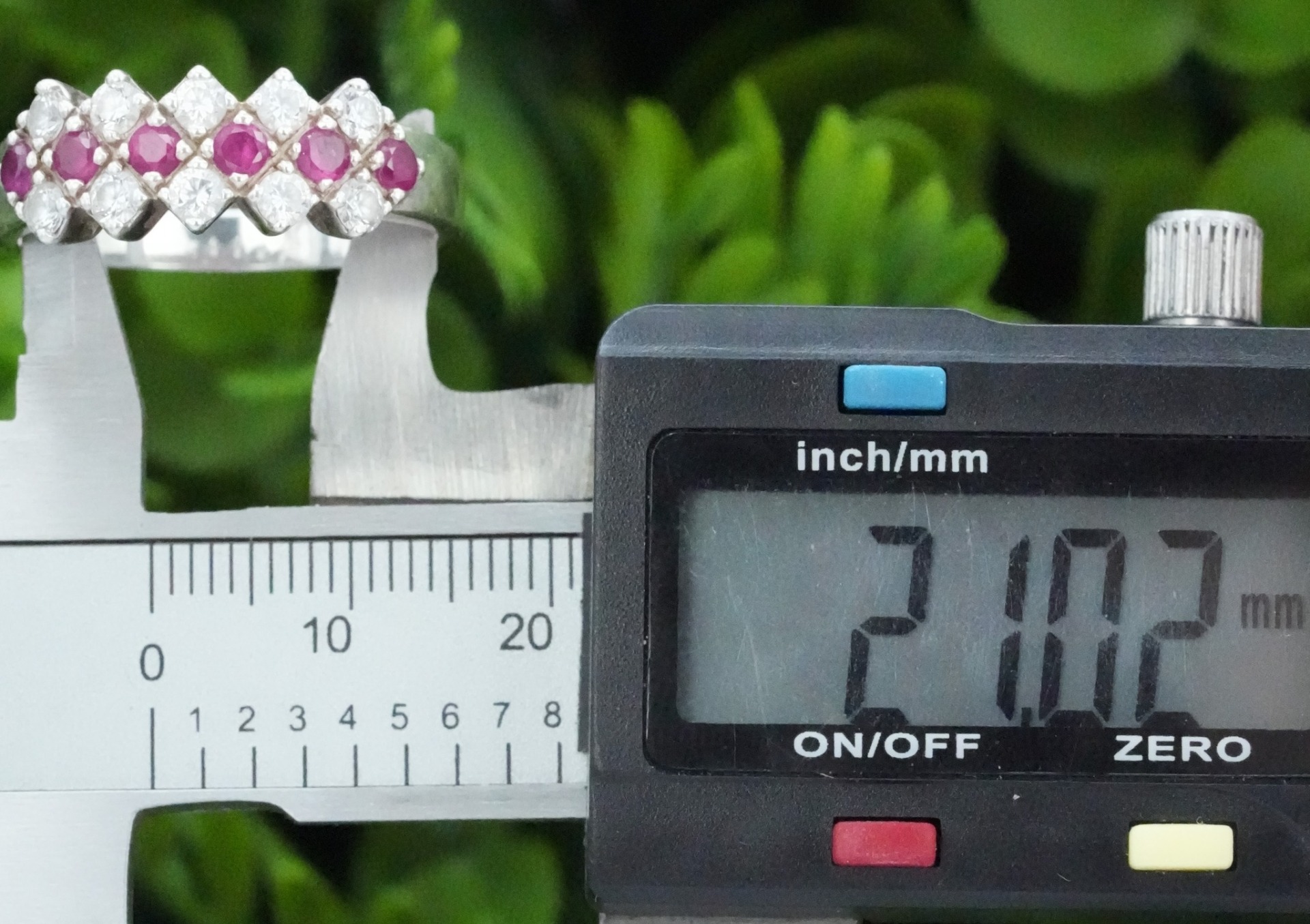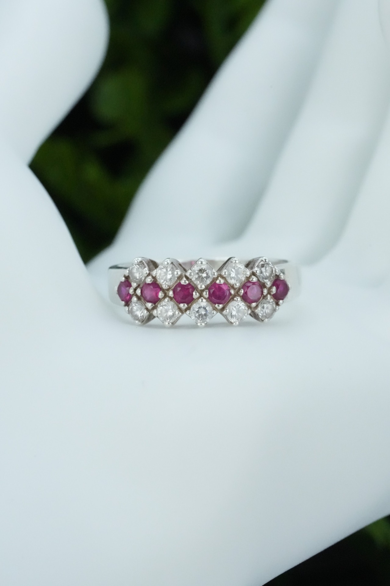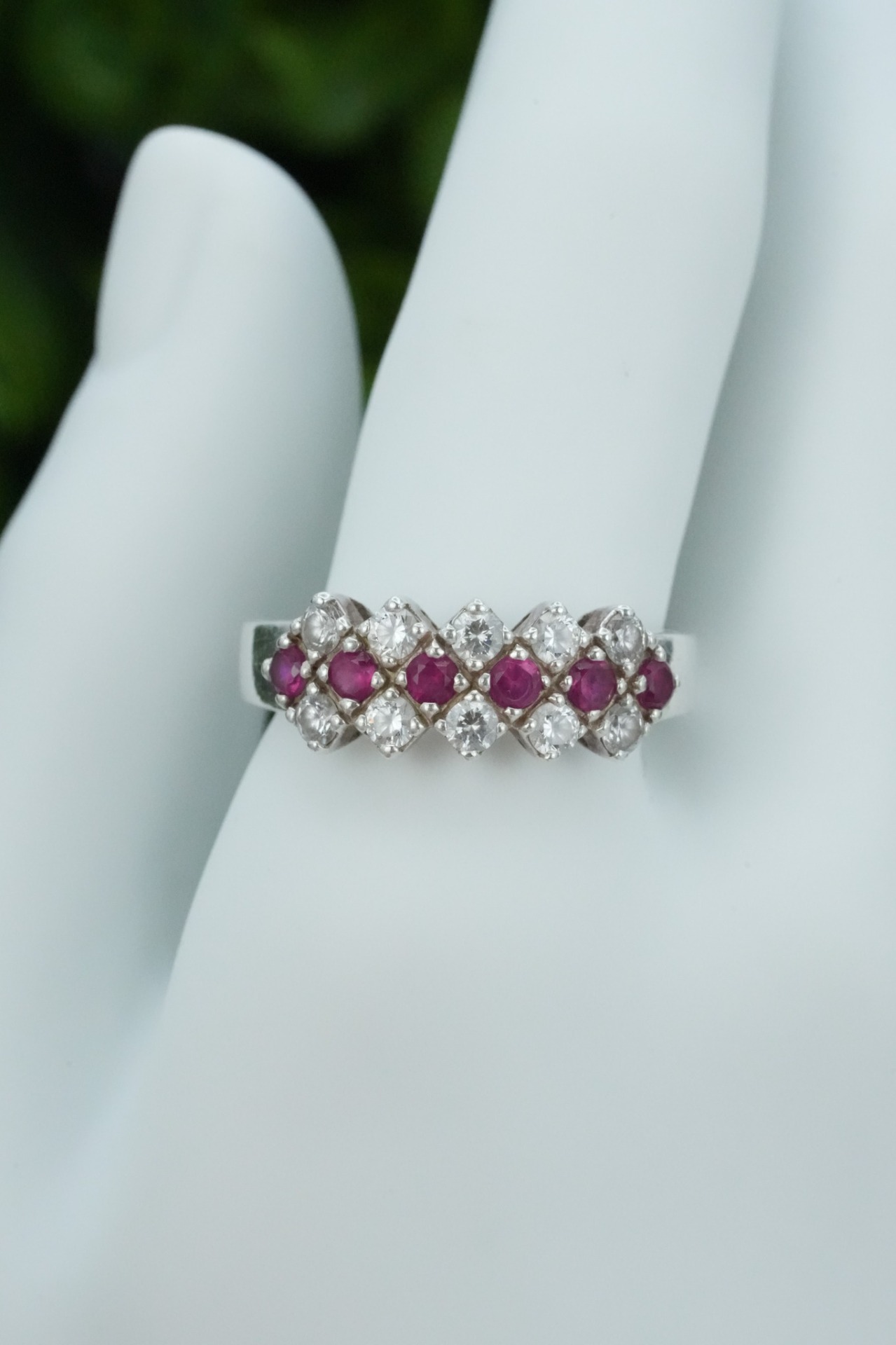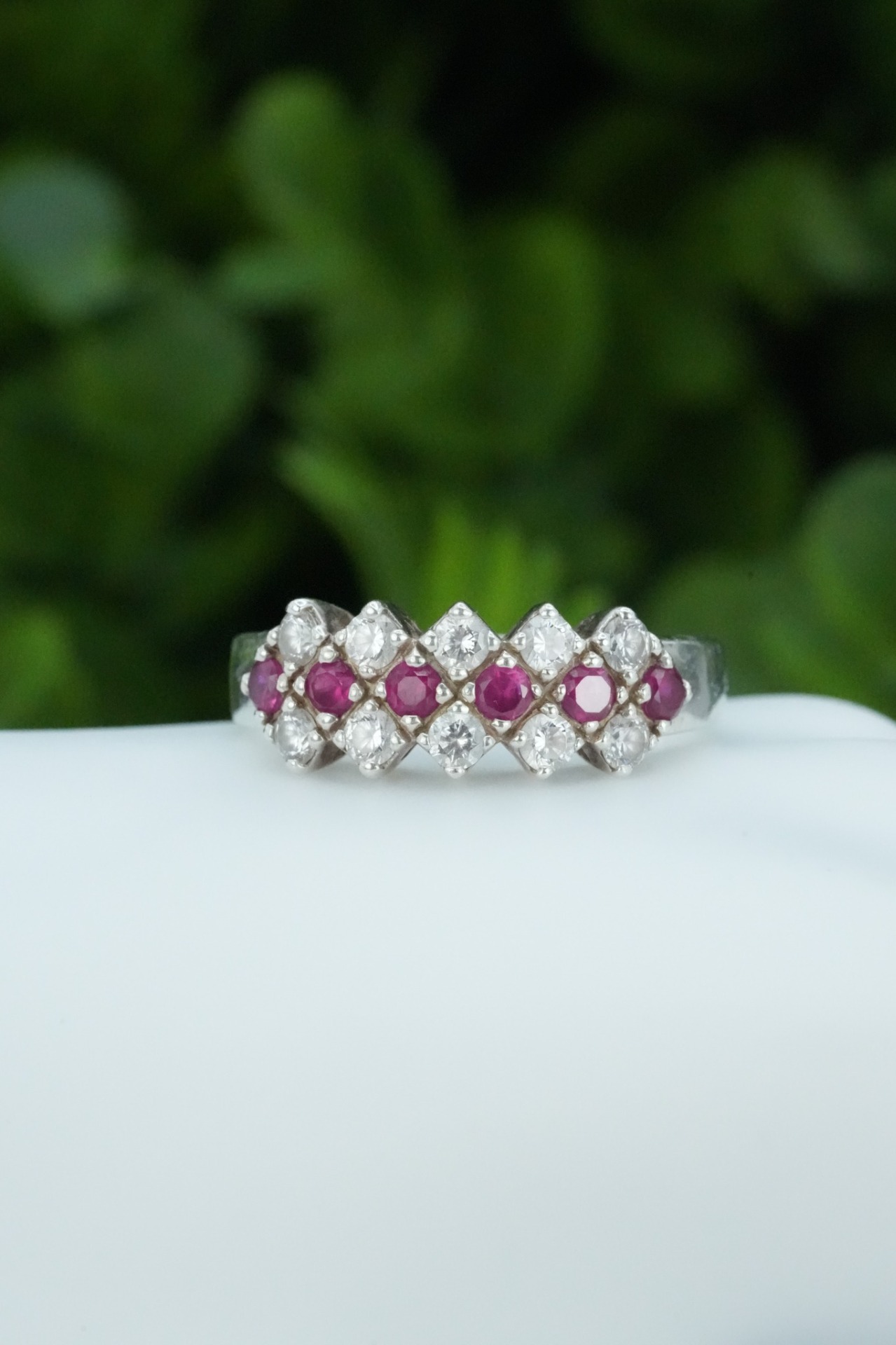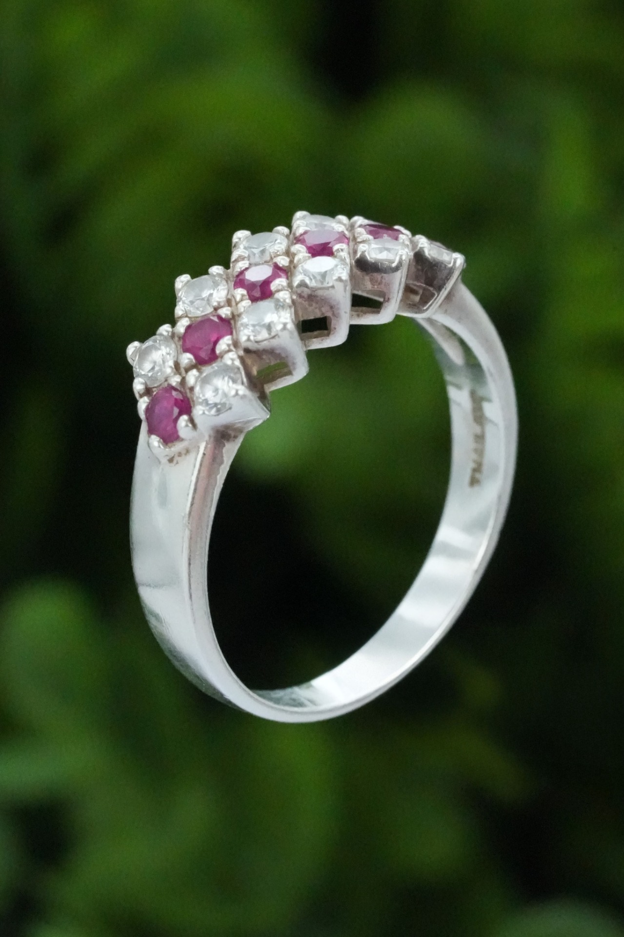 Inel vechi din argint, cu rubine naturale și pietre cubic zirconia.