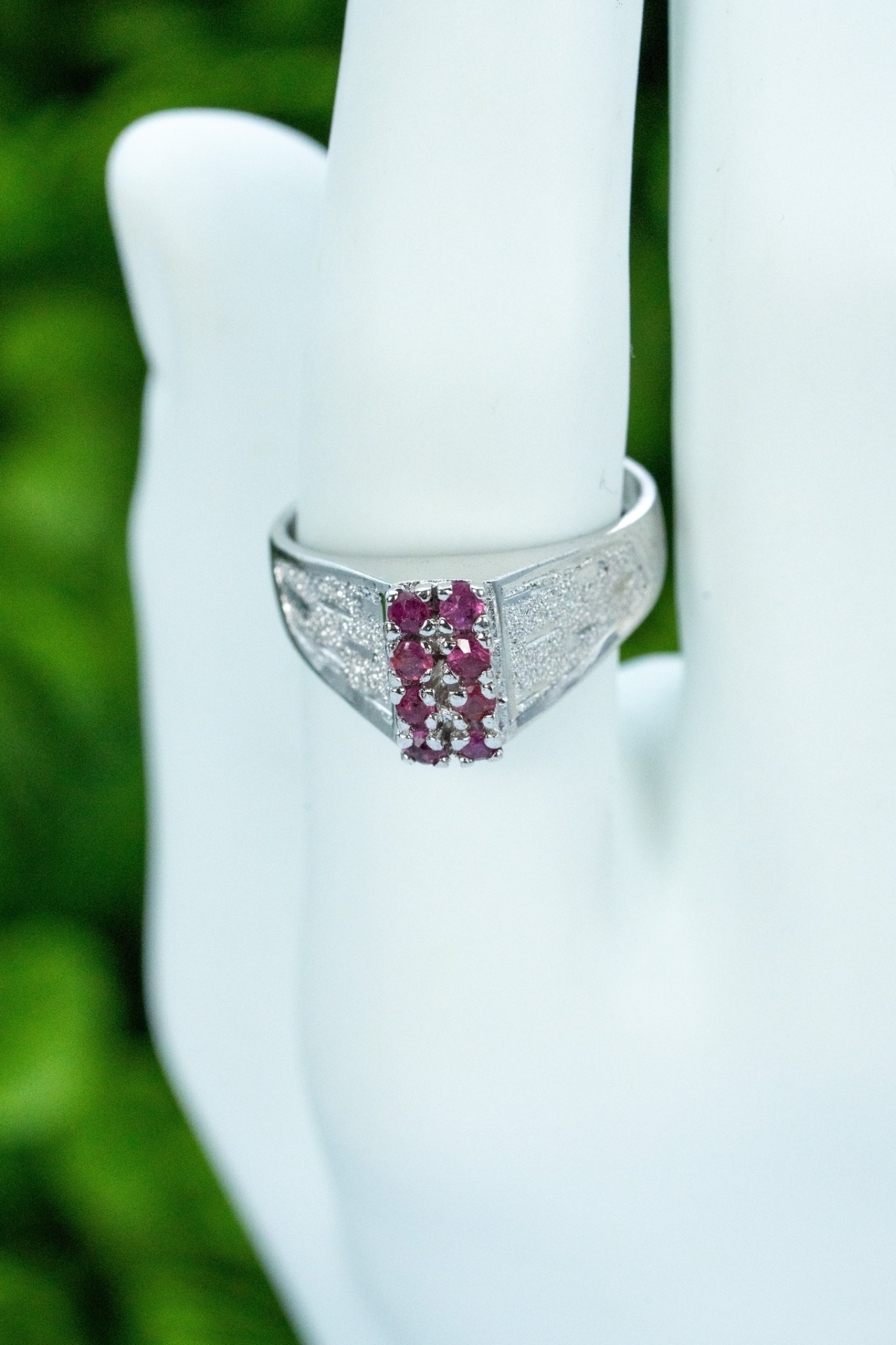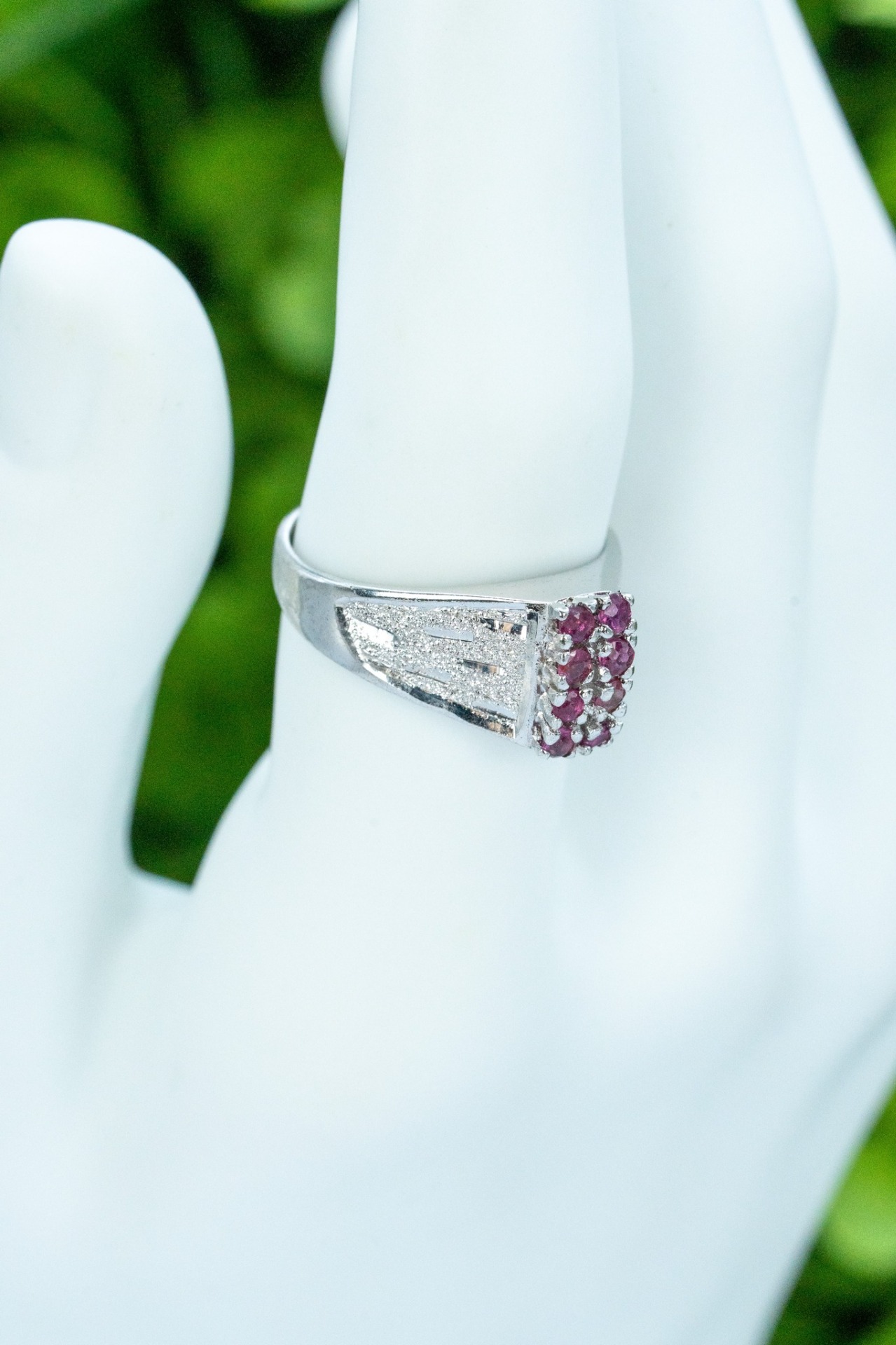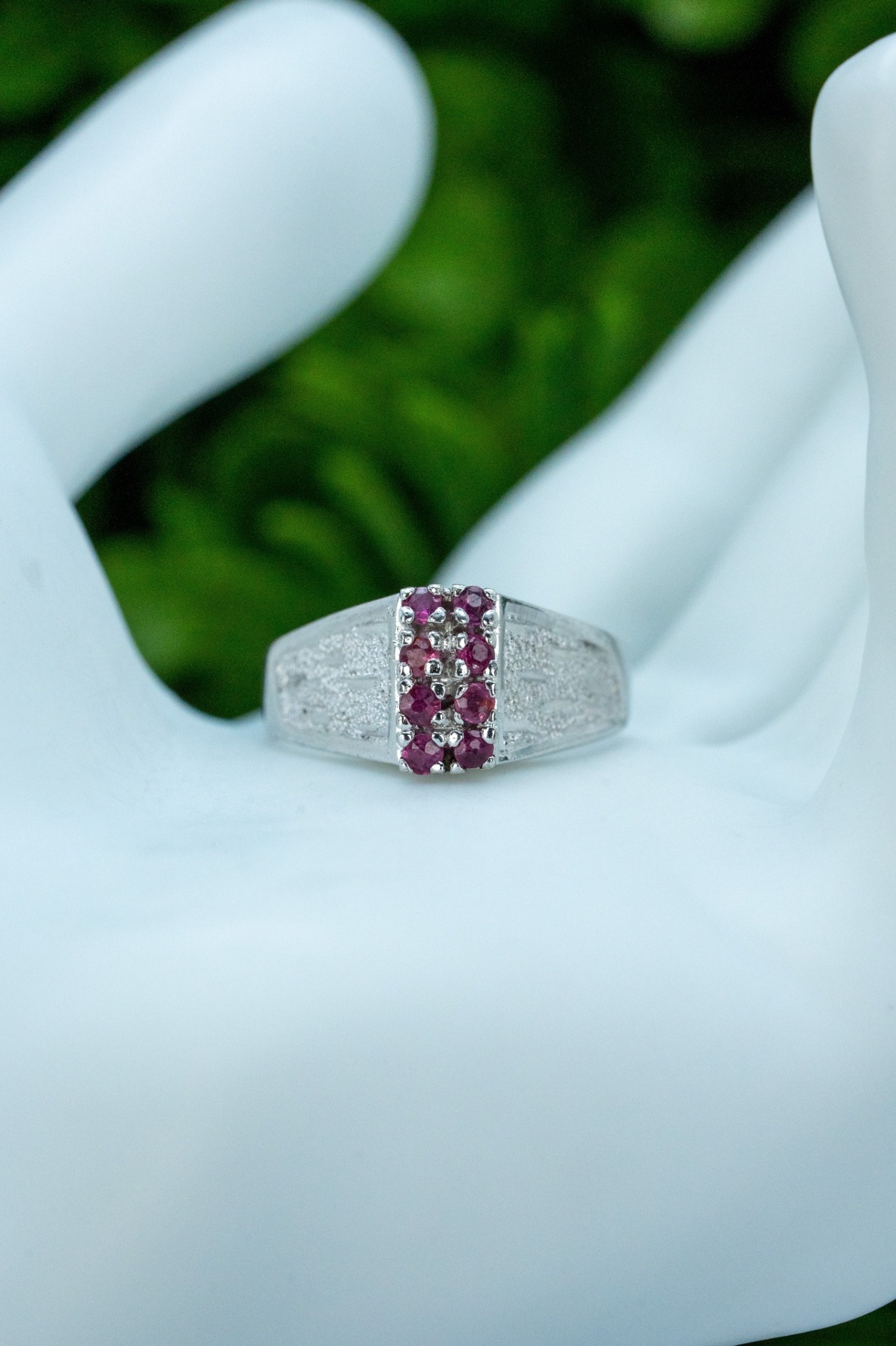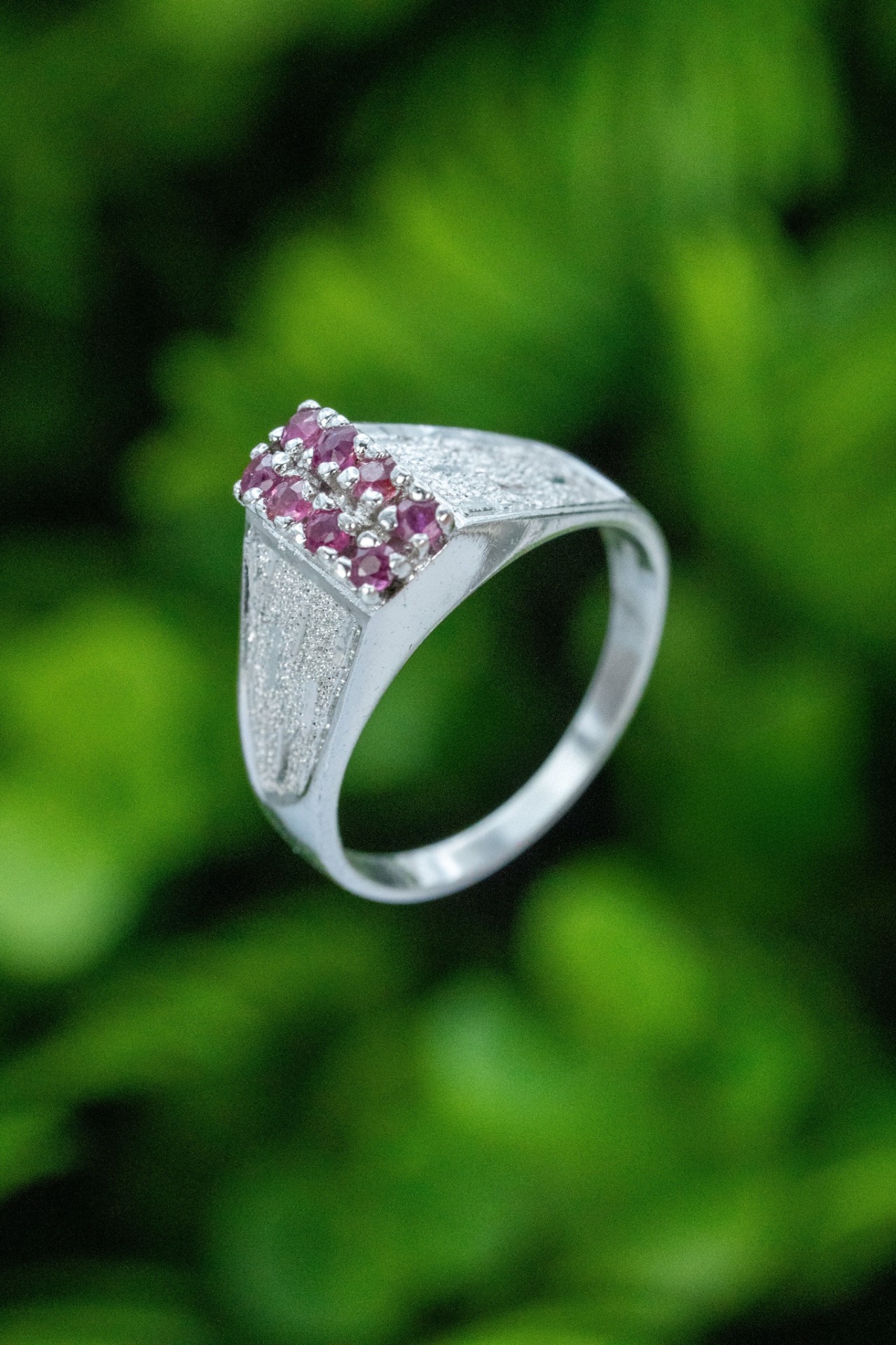 Inel vechi din argint, cu rubine naturale.