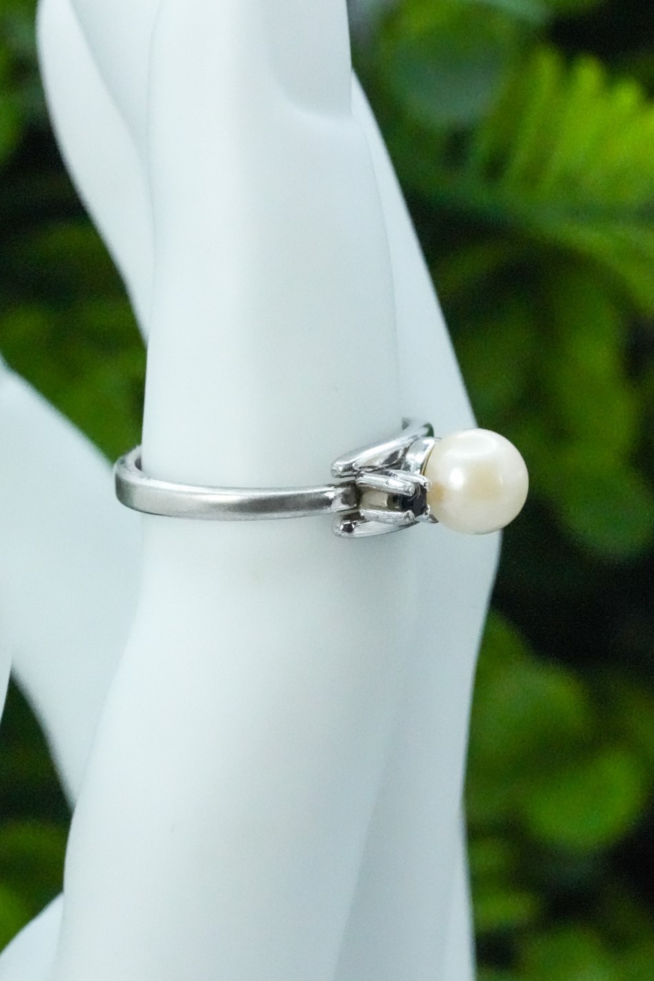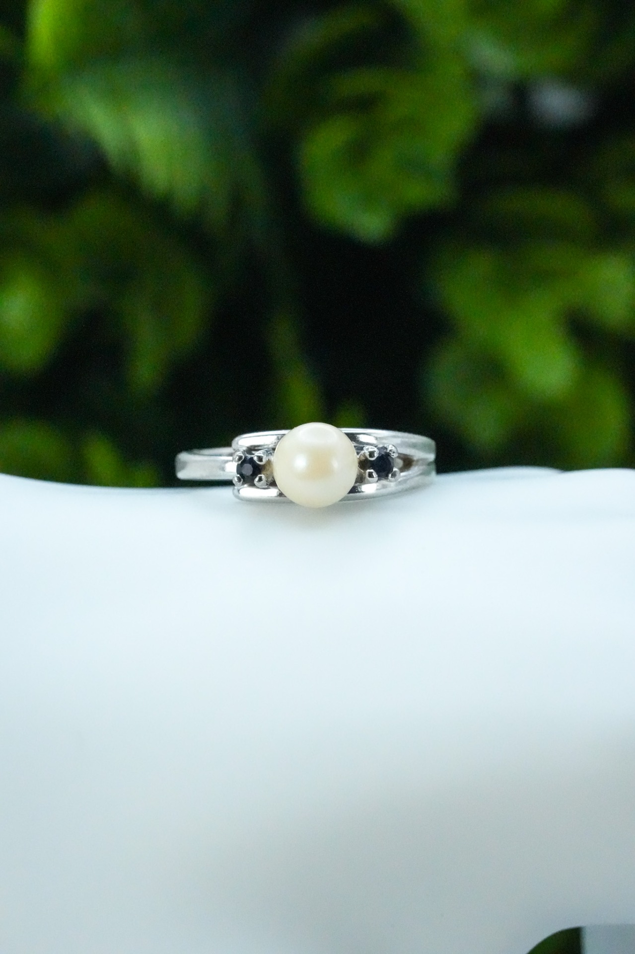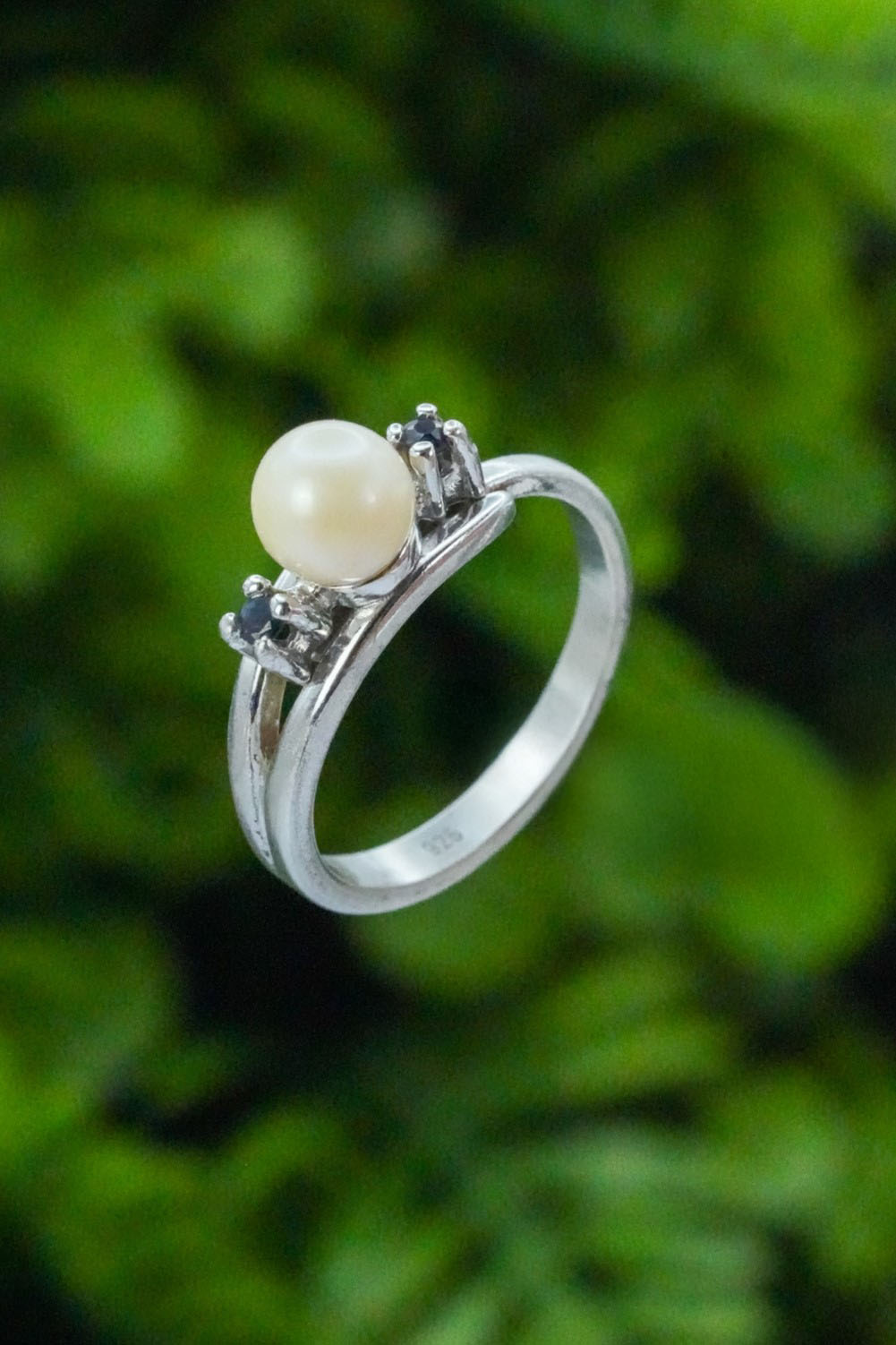 Inel vechi din argint, cu safire naturale și perlă naturală de cultură.