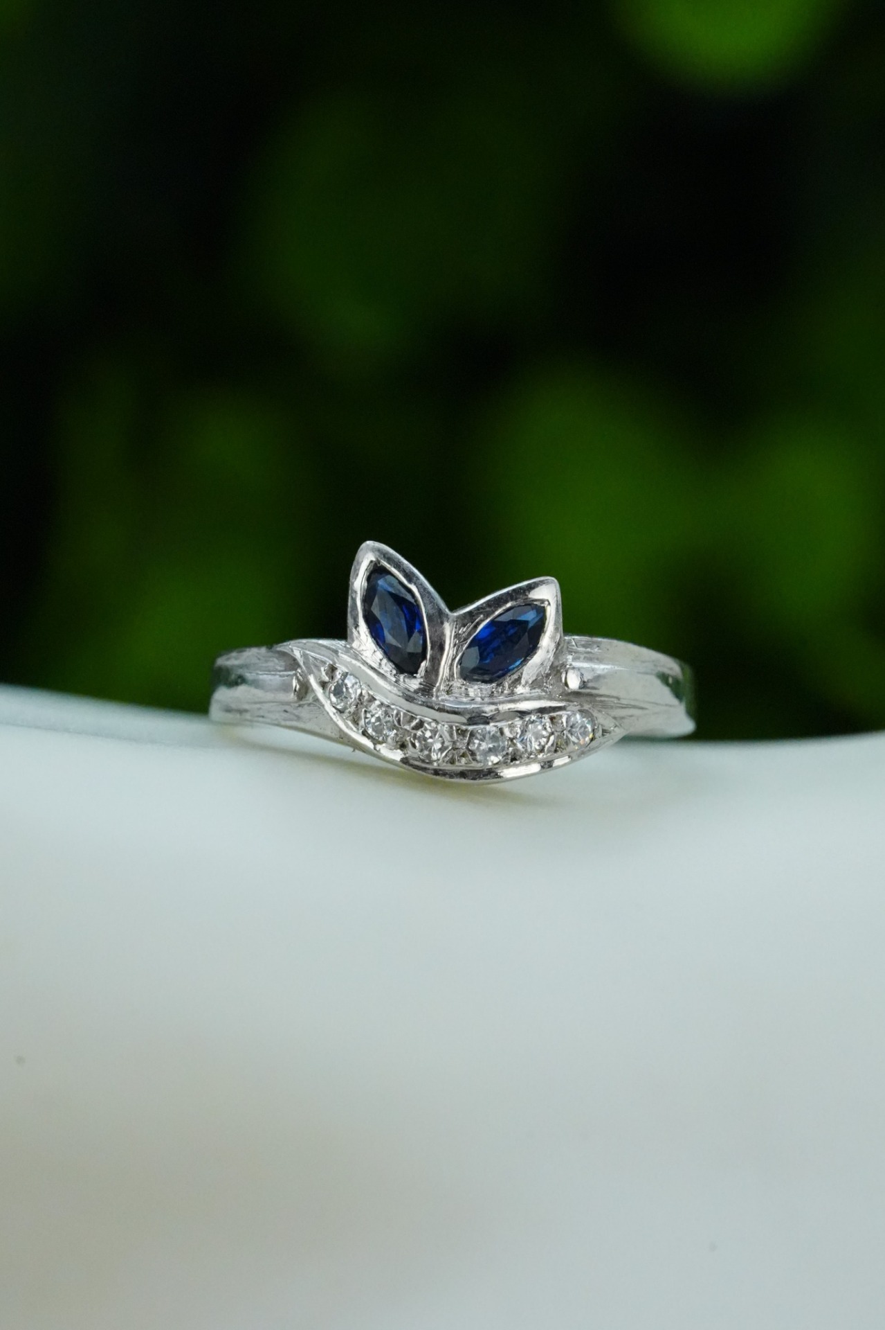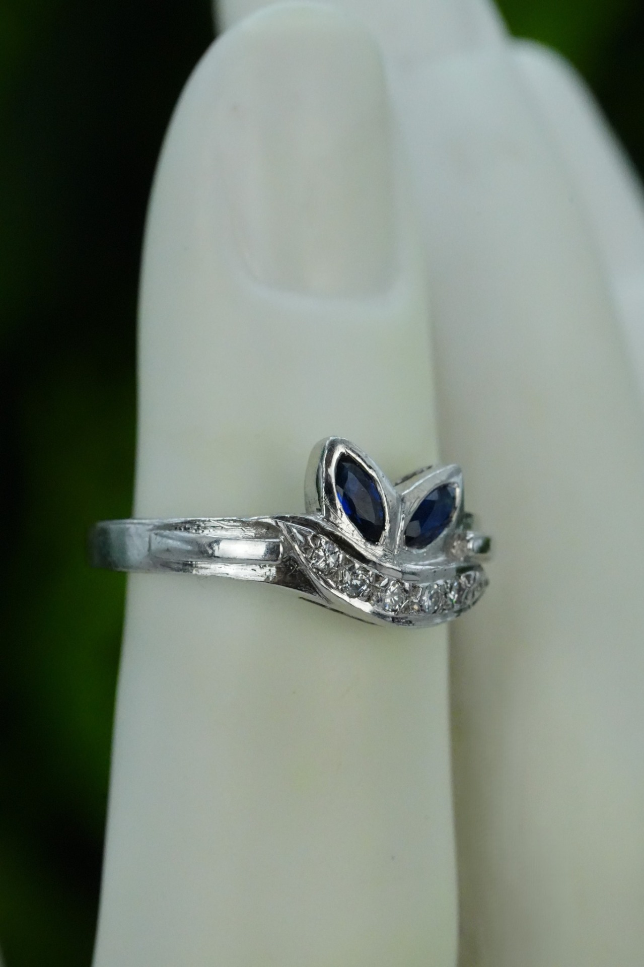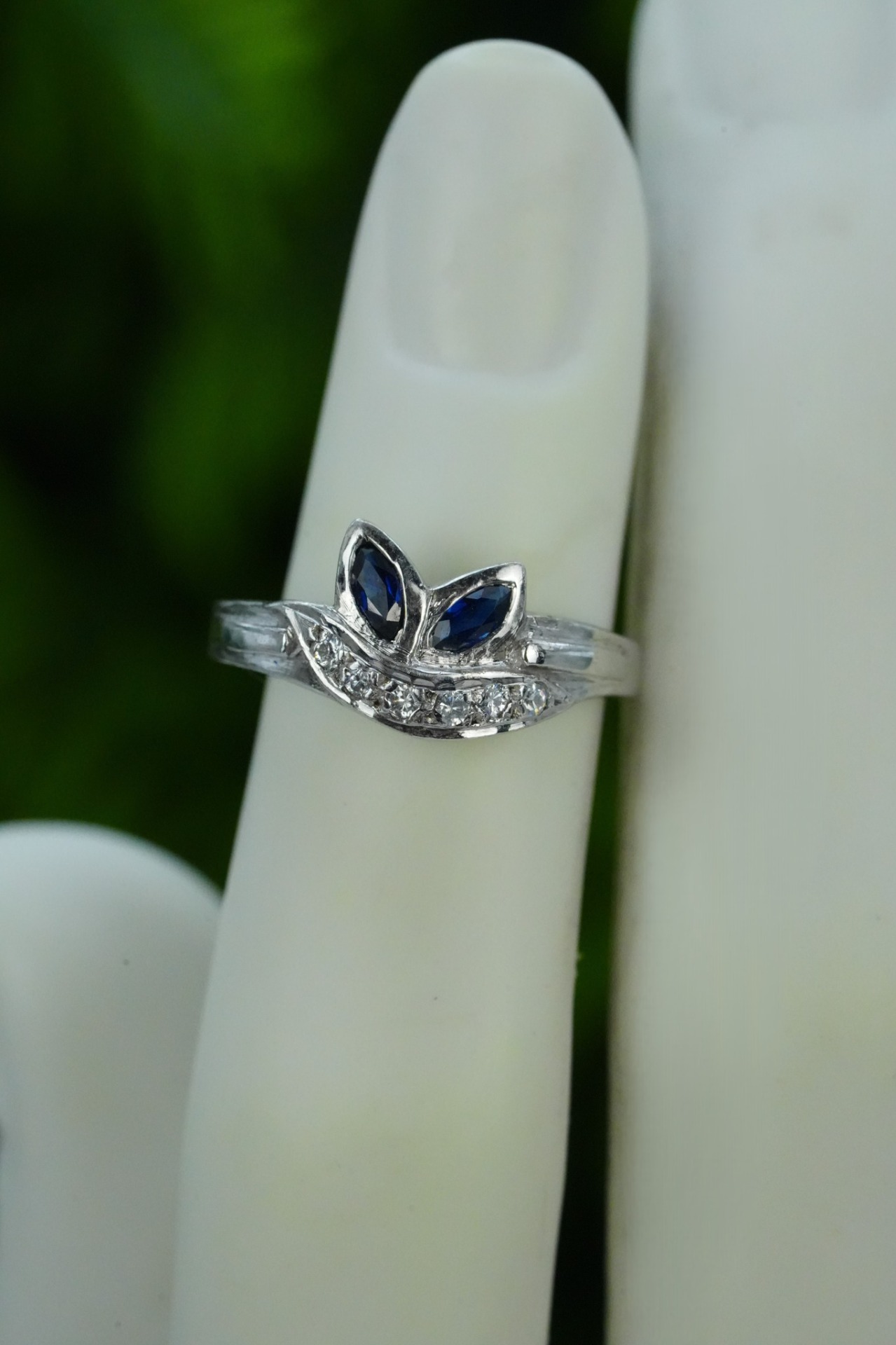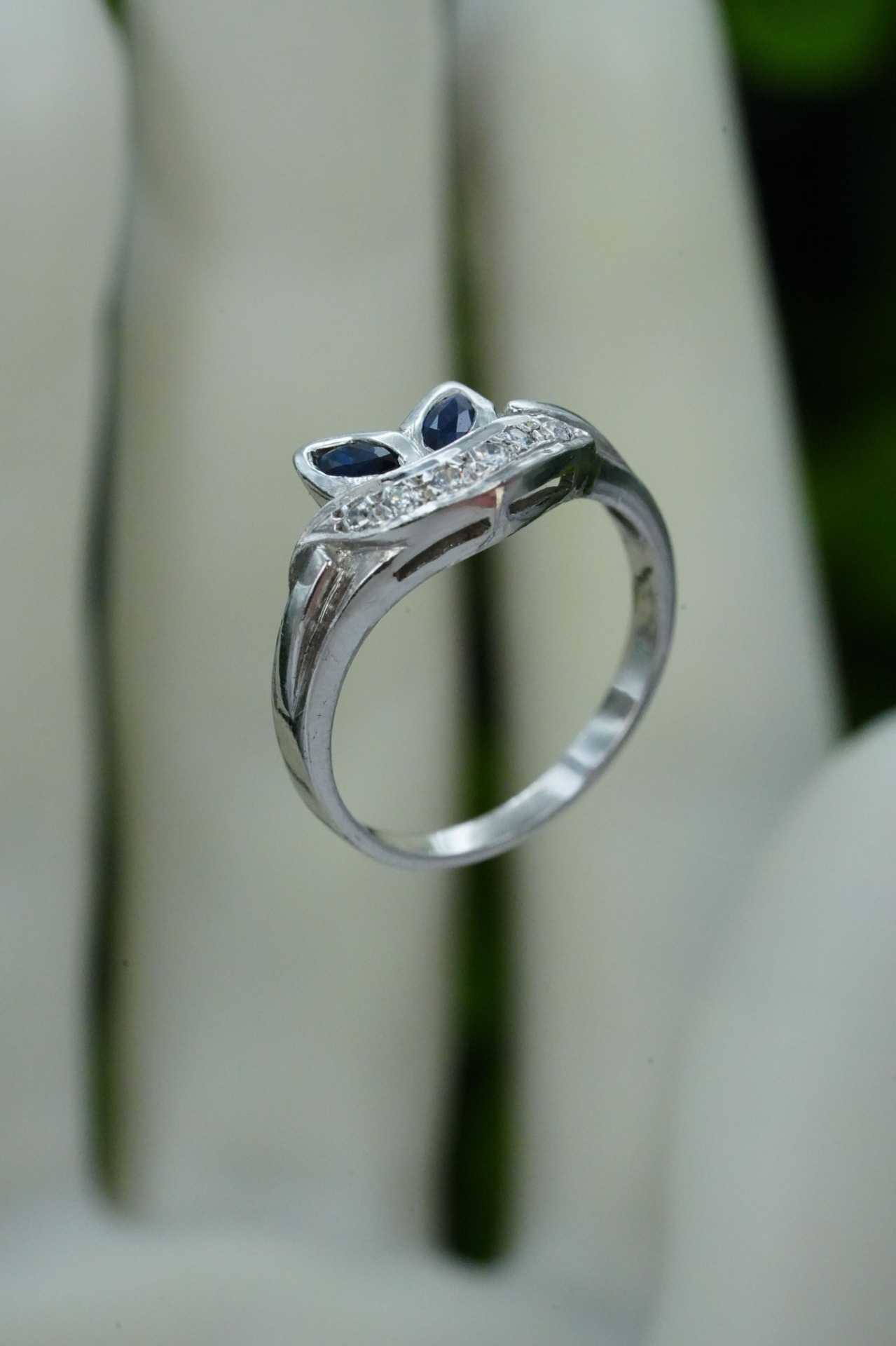 Inel vechi din argint, cu safire naturale și pietre cubic zirconia.