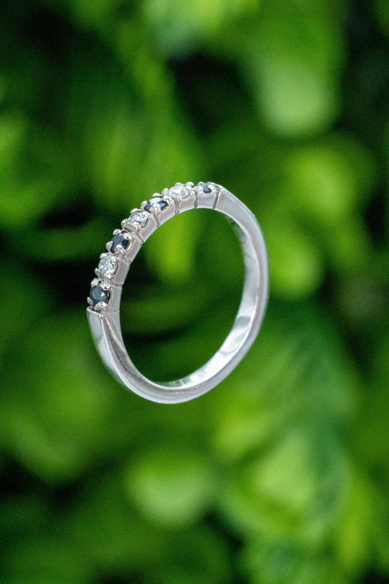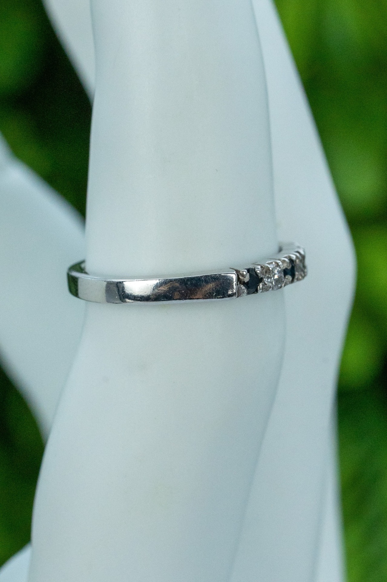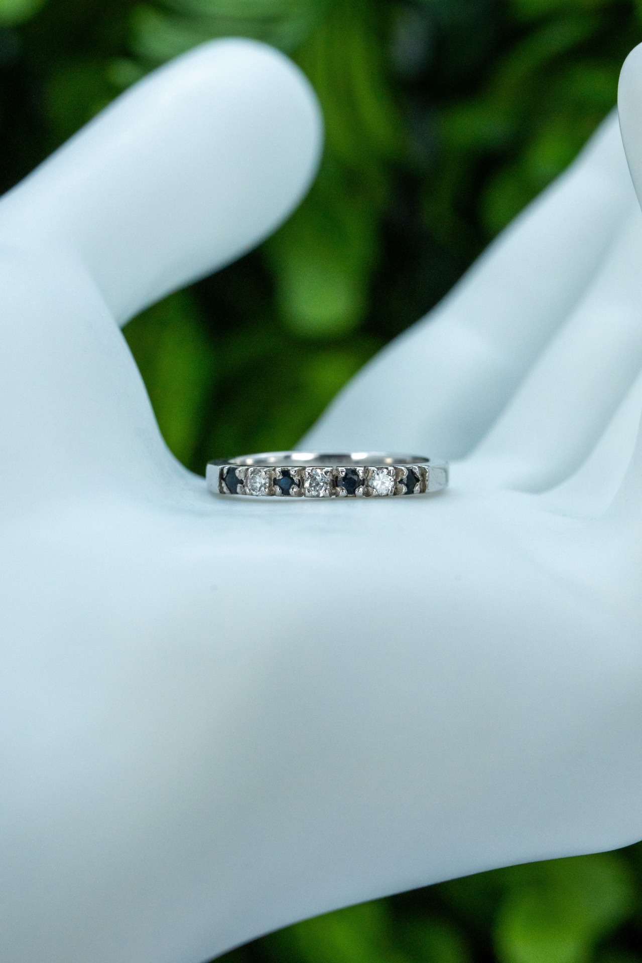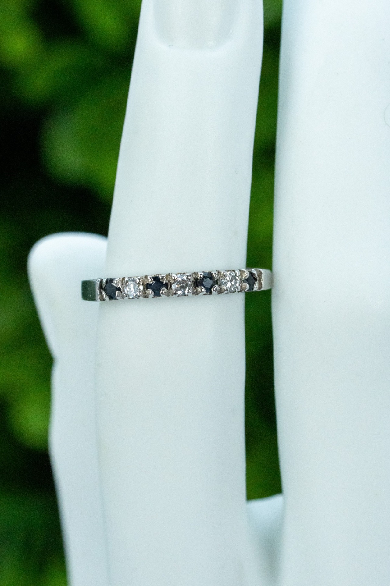 Inel vechi din argint, cu safire naturale și pietre cubic zirconia.