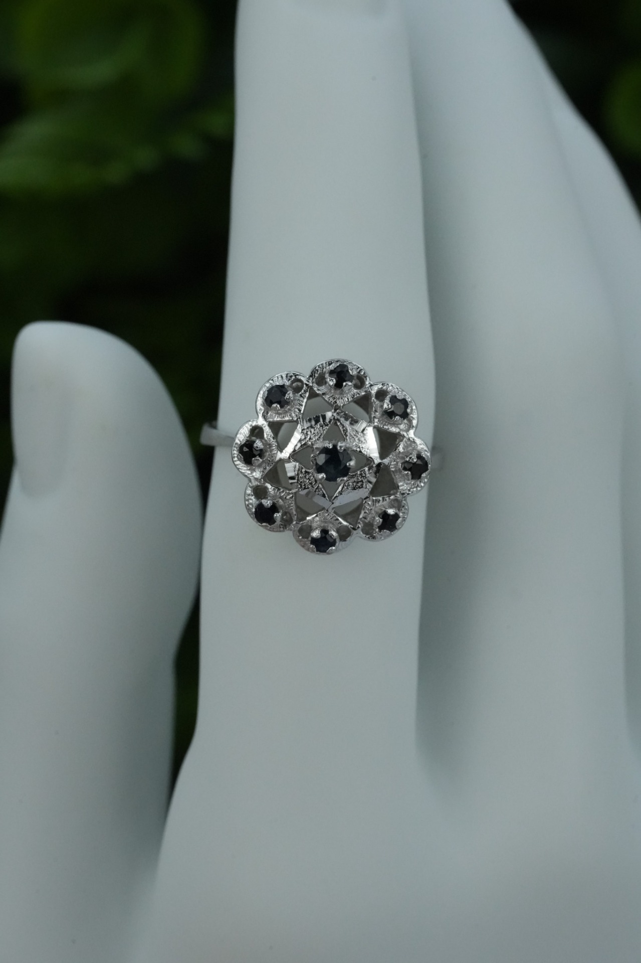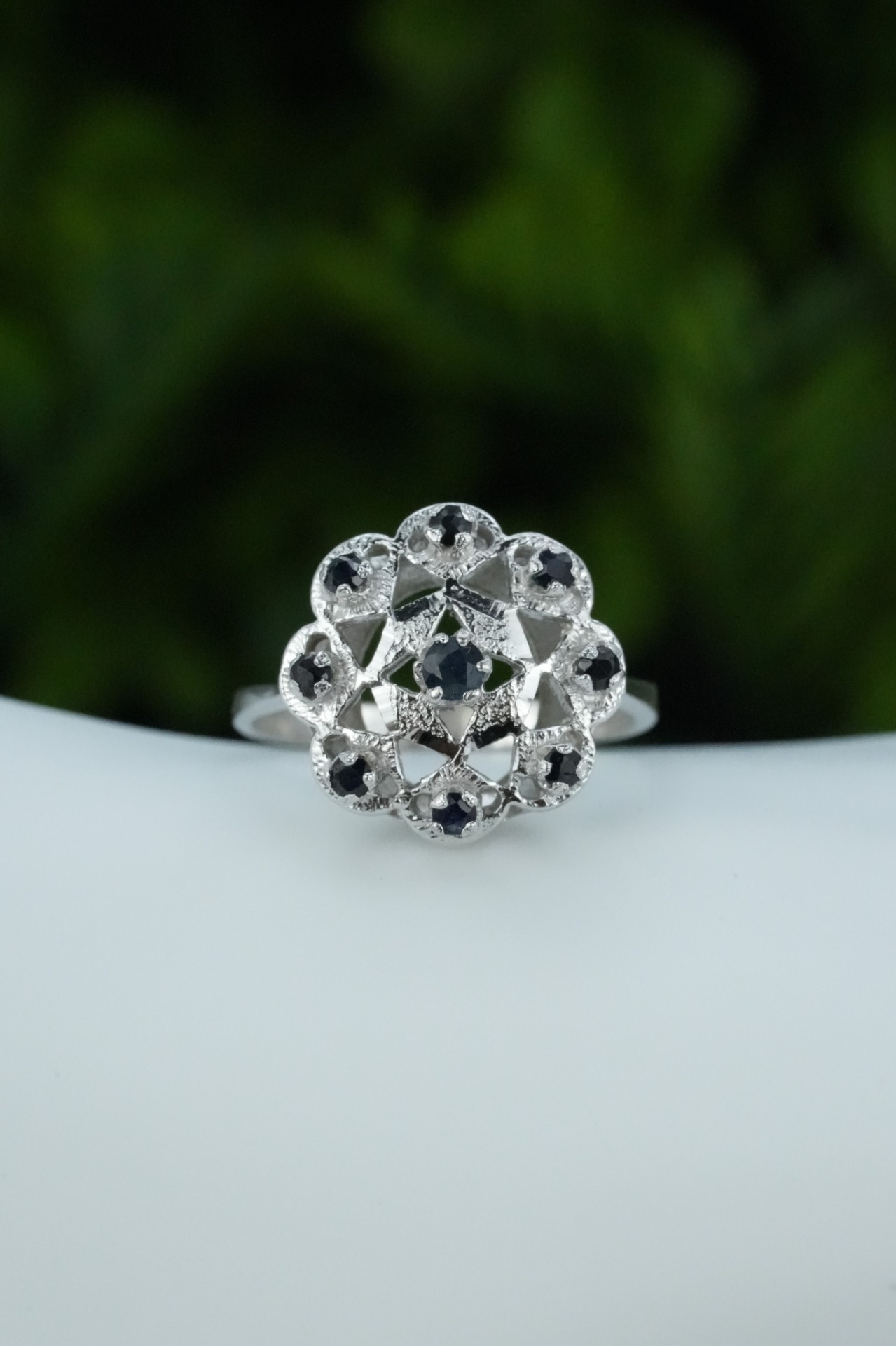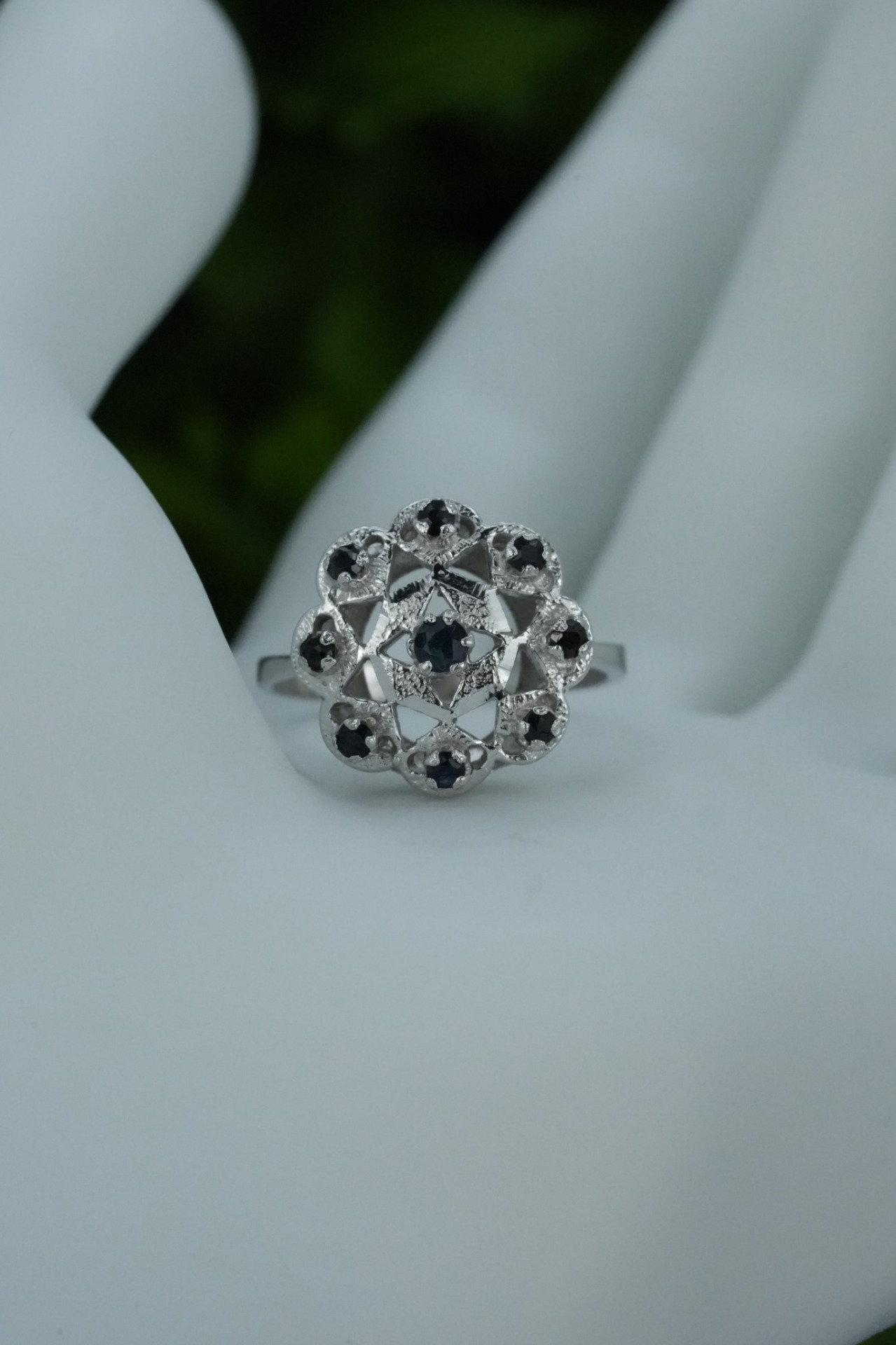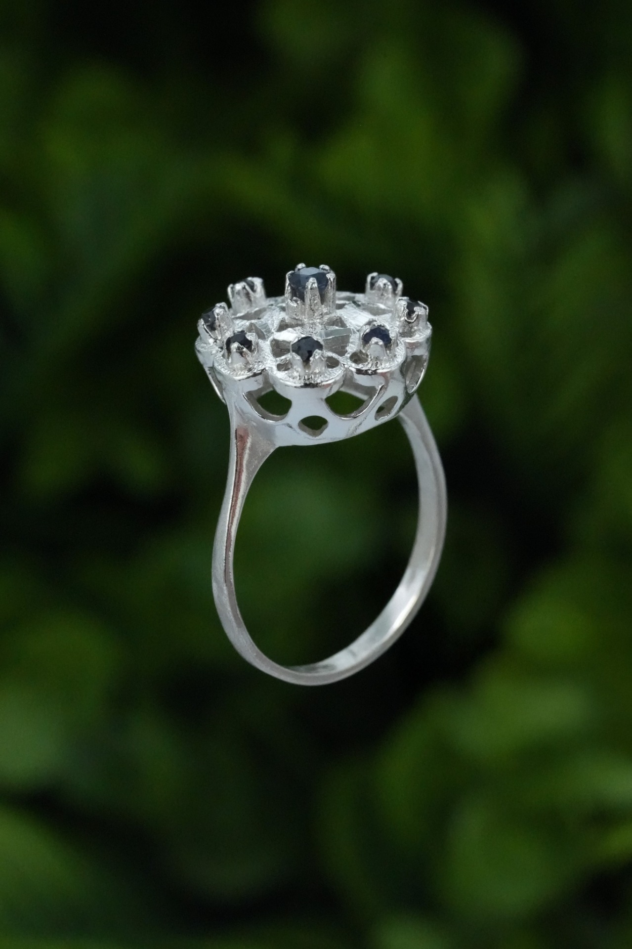 Inel vechi din argint, cu safire naturale.
