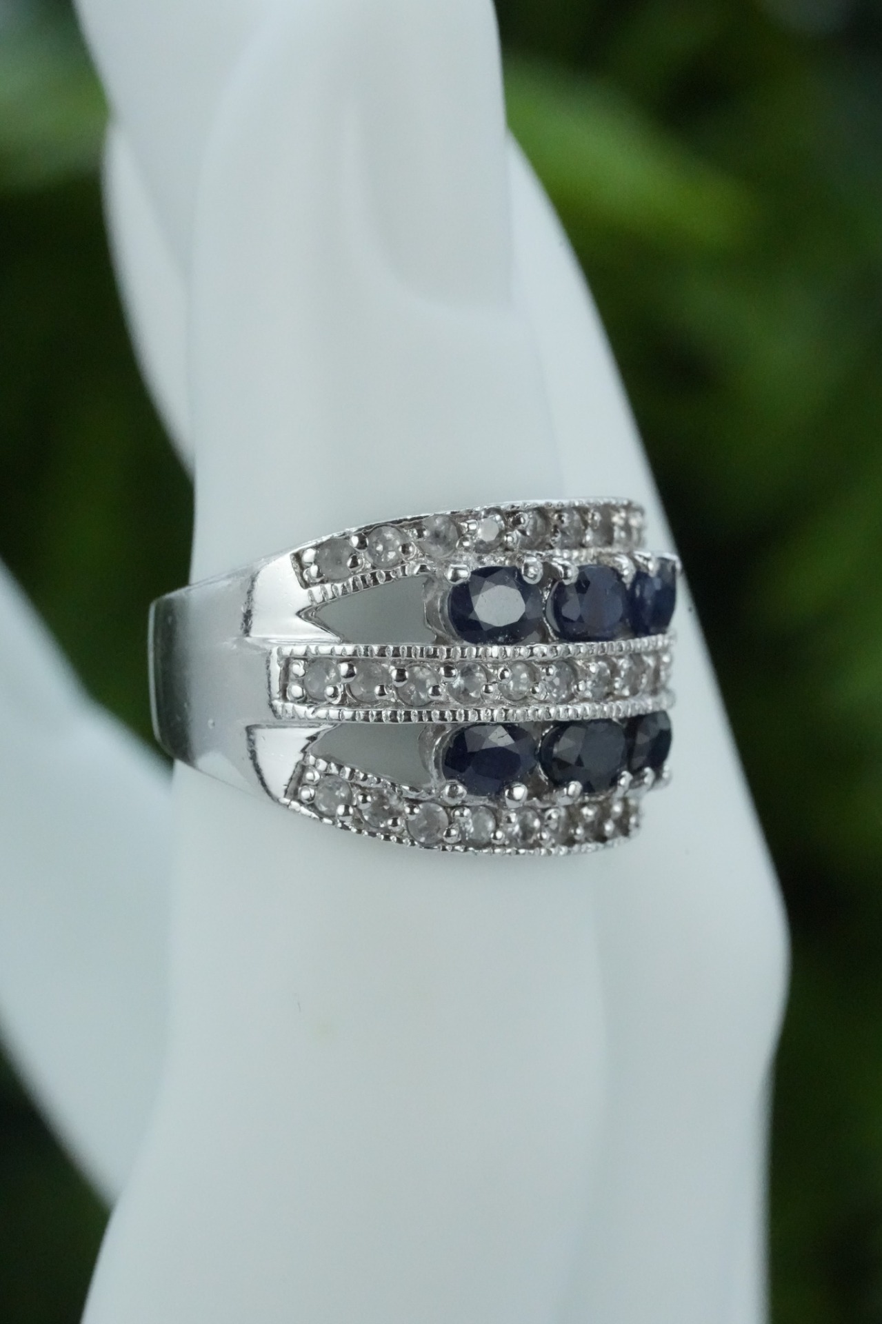 Inel vechi din argint, cu safire și topaze albe naturale.