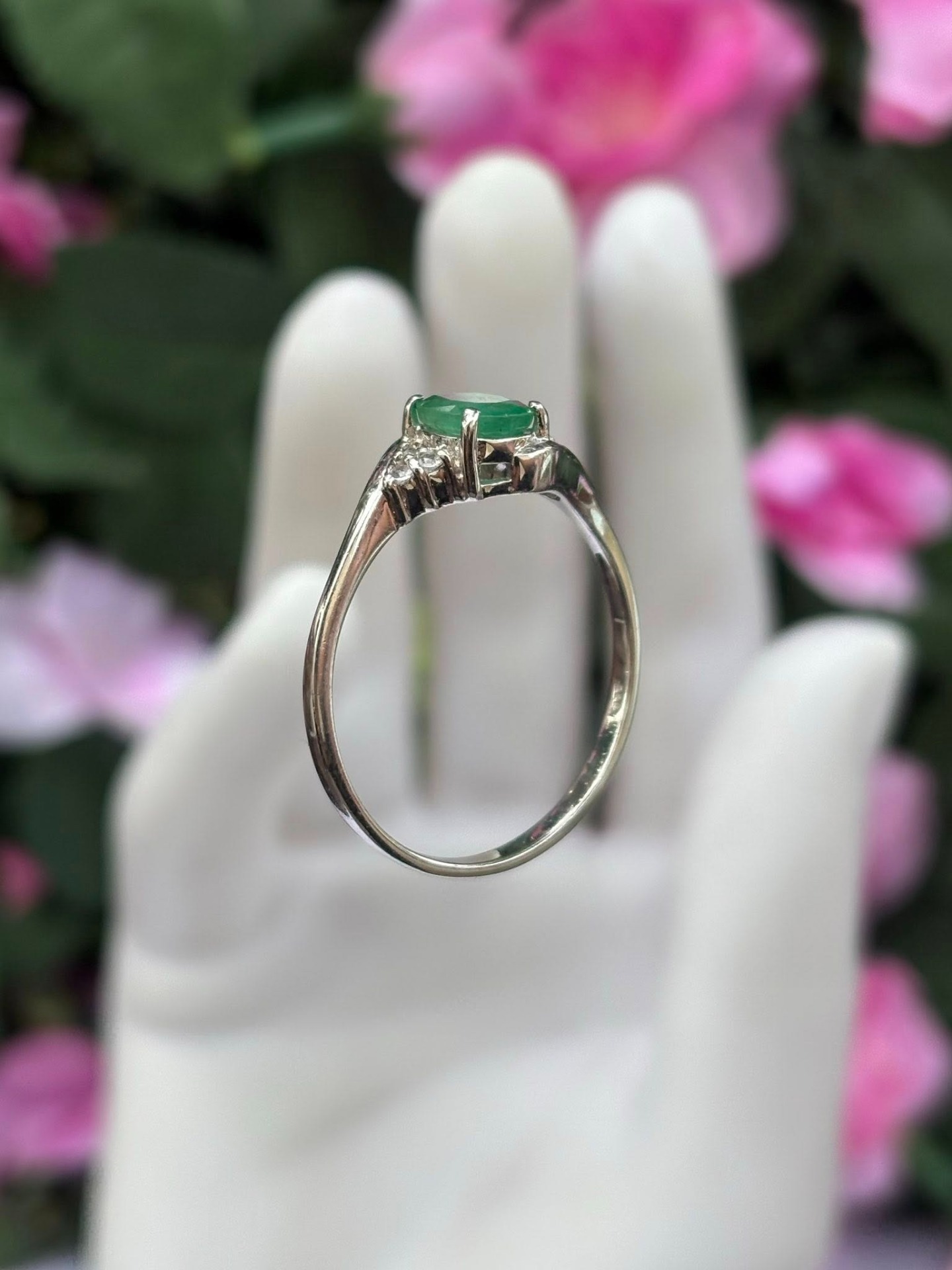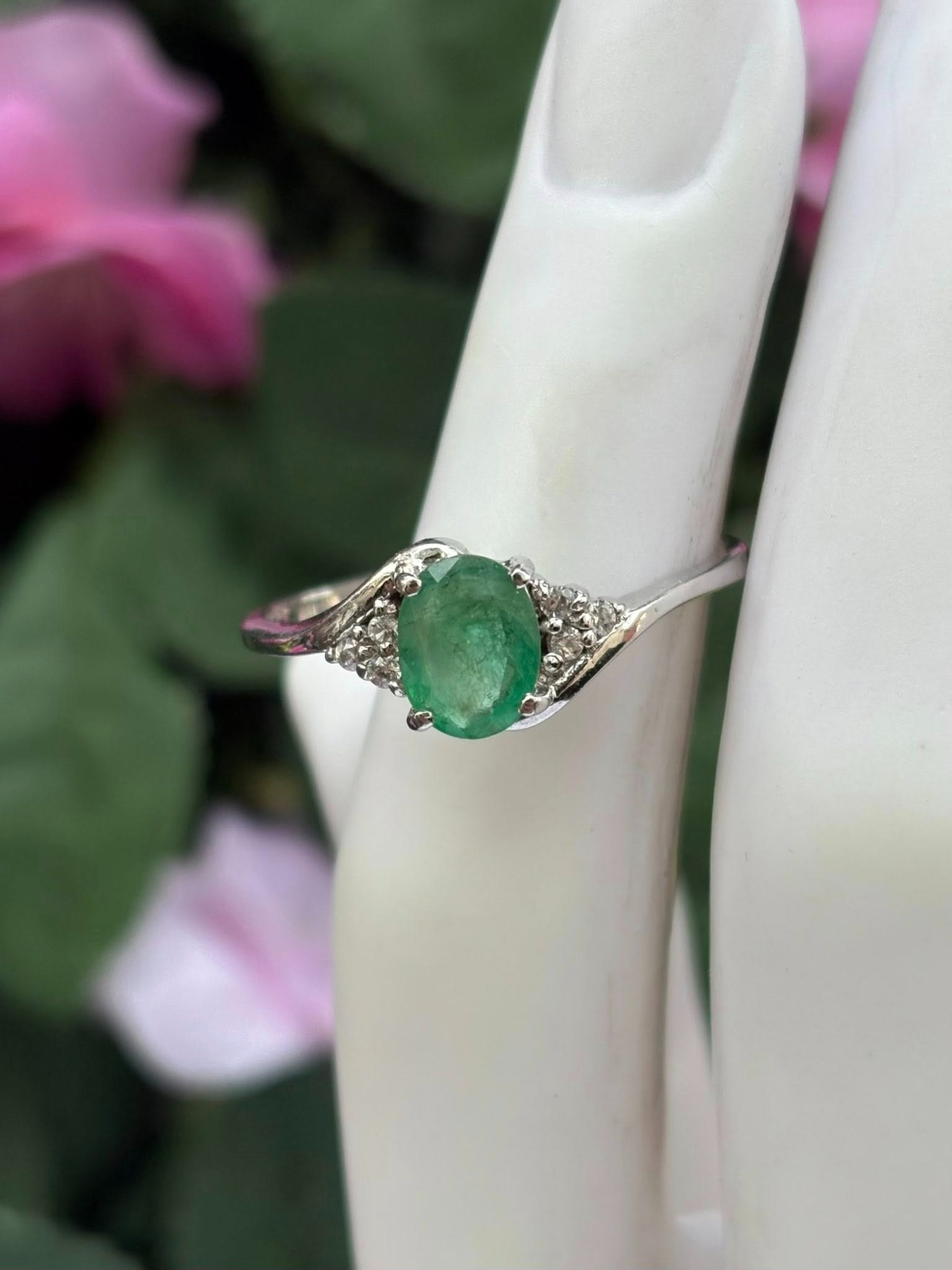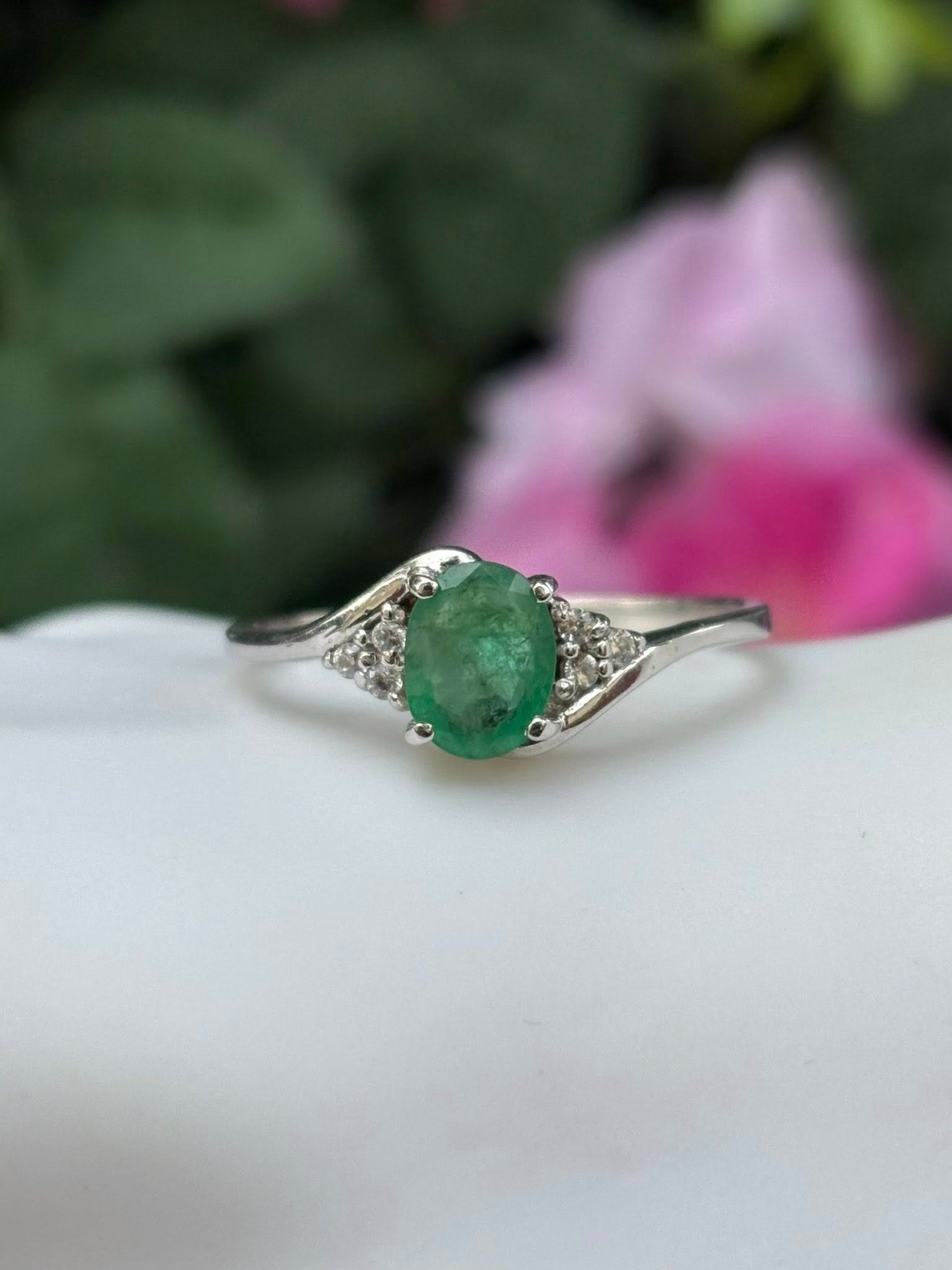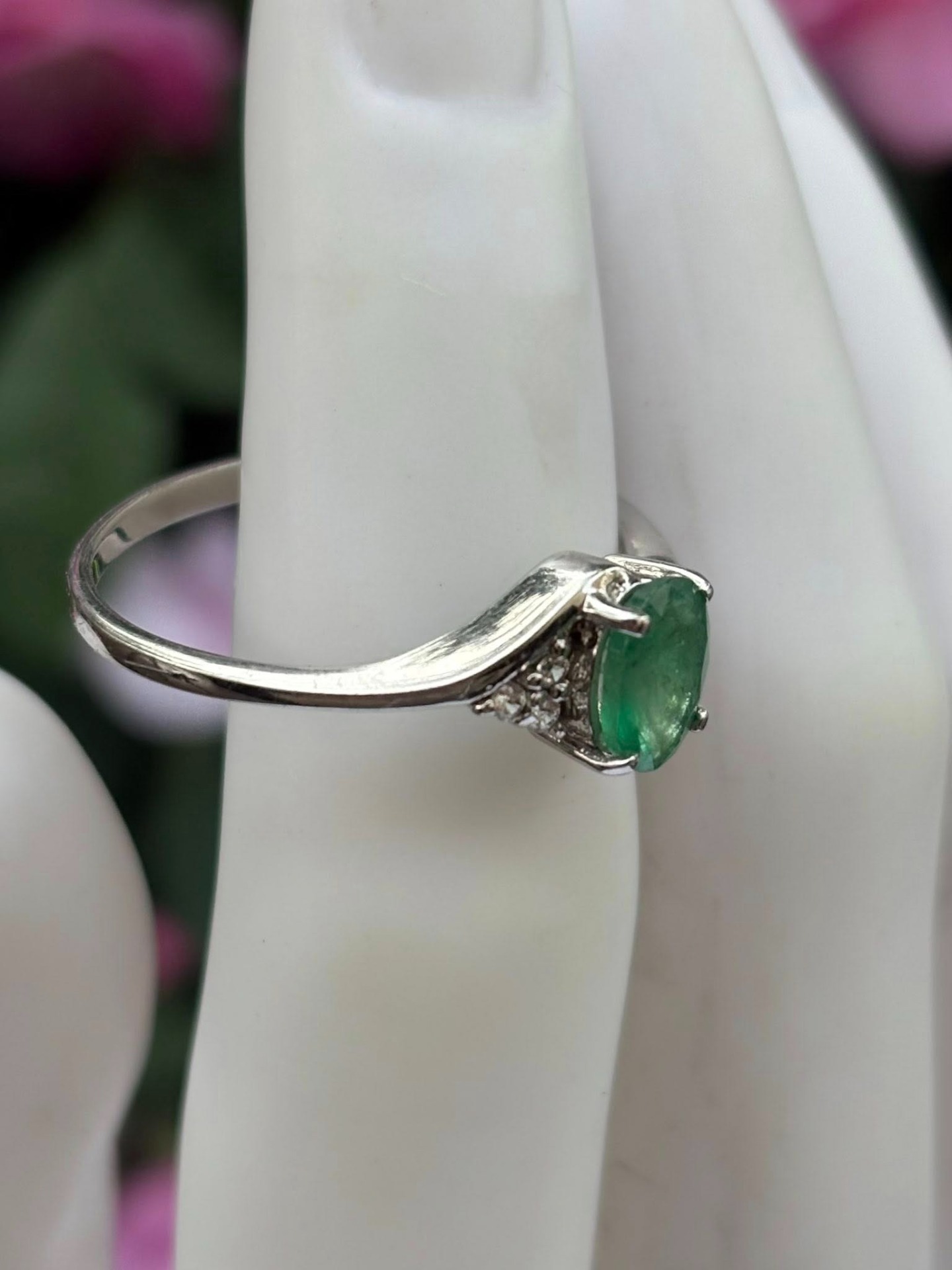 Inel vechi din argint, cu smarald si aquamarine naturale.