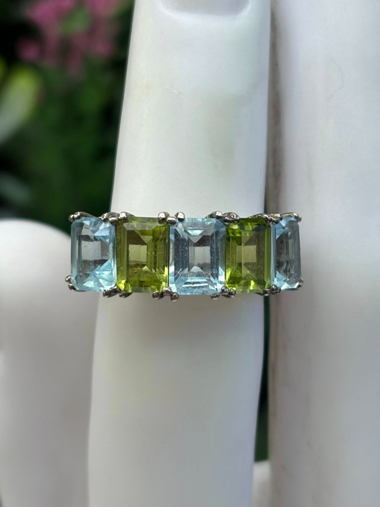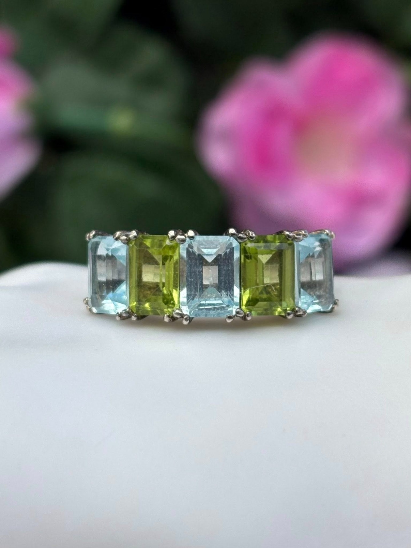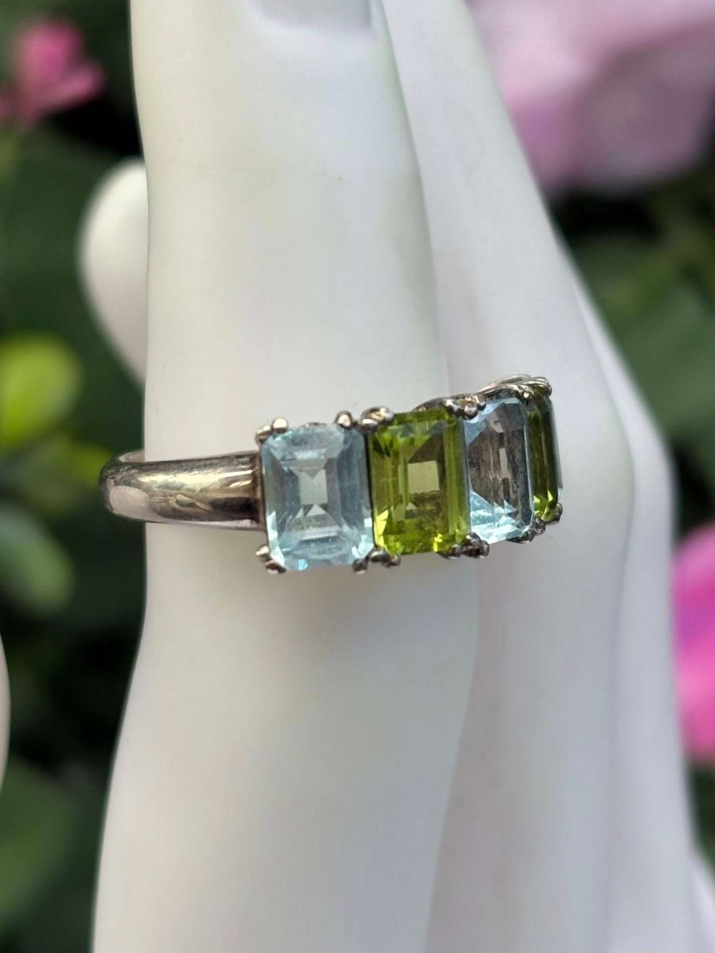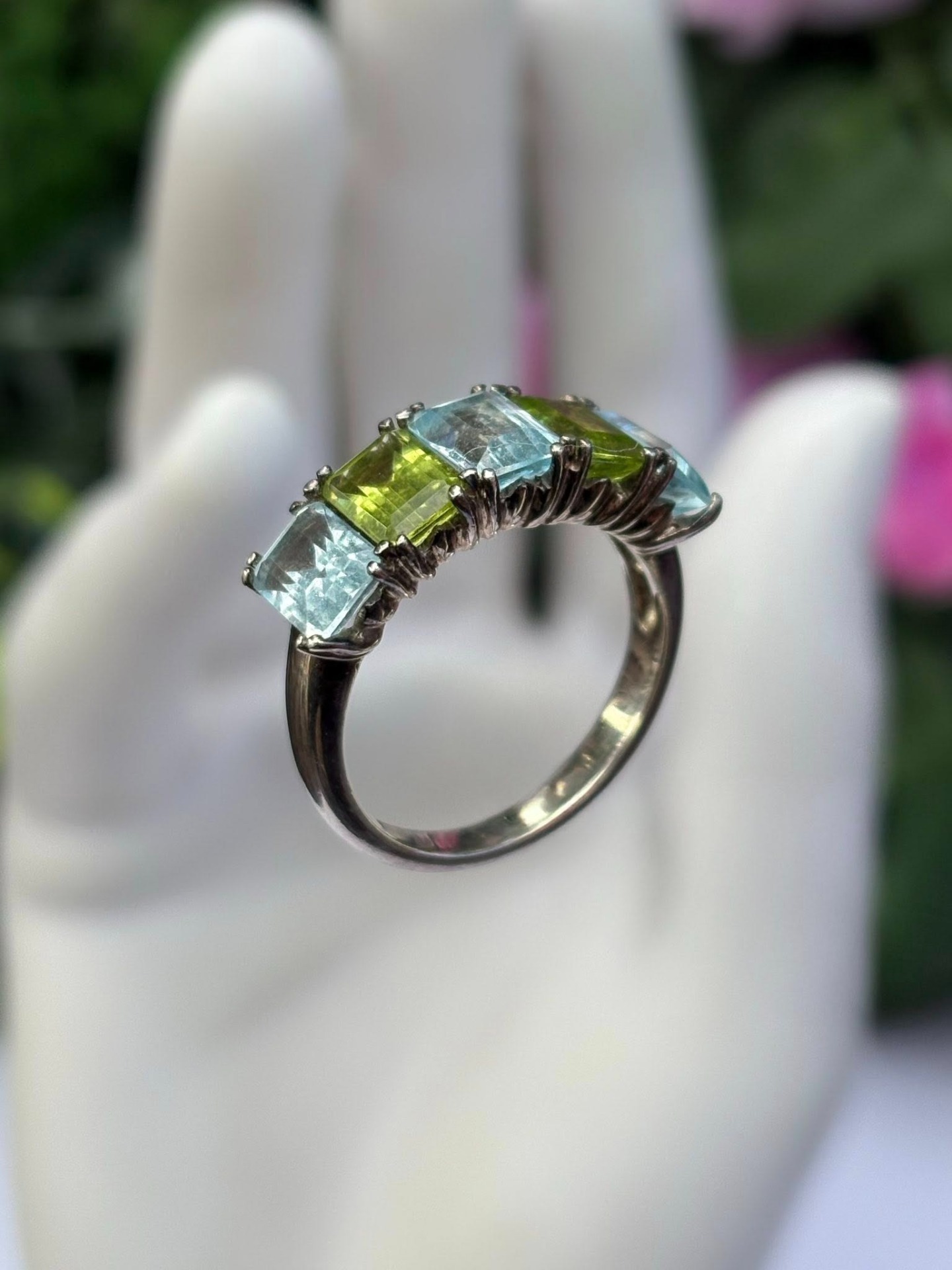 Inel vechi din argint, cu topaz și peridot naturale.