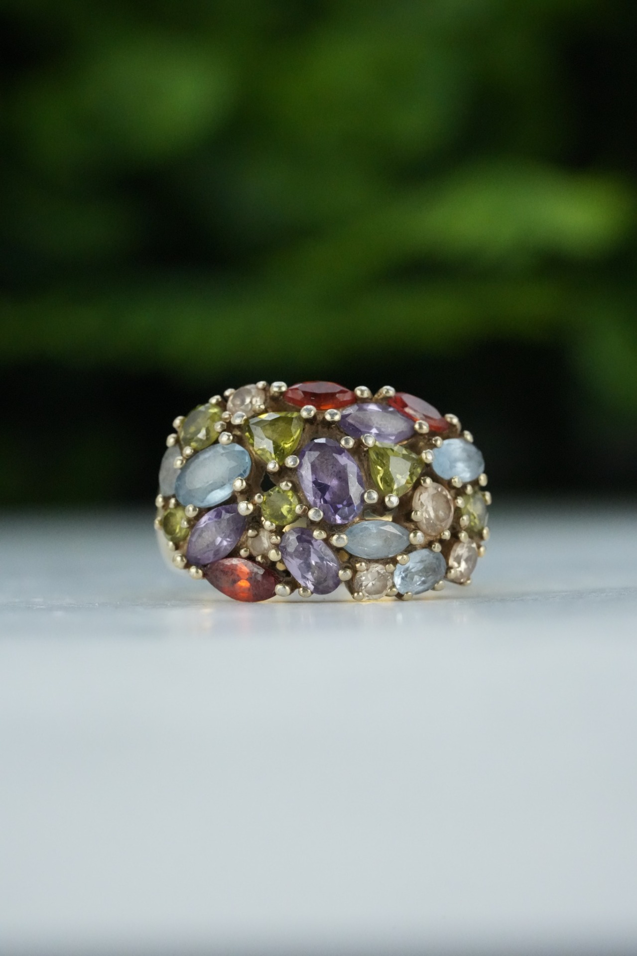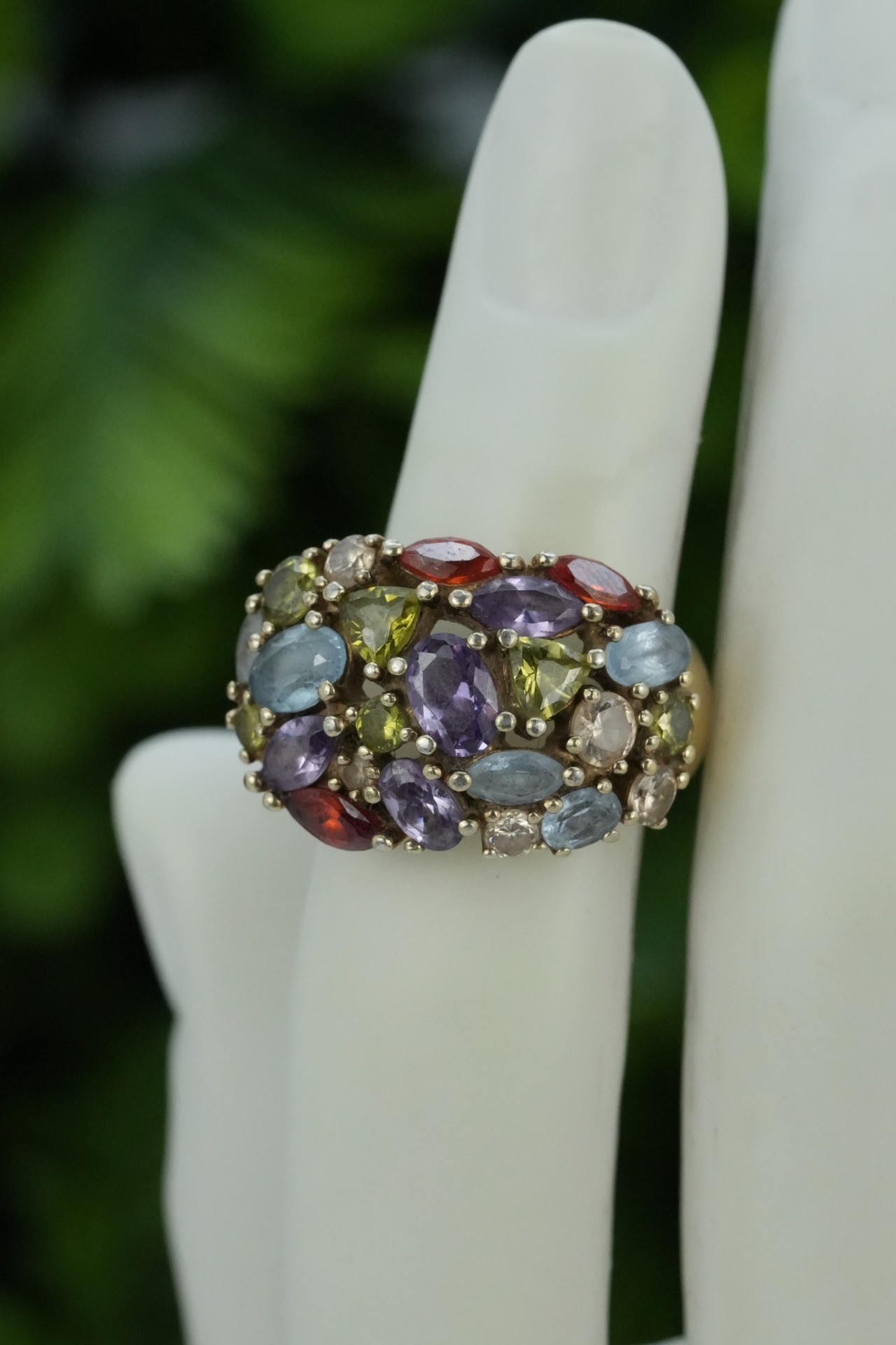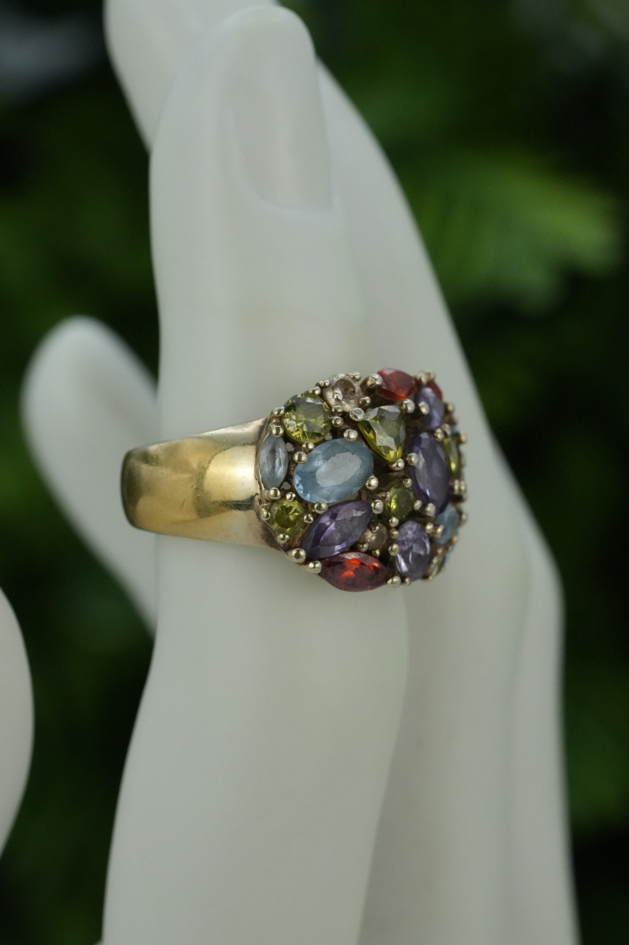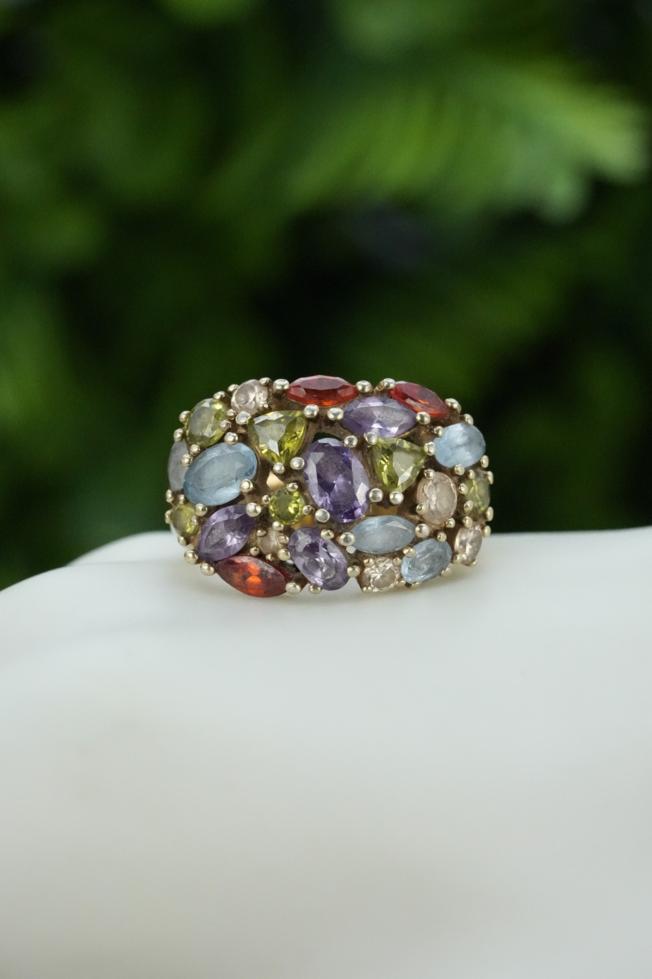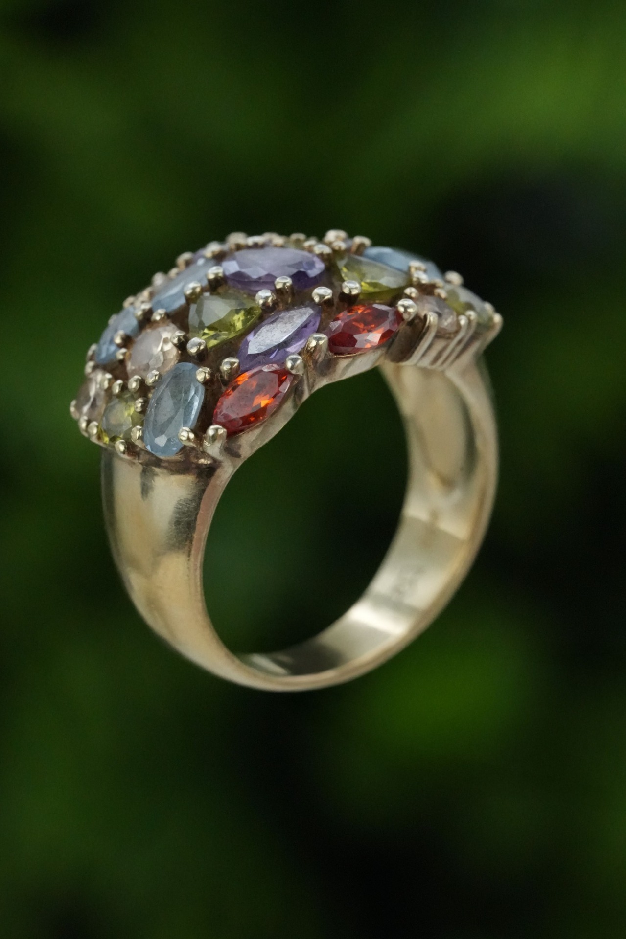 Inel vechi din argint, cu topaze naturale si pietre cubic zirconia.