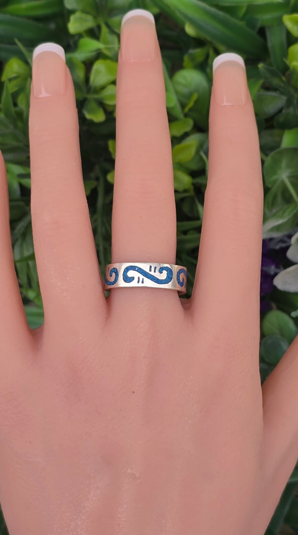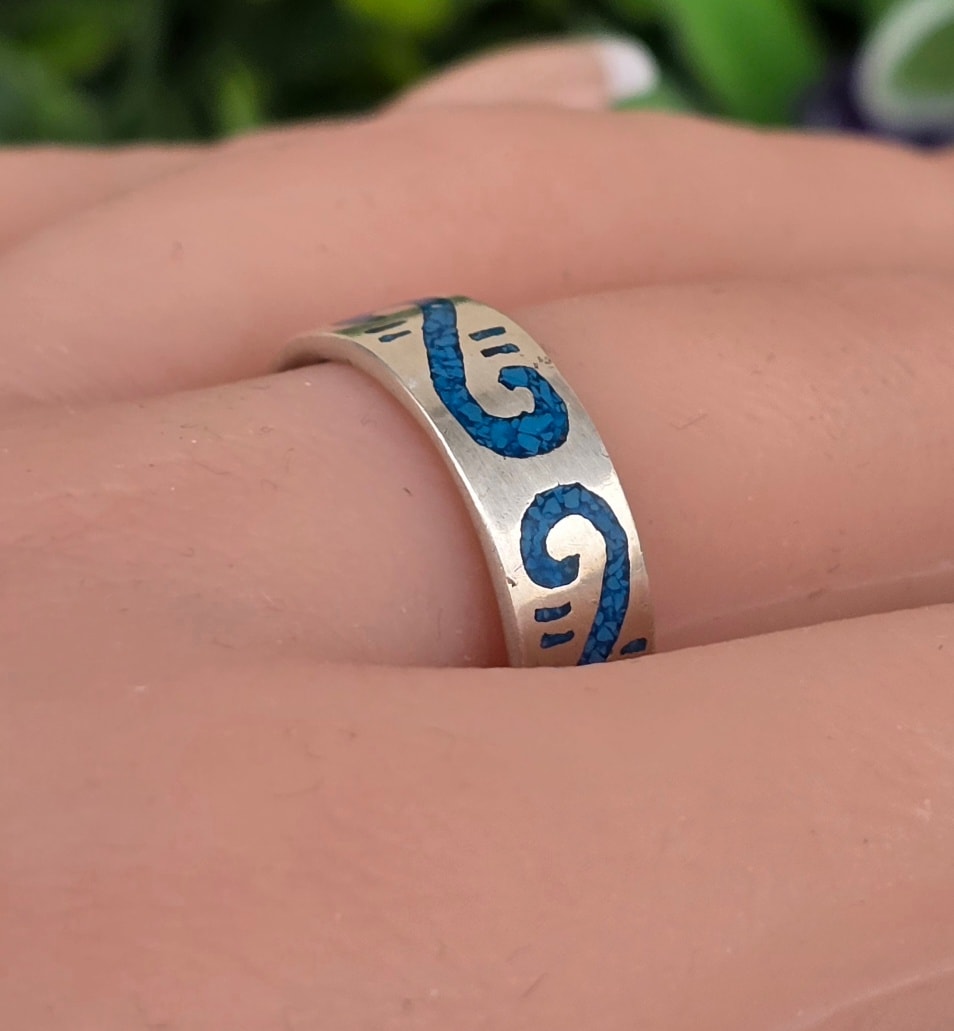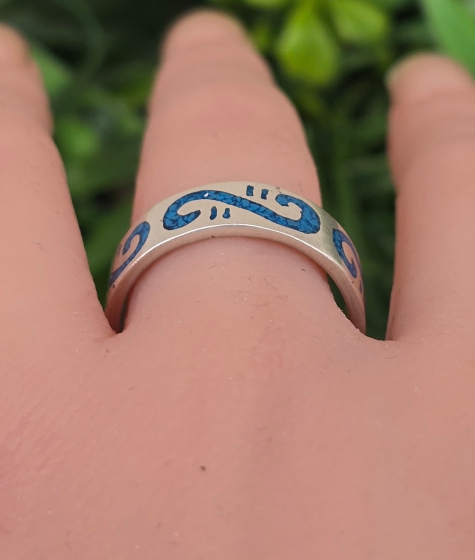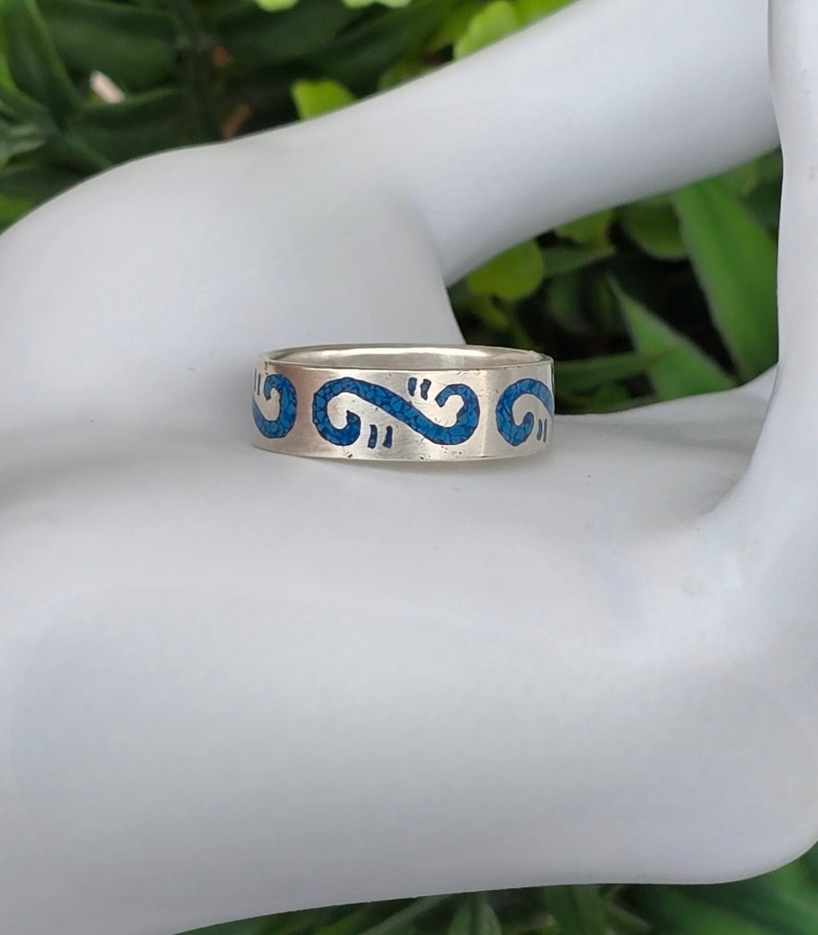 Inel vechi din argint, cu turcoaz natural.
