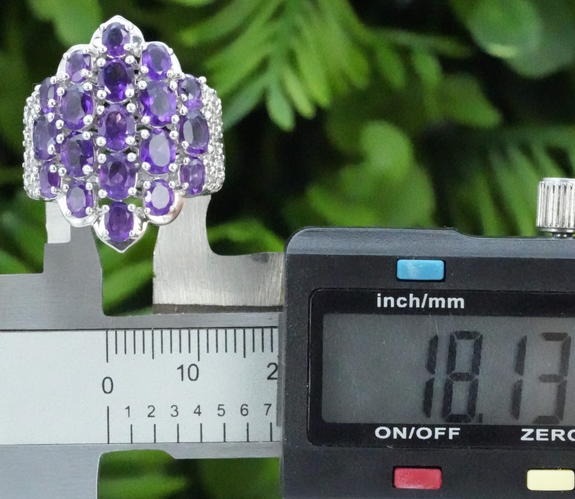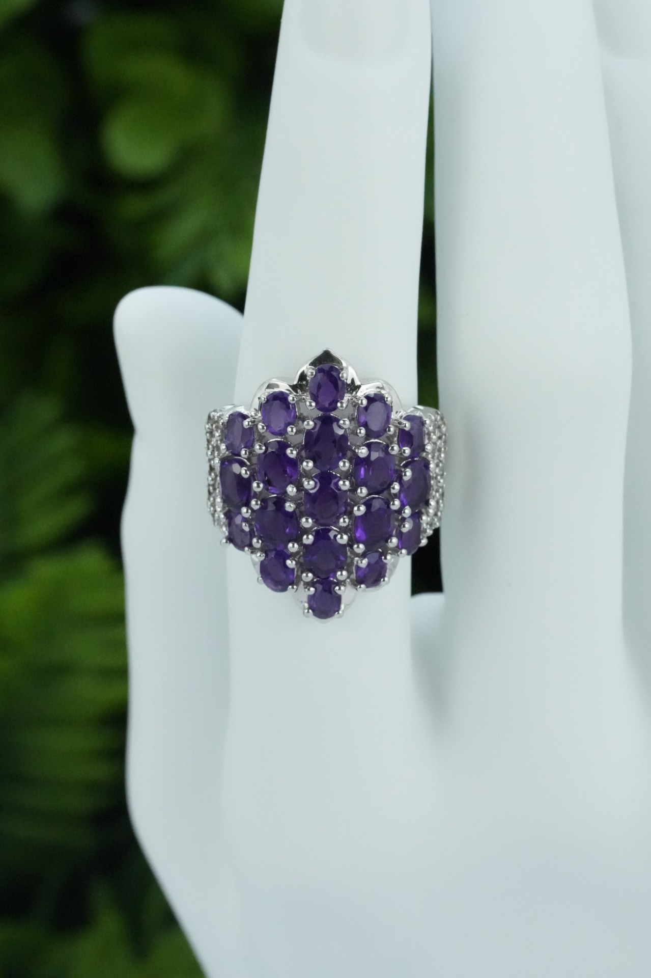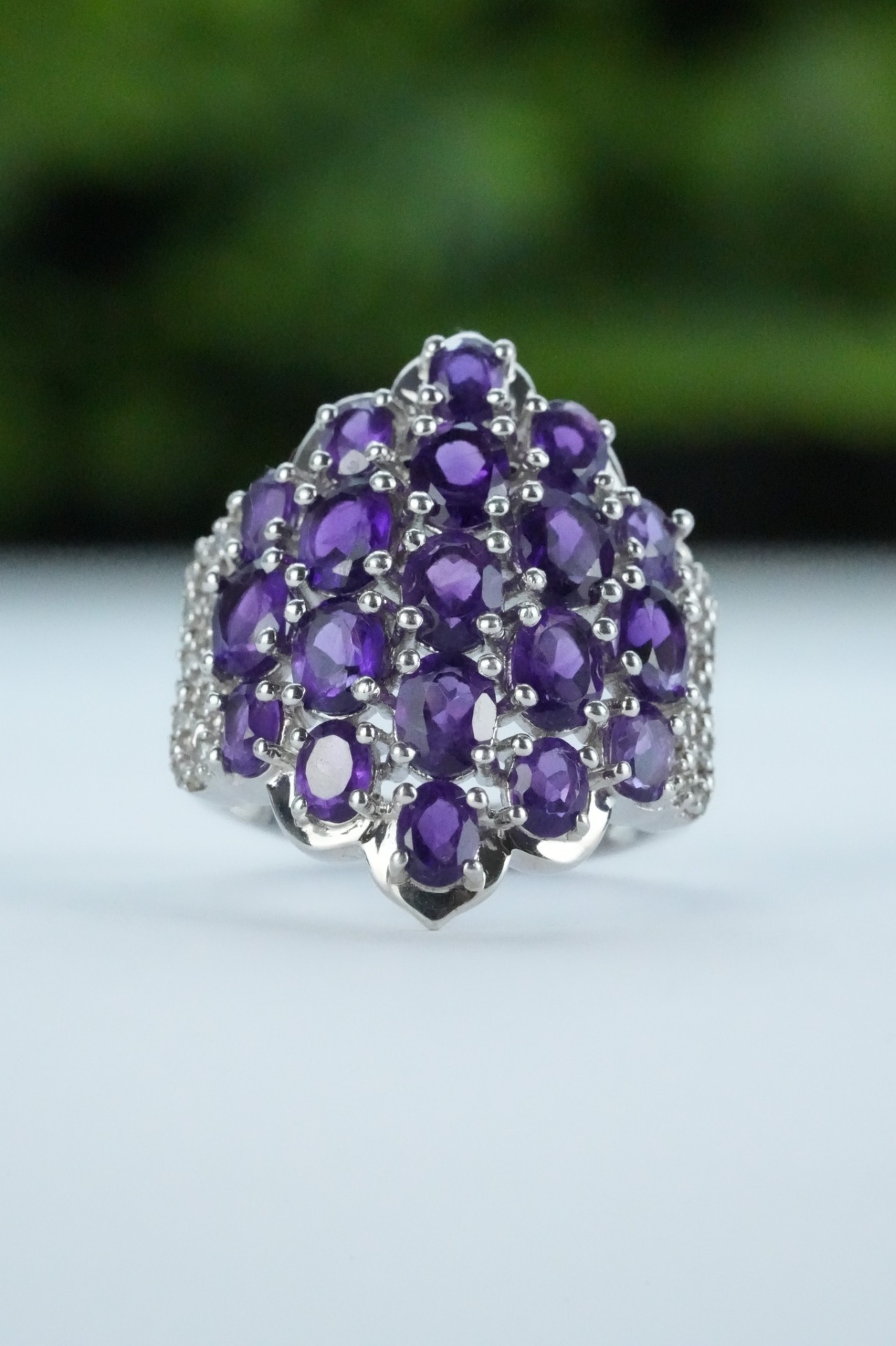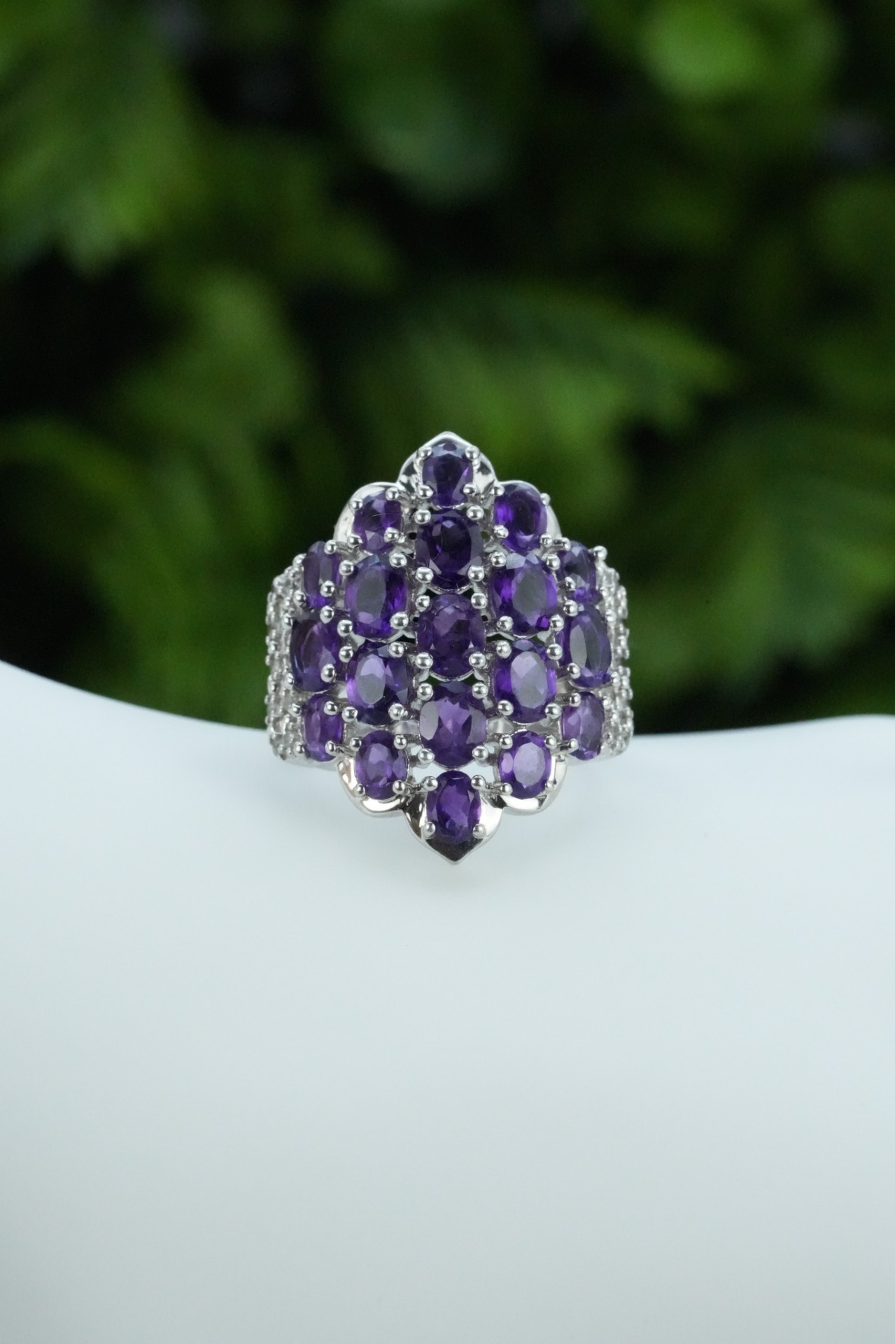 Inel vechi din argint, deosebit, cu ametiste și topaze albe naturale.