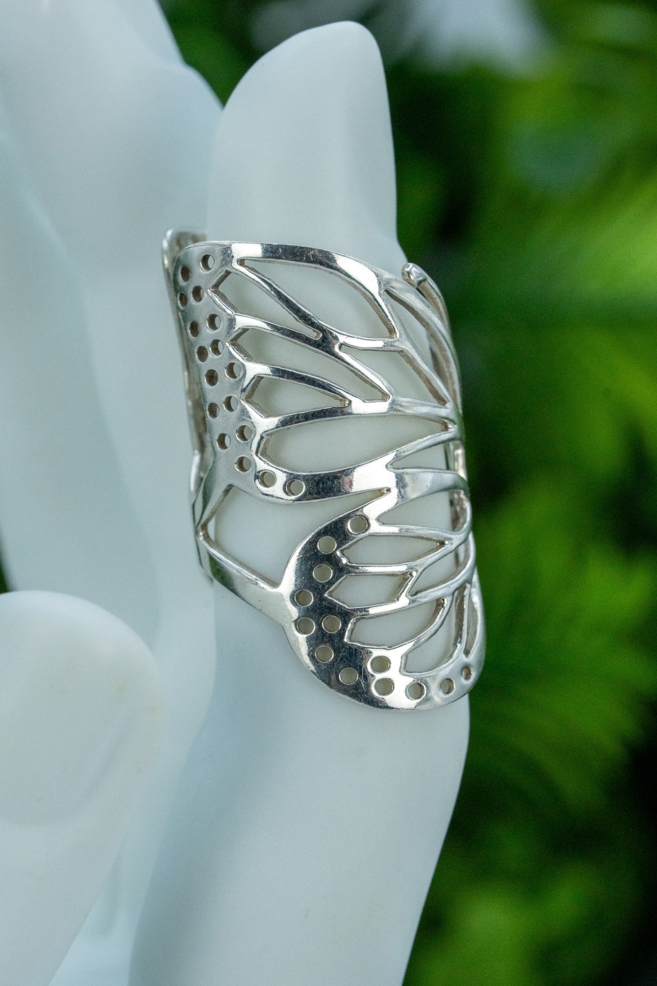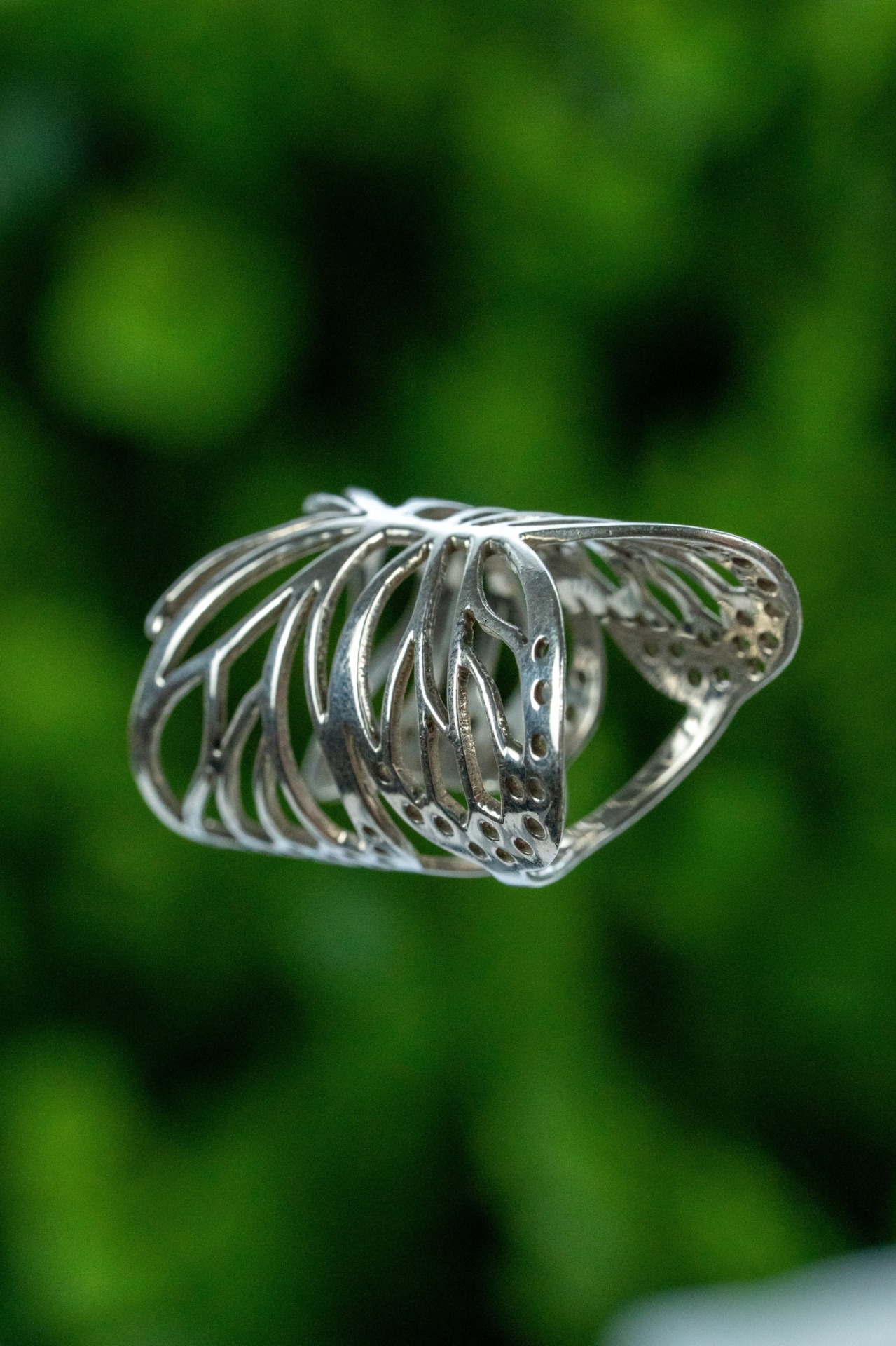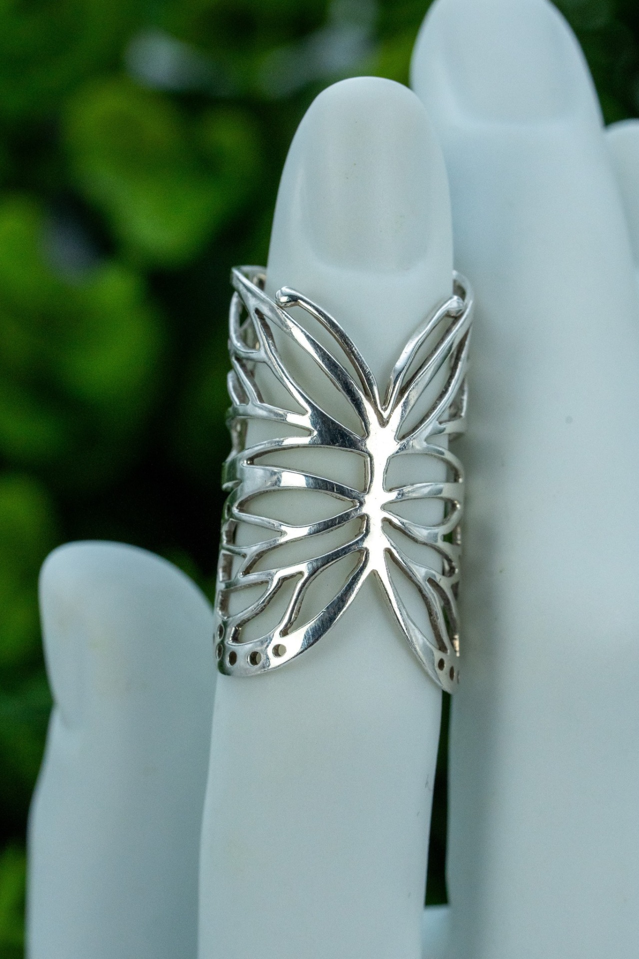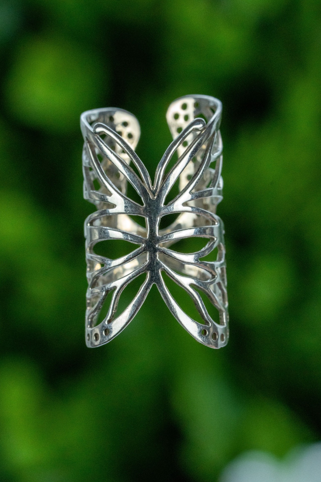 Inel vechi din argint, în forma unui fluturaș.