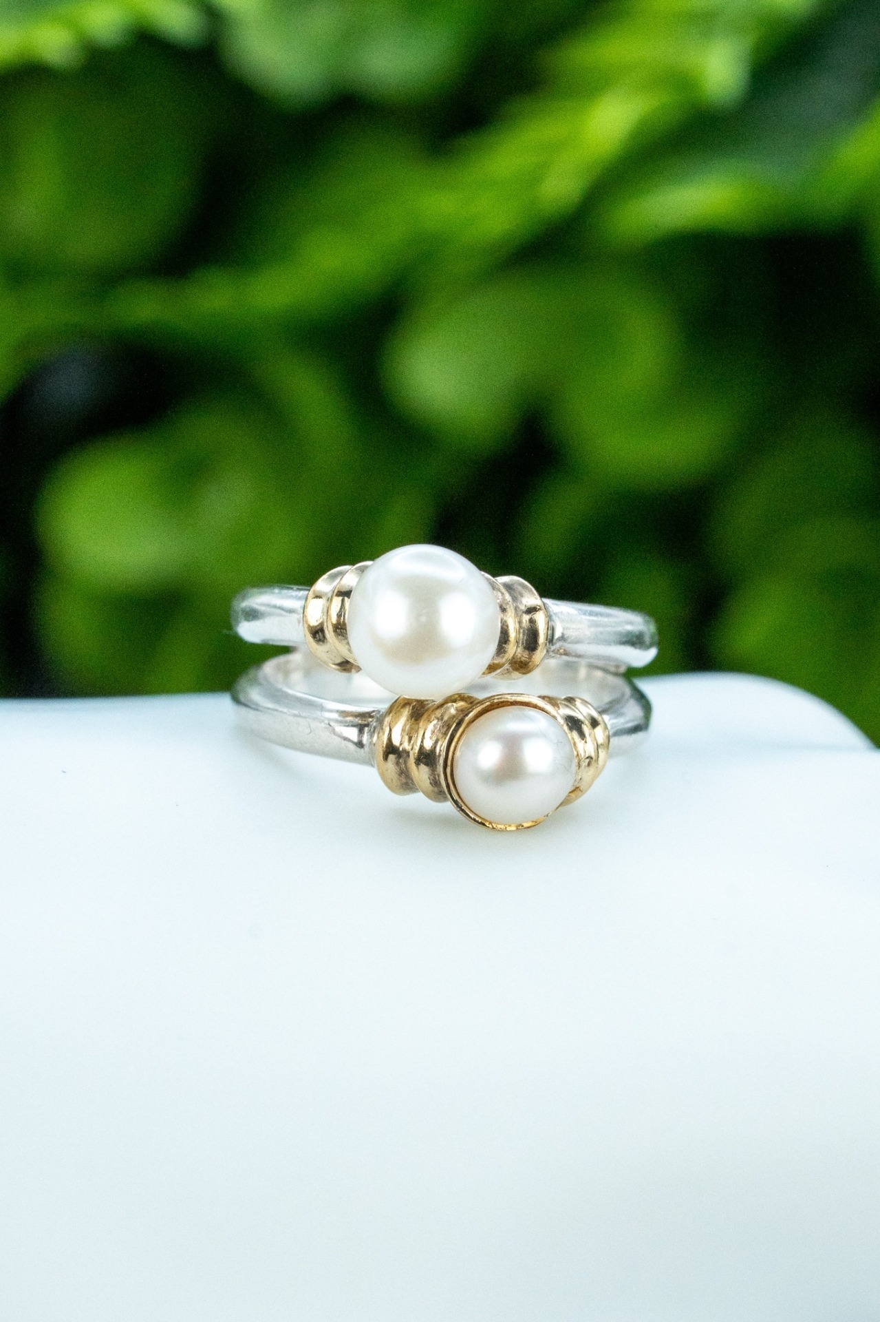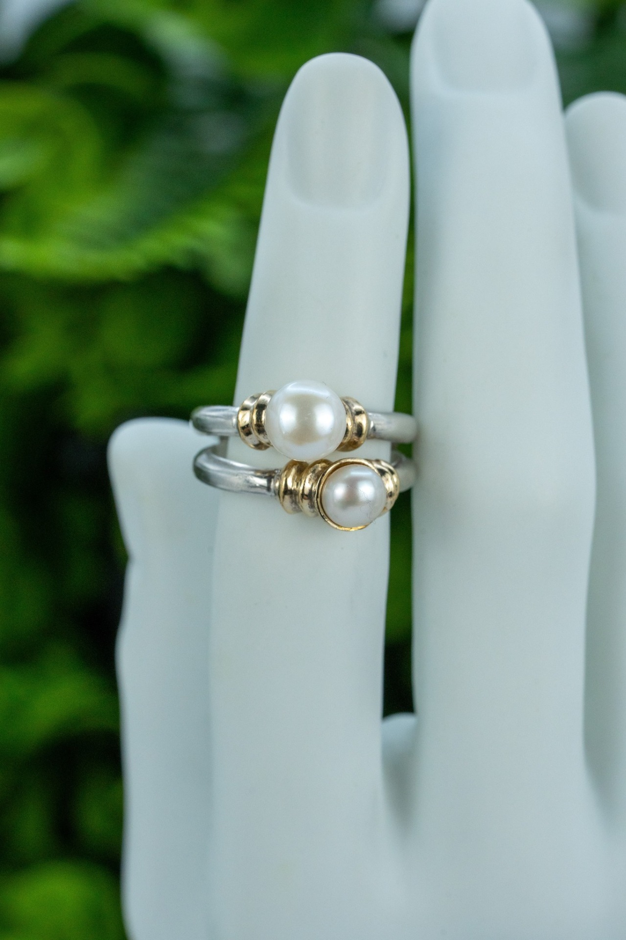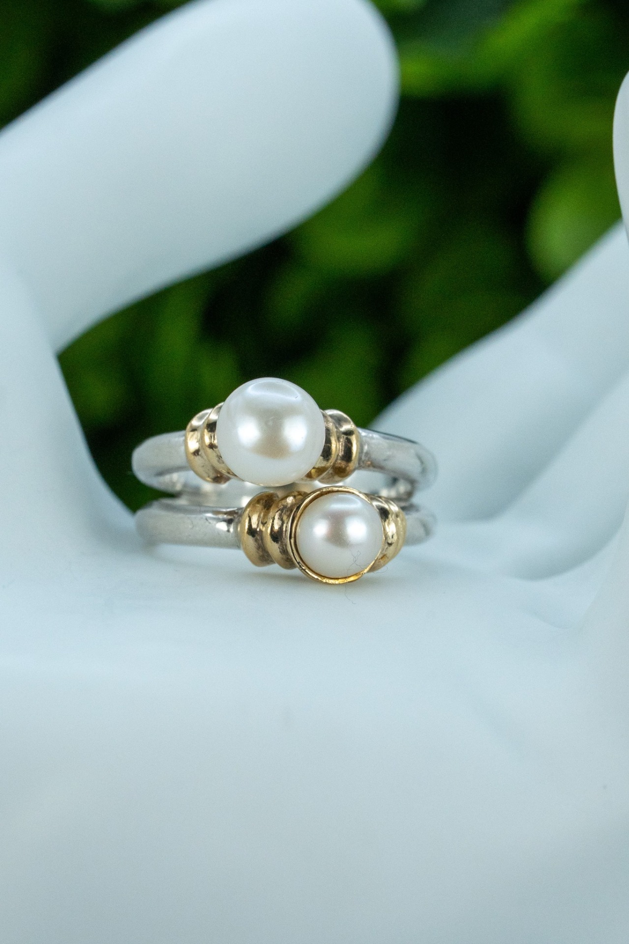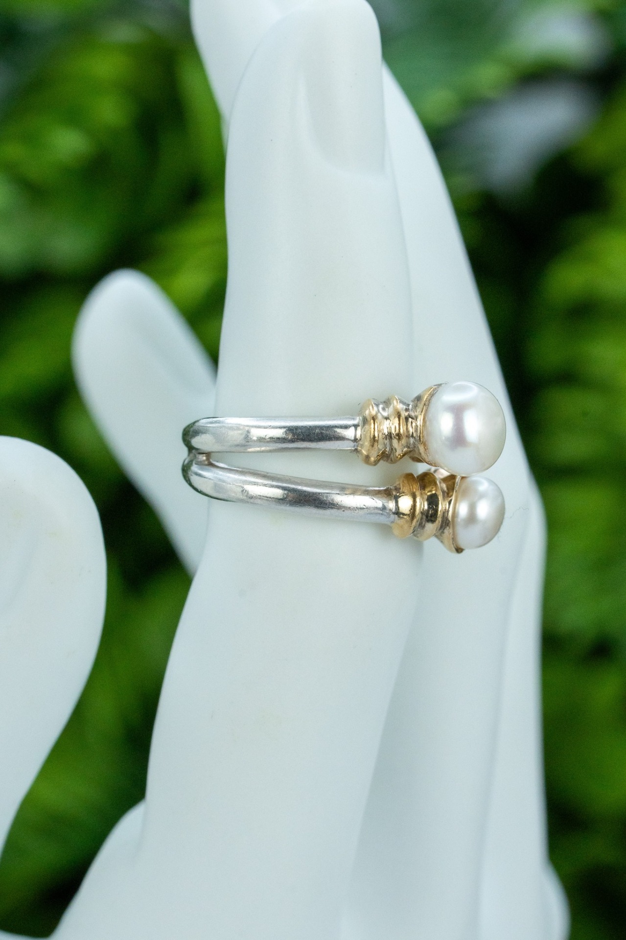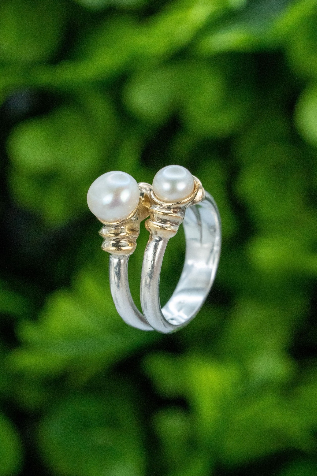 Inel vechi din argint și argint aurit, cu perle naturale de cultură.