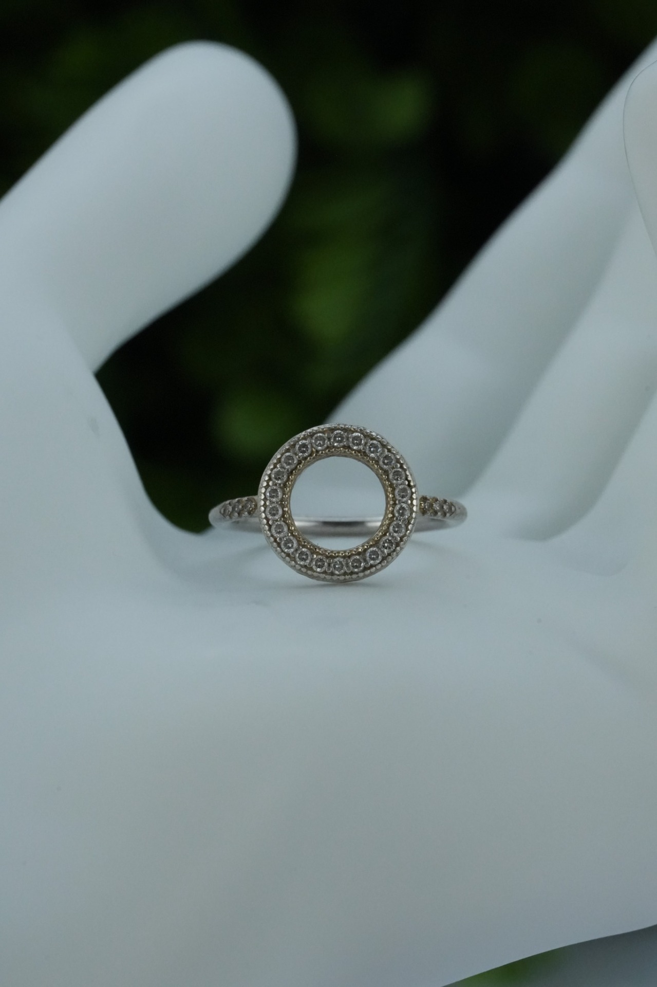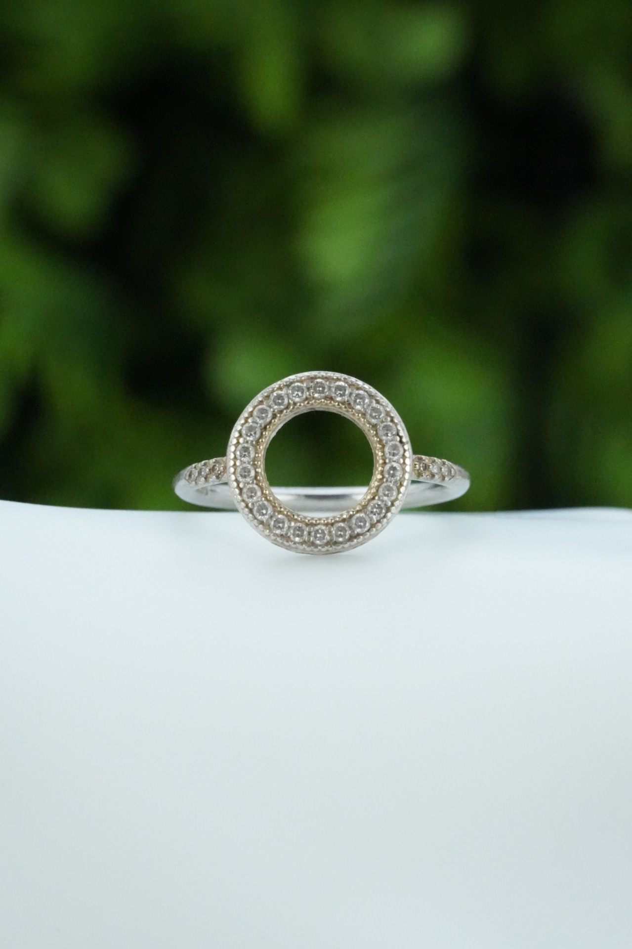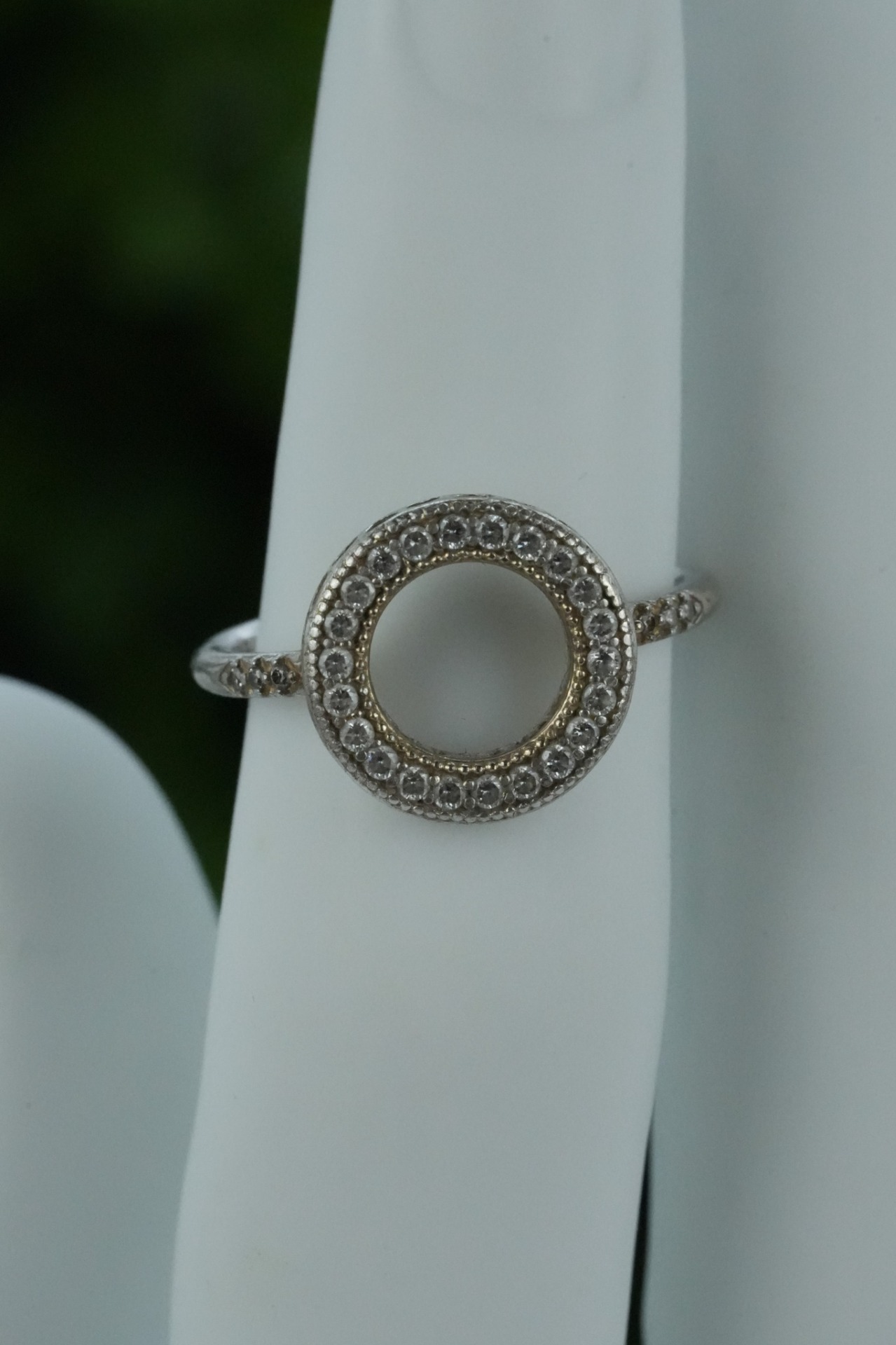 Inel vechi din argint și argint aurit, cu pietre cubic zirconia.