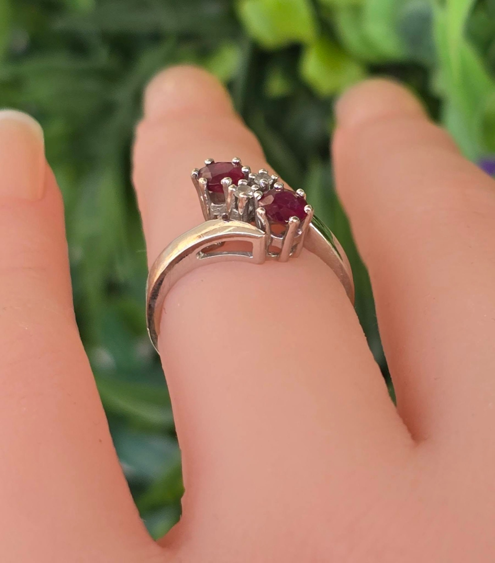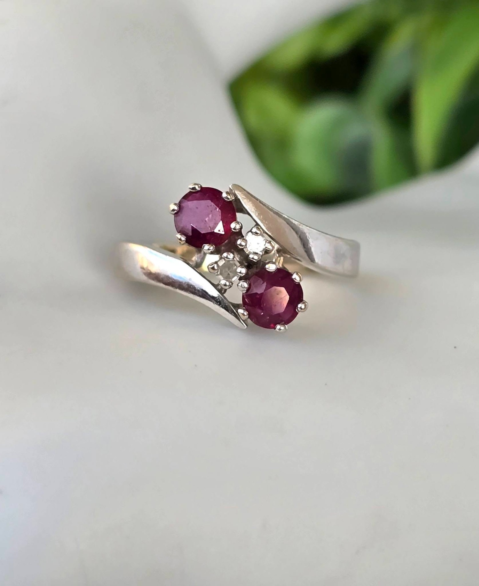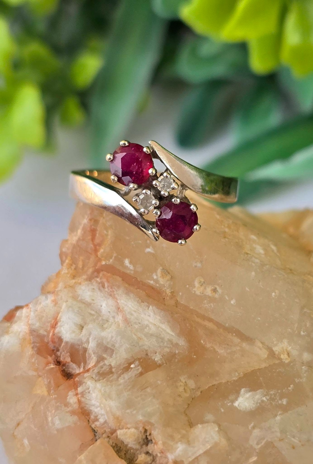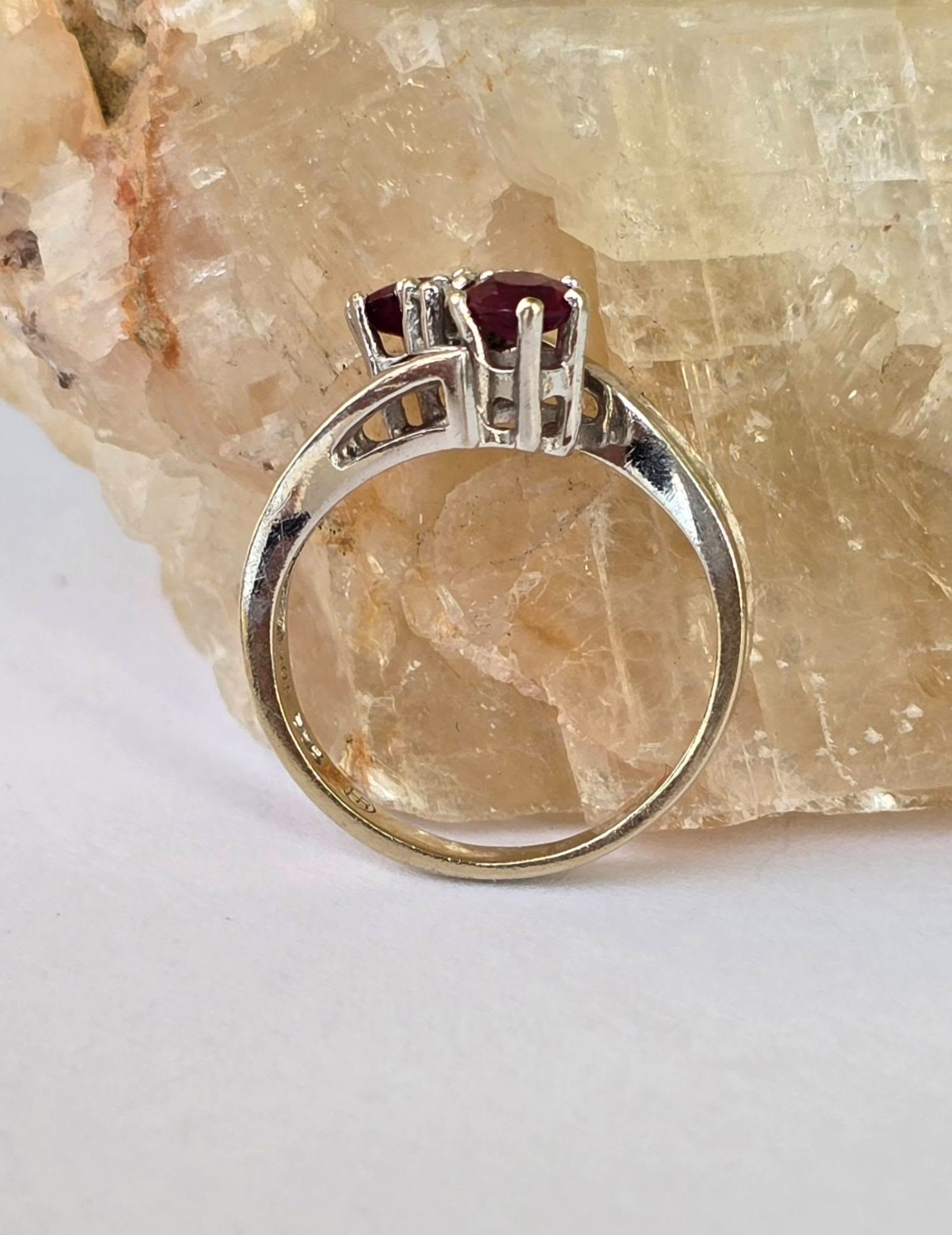 Inel vechi din aur de 14K, cu 2 rubine și 2 diamante naturale.