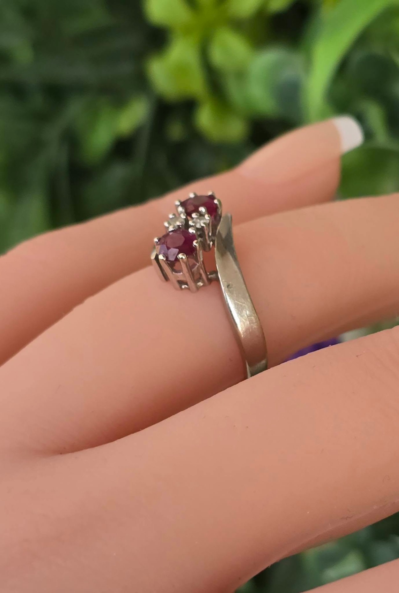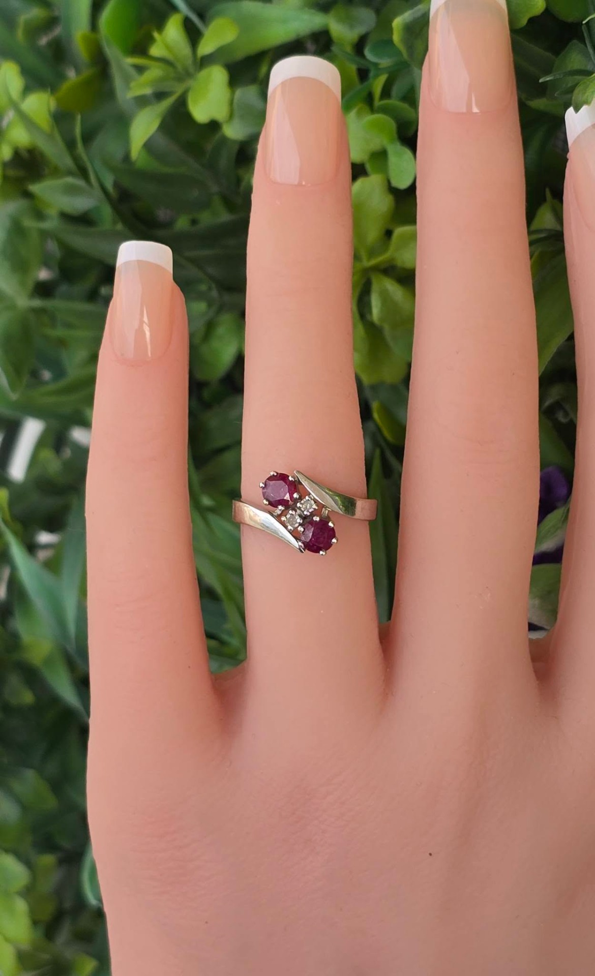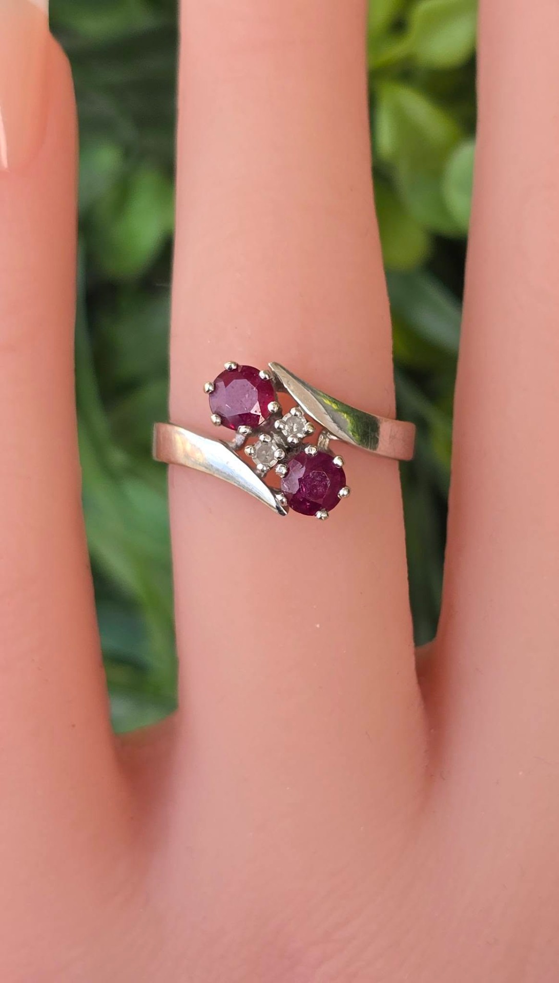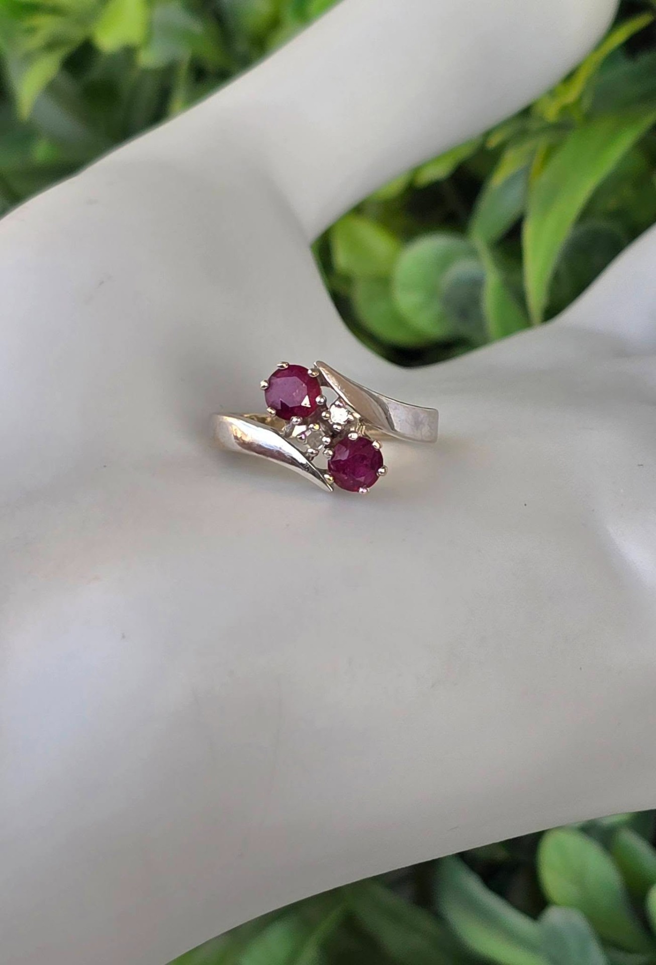 Inel vechi din aur de 14K, cu 2 rubine și 2 diamante naturale.