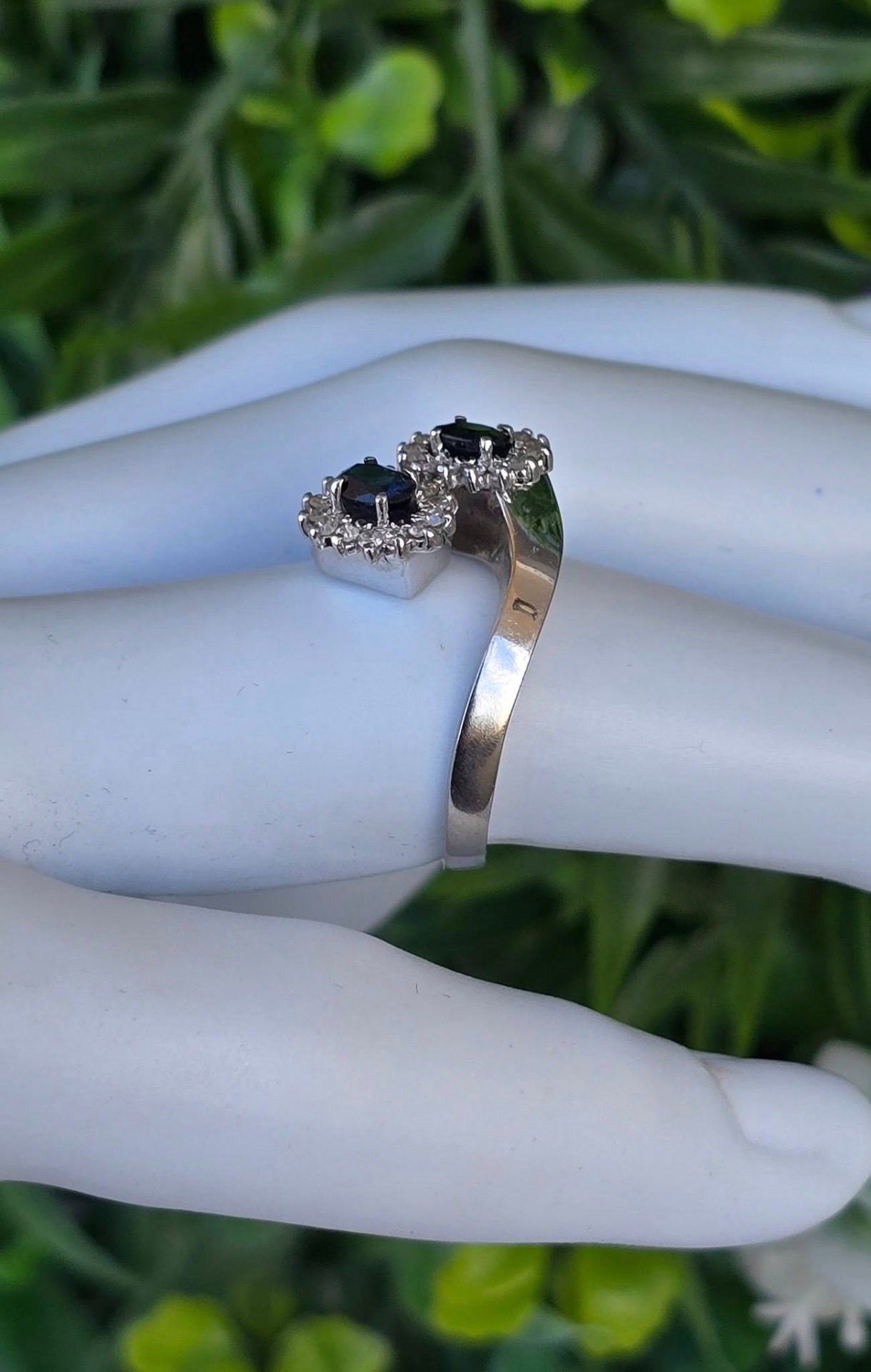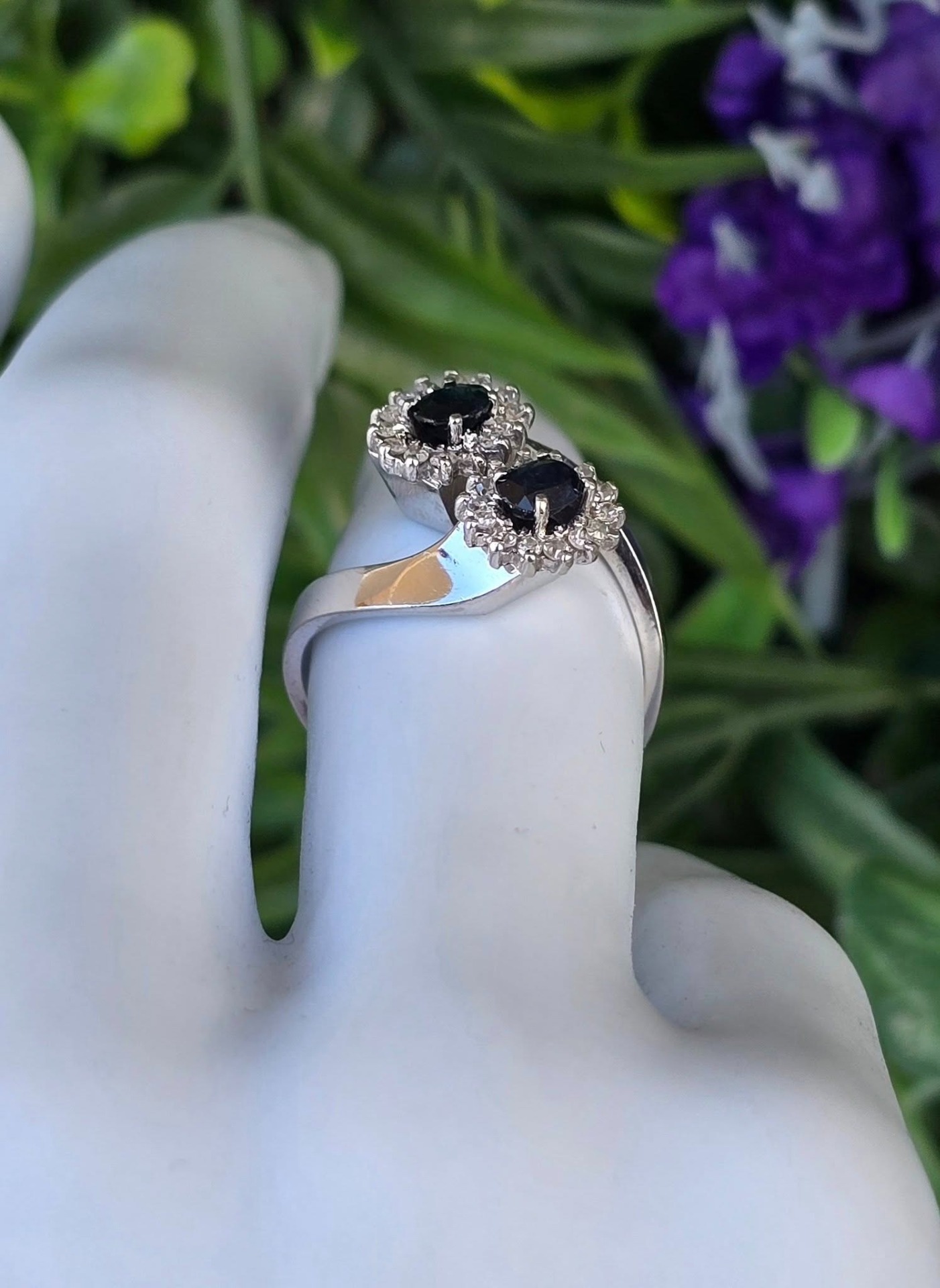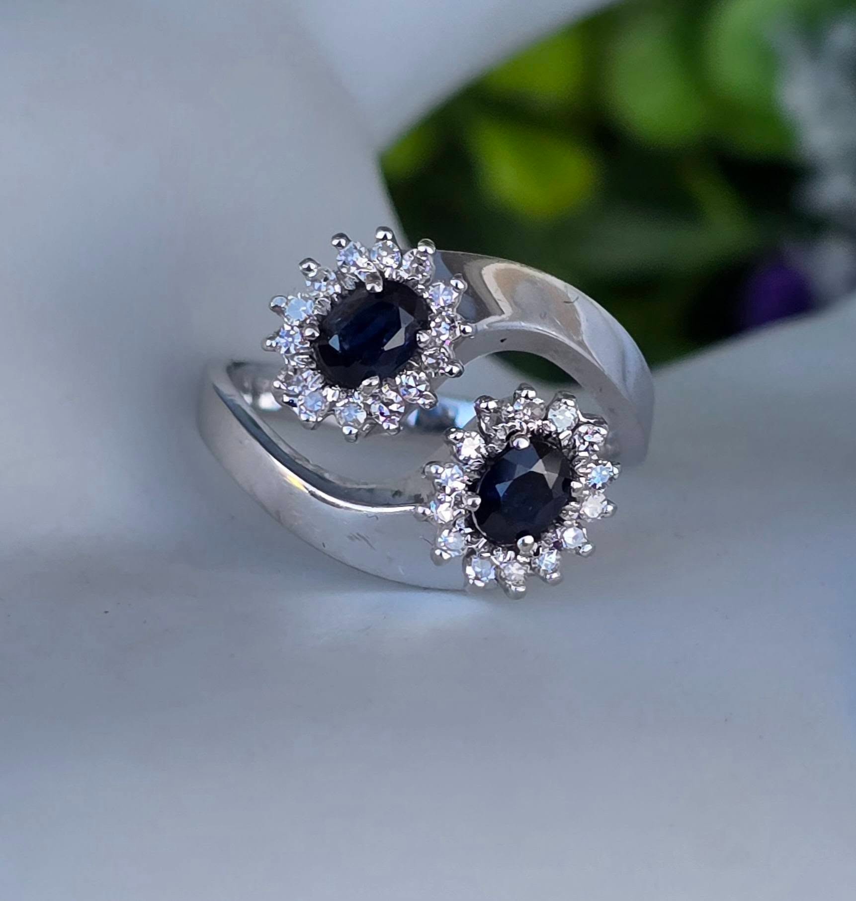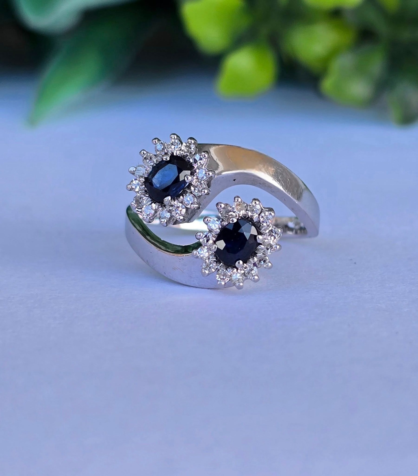 Inel vechi din aur de 14K, cu 2 safire și 28 diamante naturale.