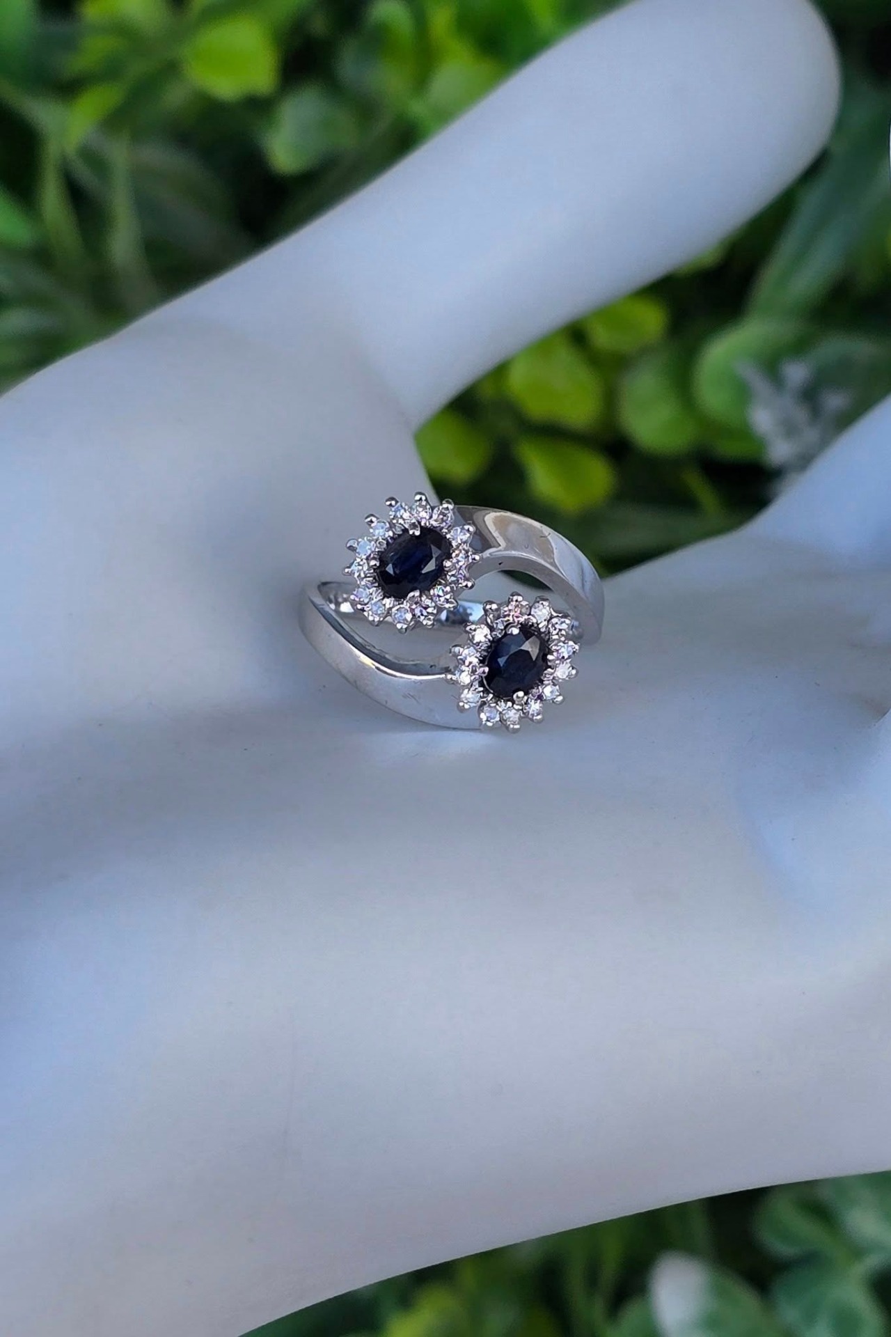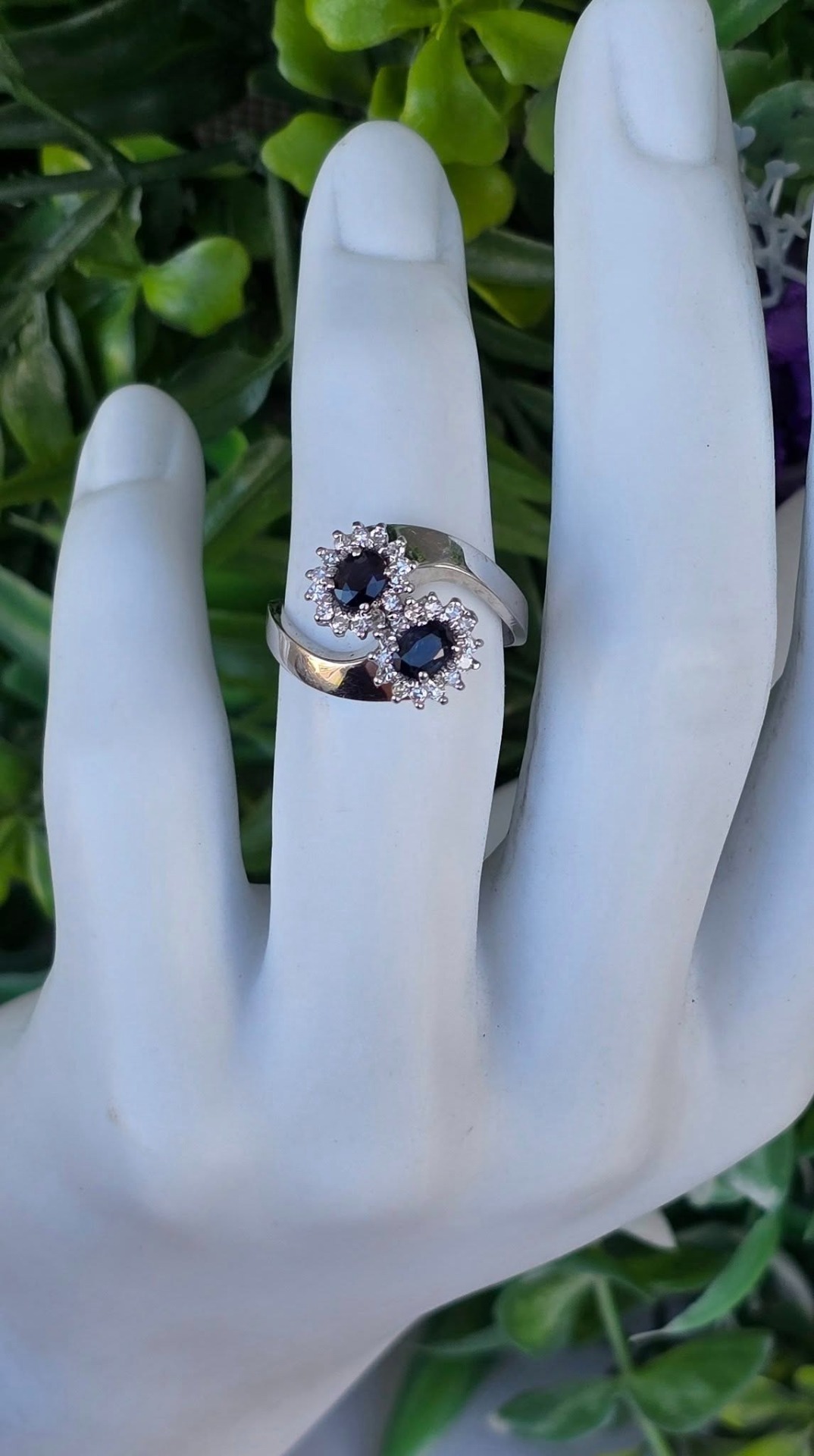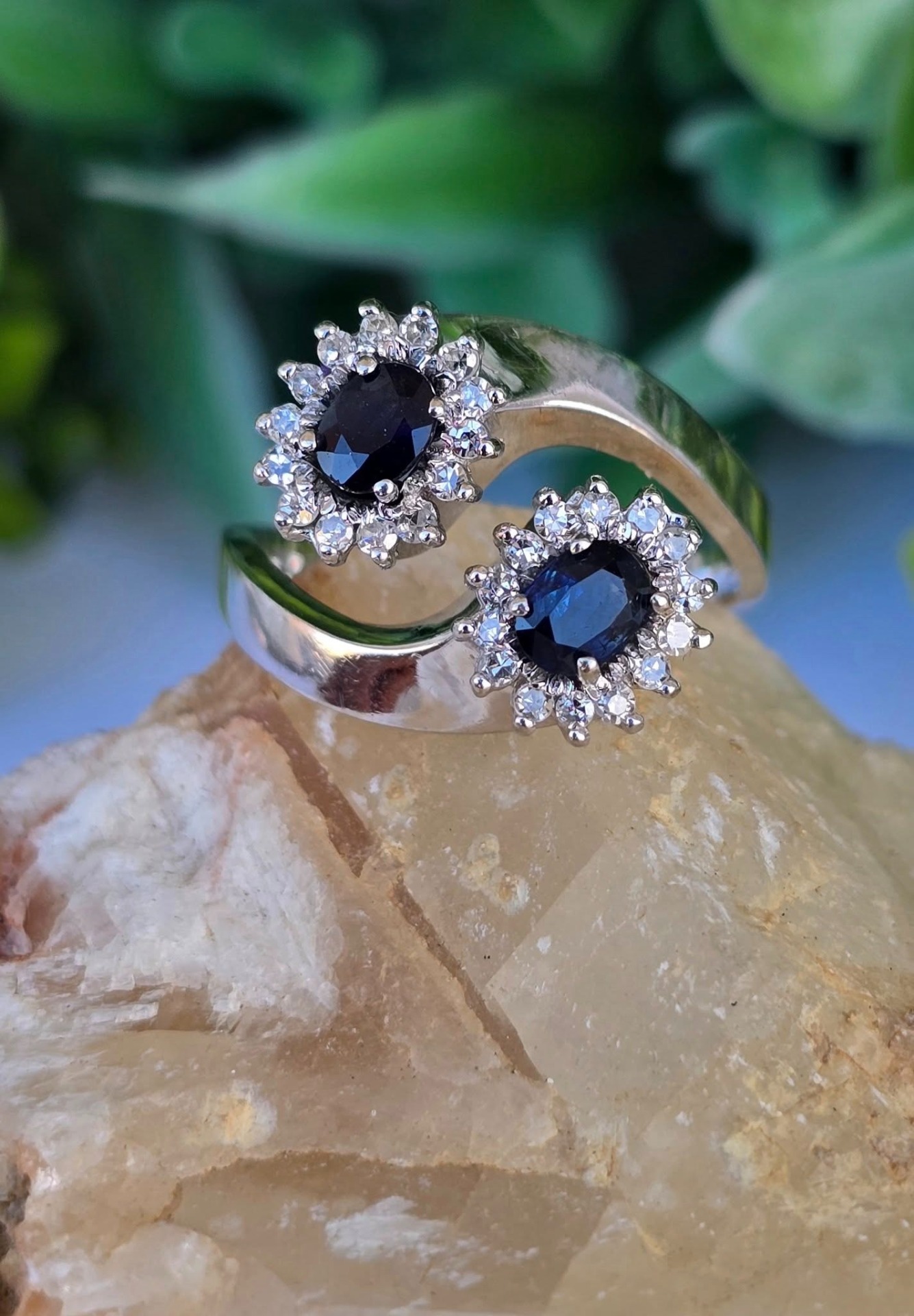 Inel vechi din aur de 14K, cu 2 safire și 28 diamante naturale.