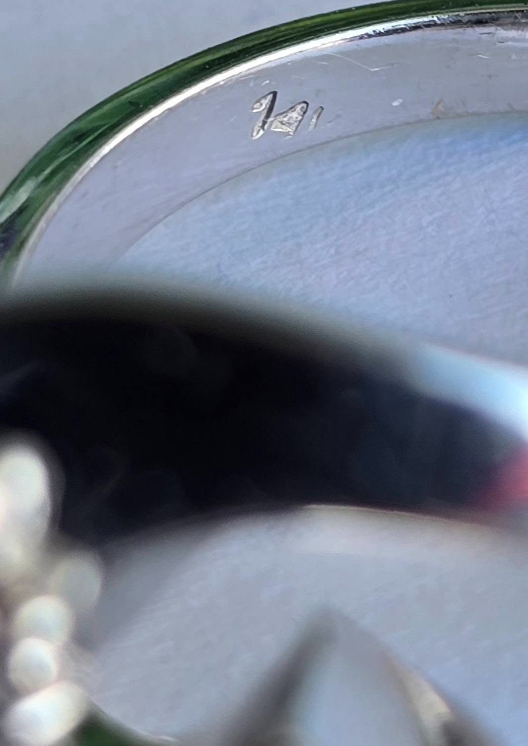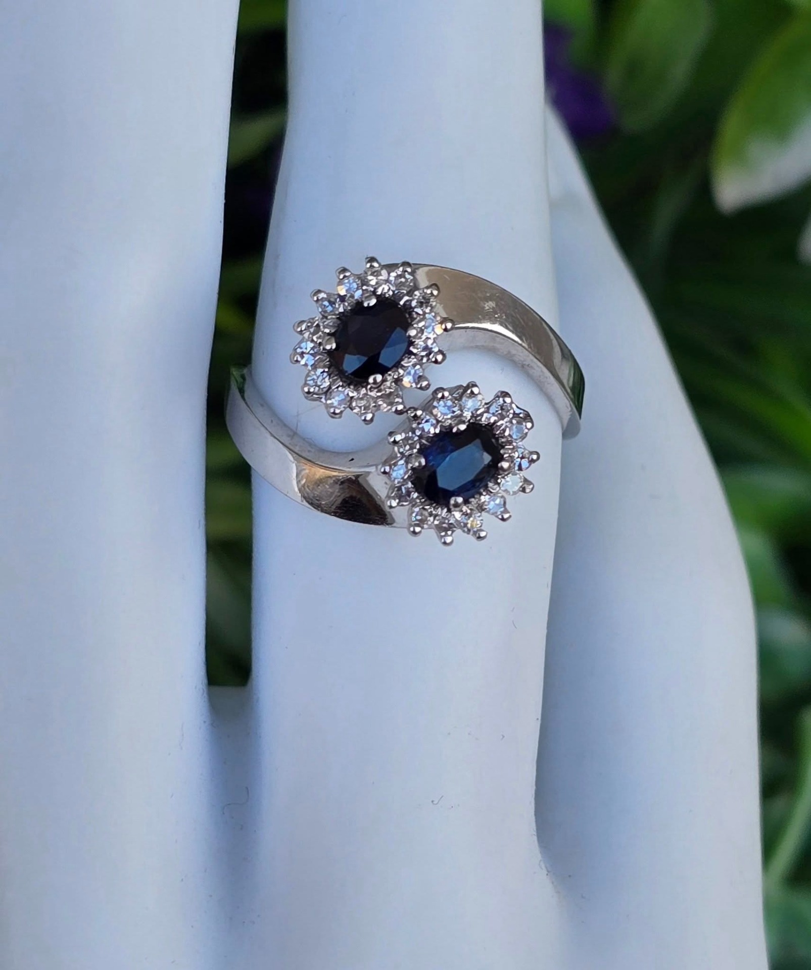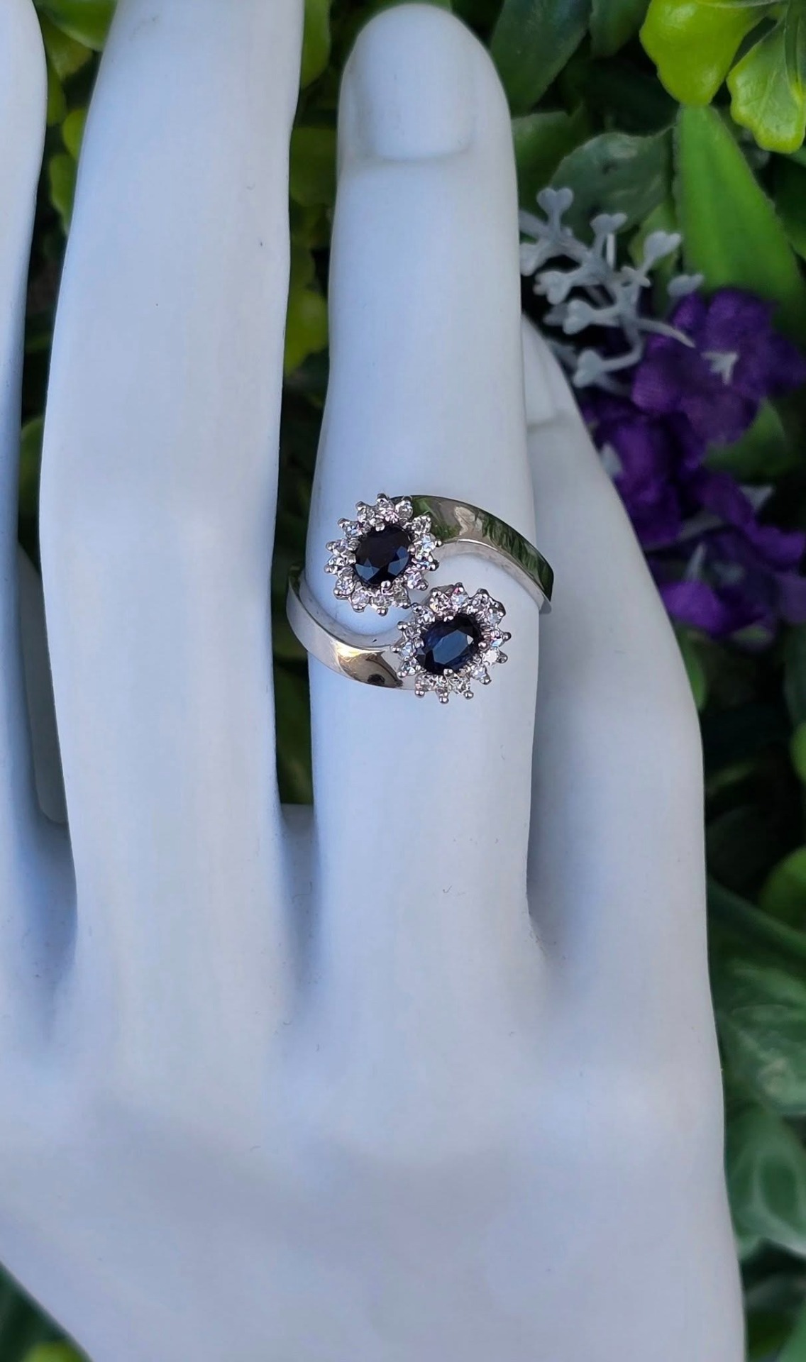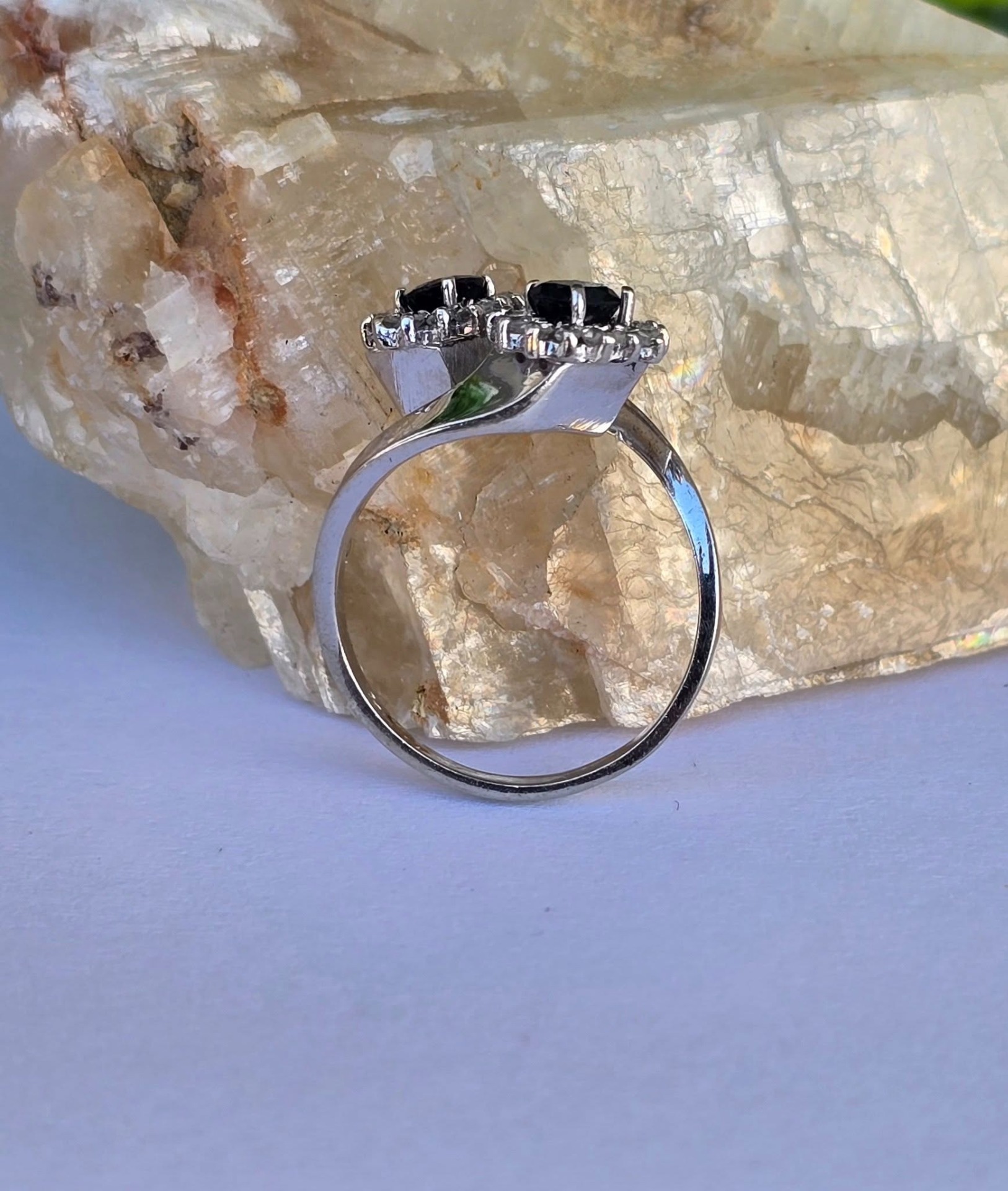 Inel vechi din aur de 14K, cu 2 safire și 28 diamante naturale.