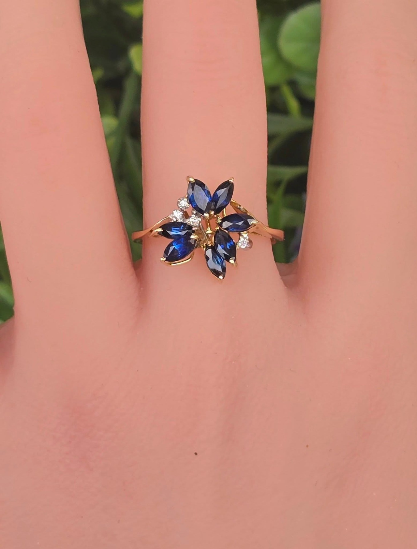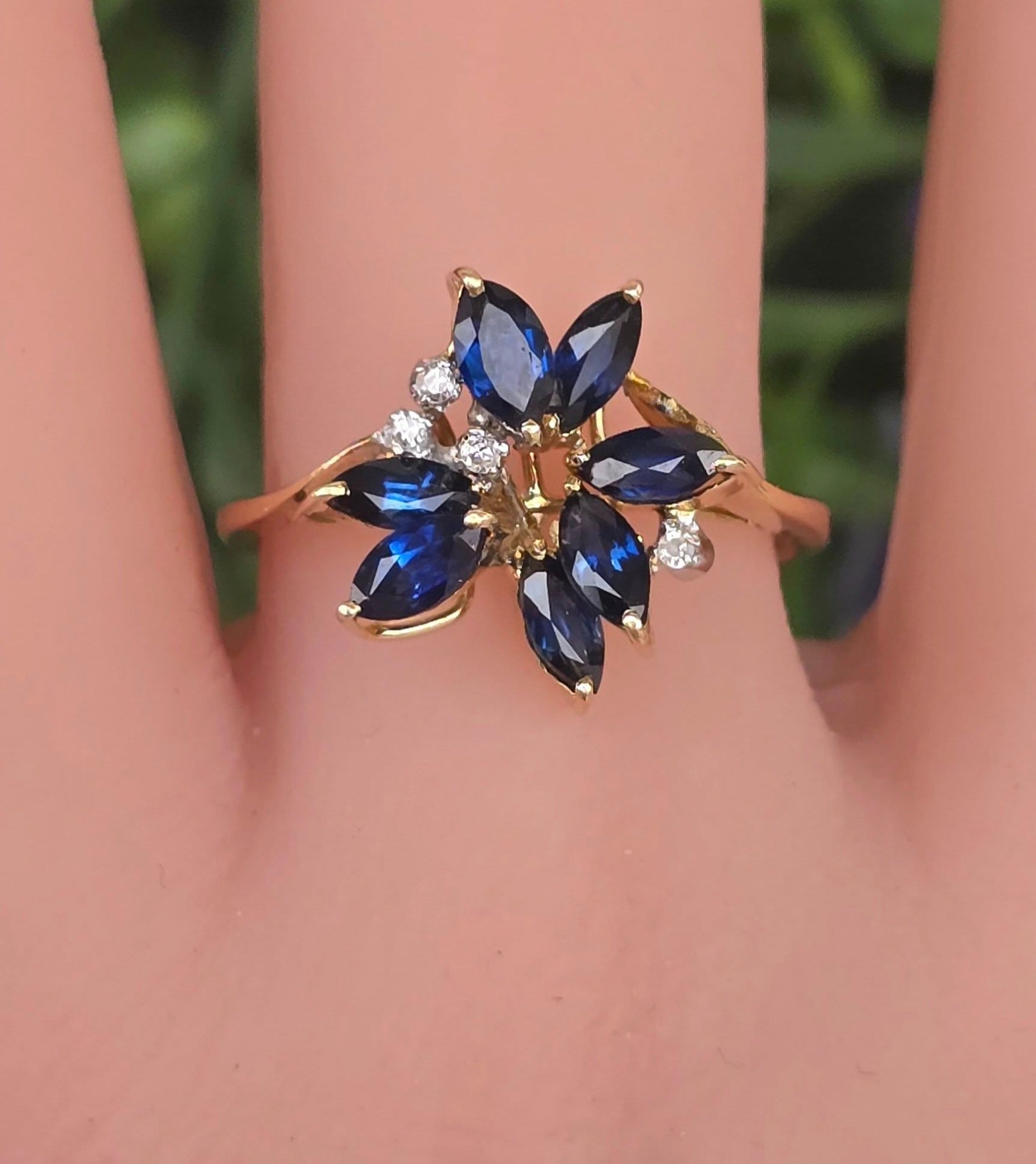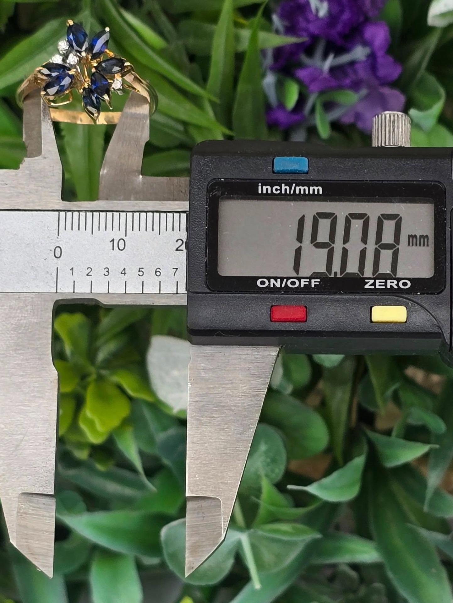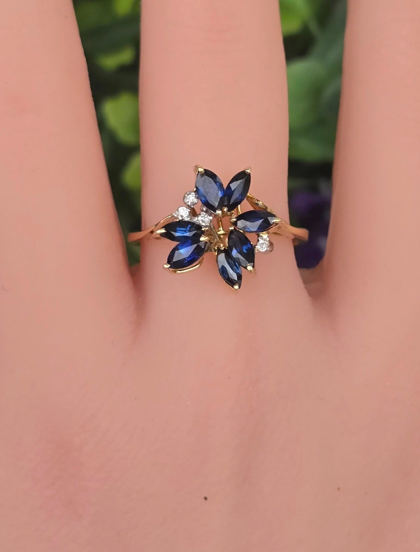 Inel vechi din aur de 14K, cu 7 safire și 4 diamante naturale.