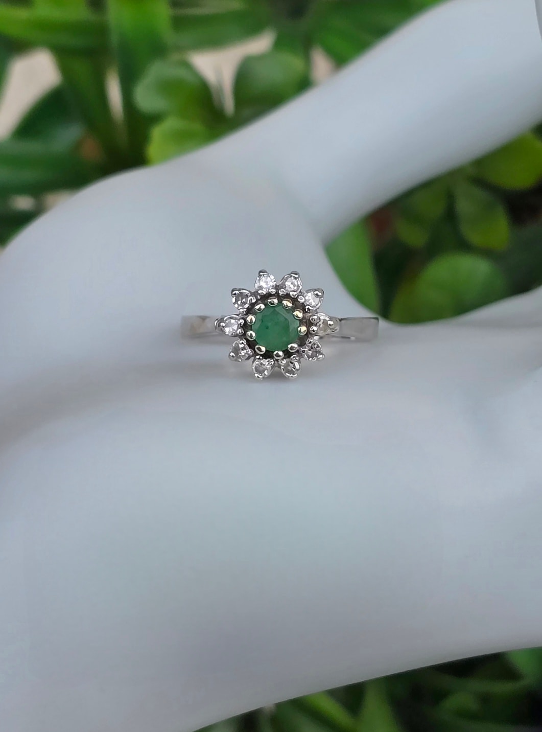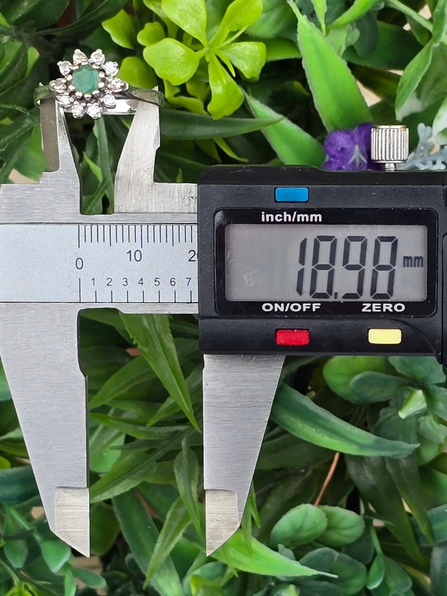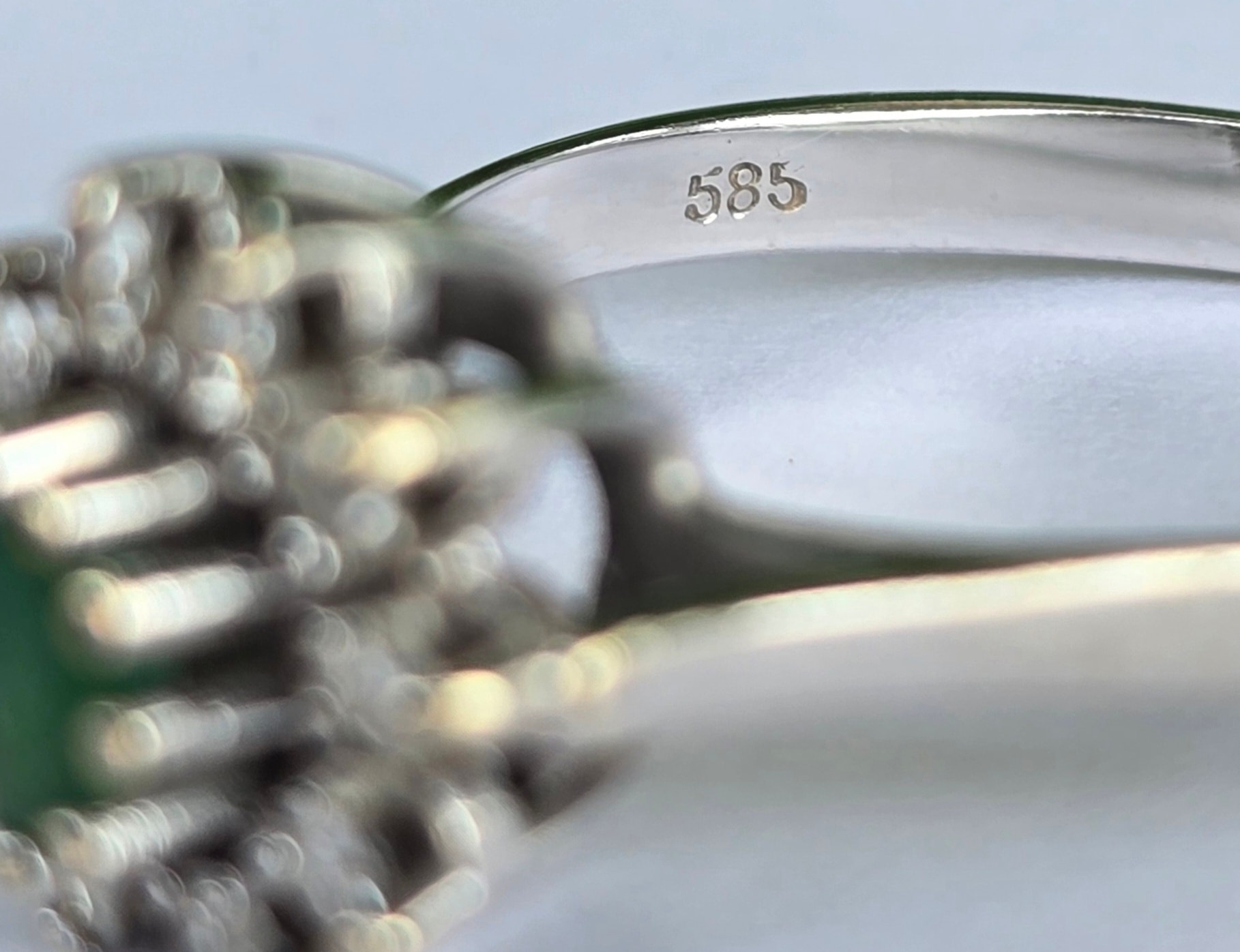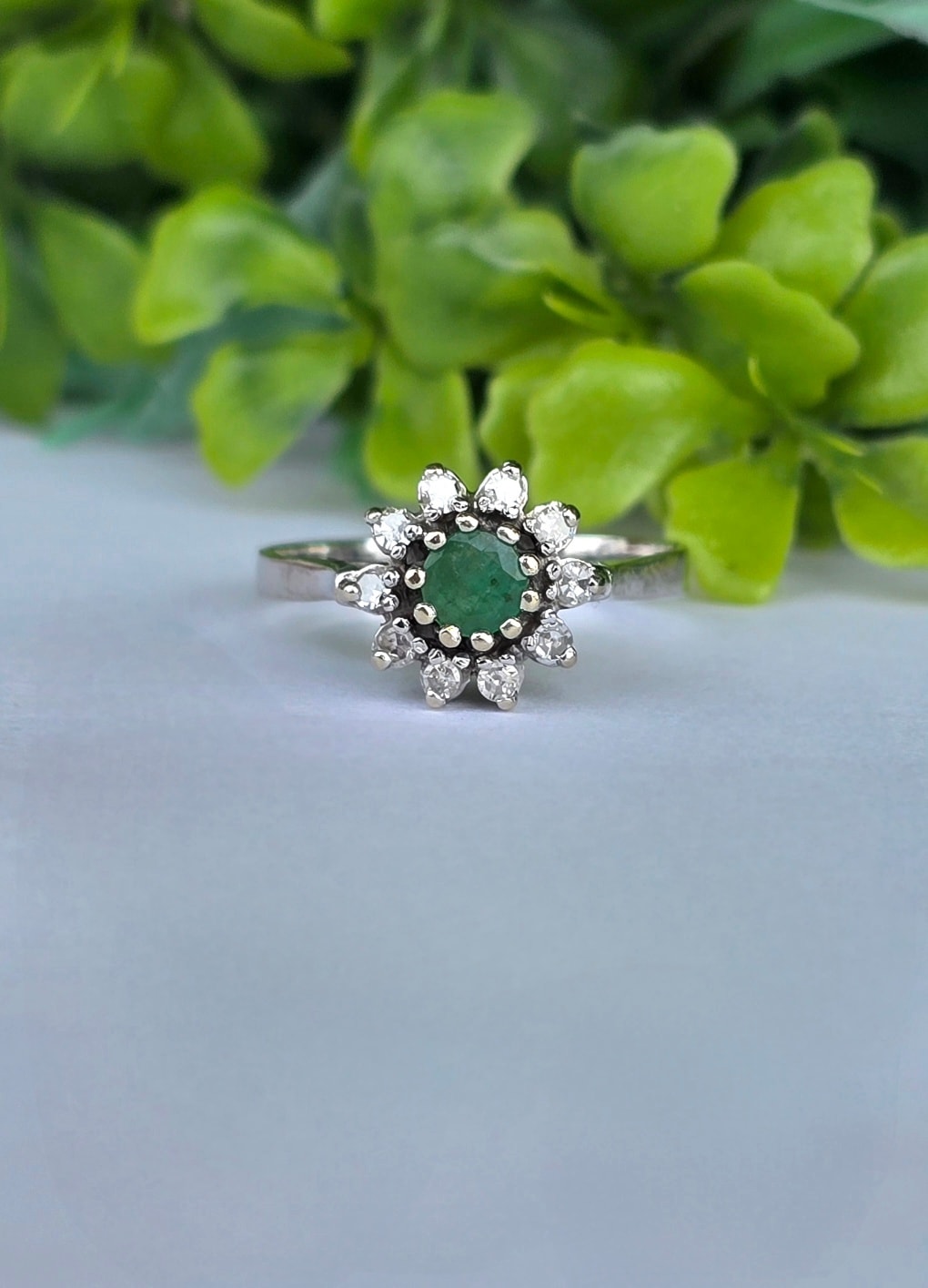 Inel vechi din aur de 14K, cu smarald și 10 diamante naturale.