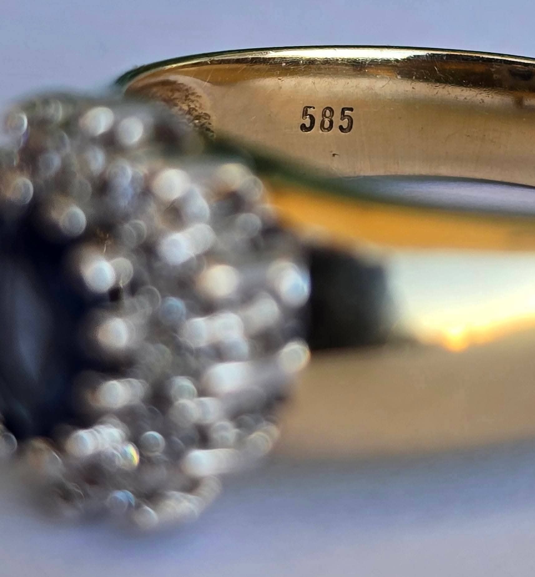 Prezintă marcaj 585 pentru puritate aur de 14K.