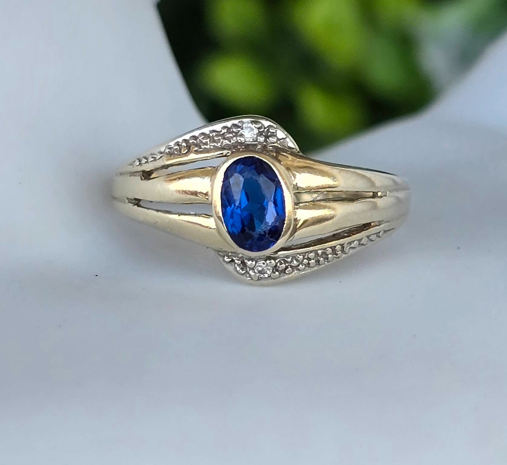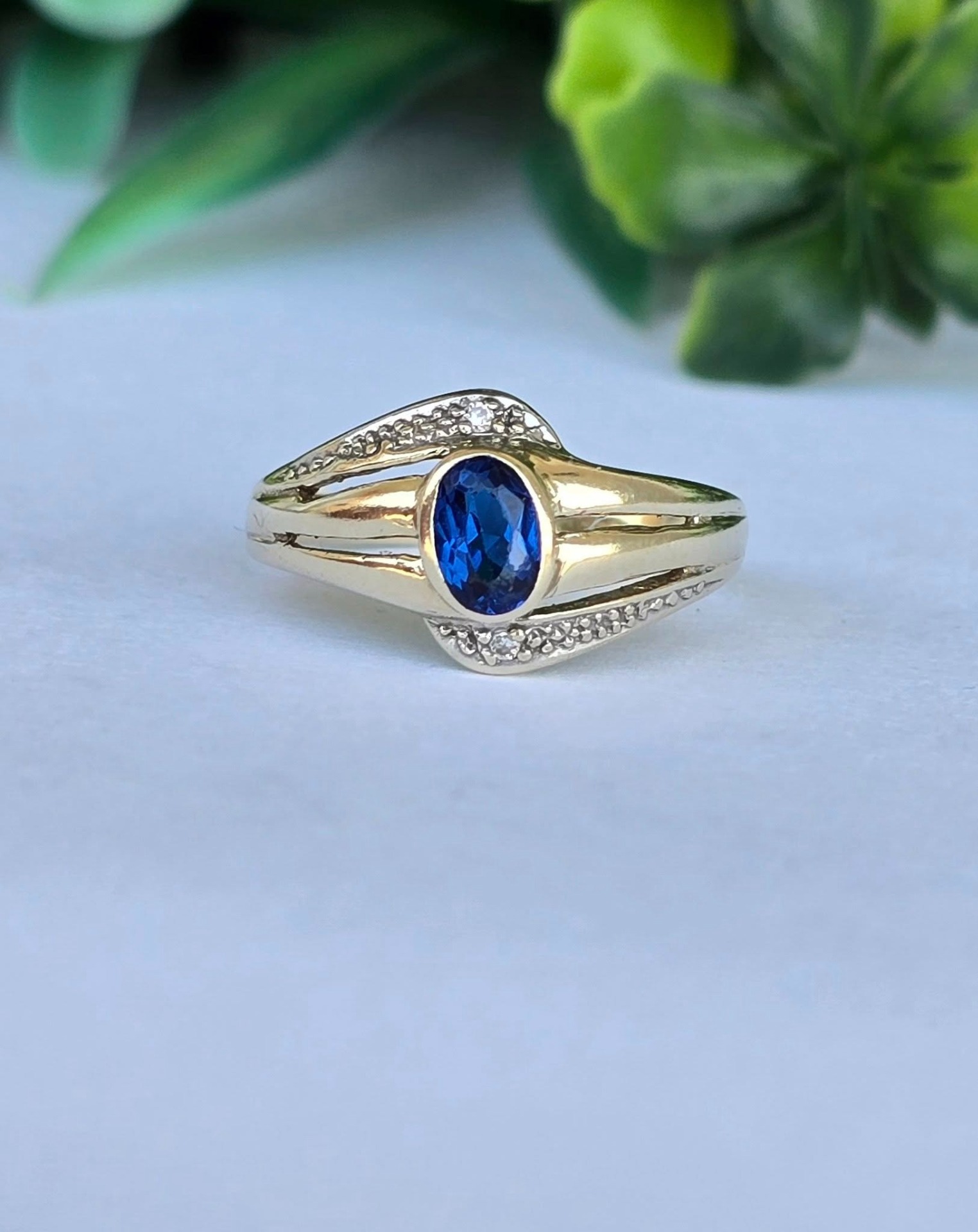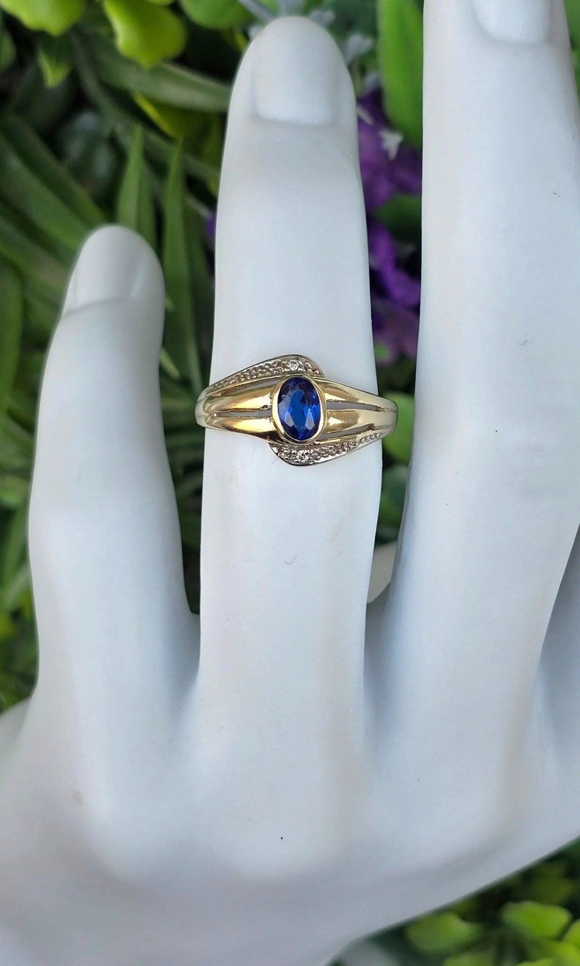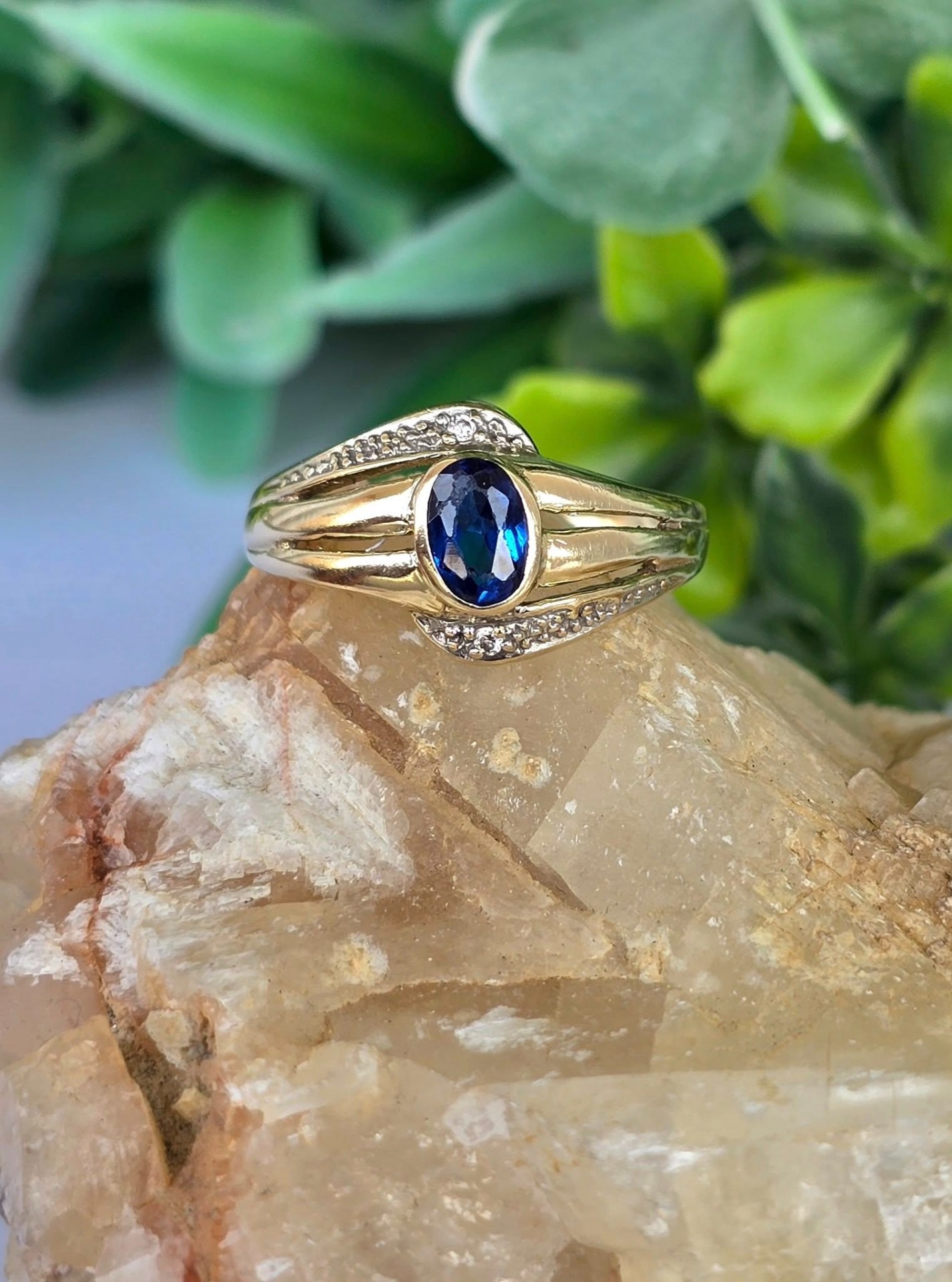 Inel vechi din aur de 14K, cu un superb spinel "cobalt blue" natural.