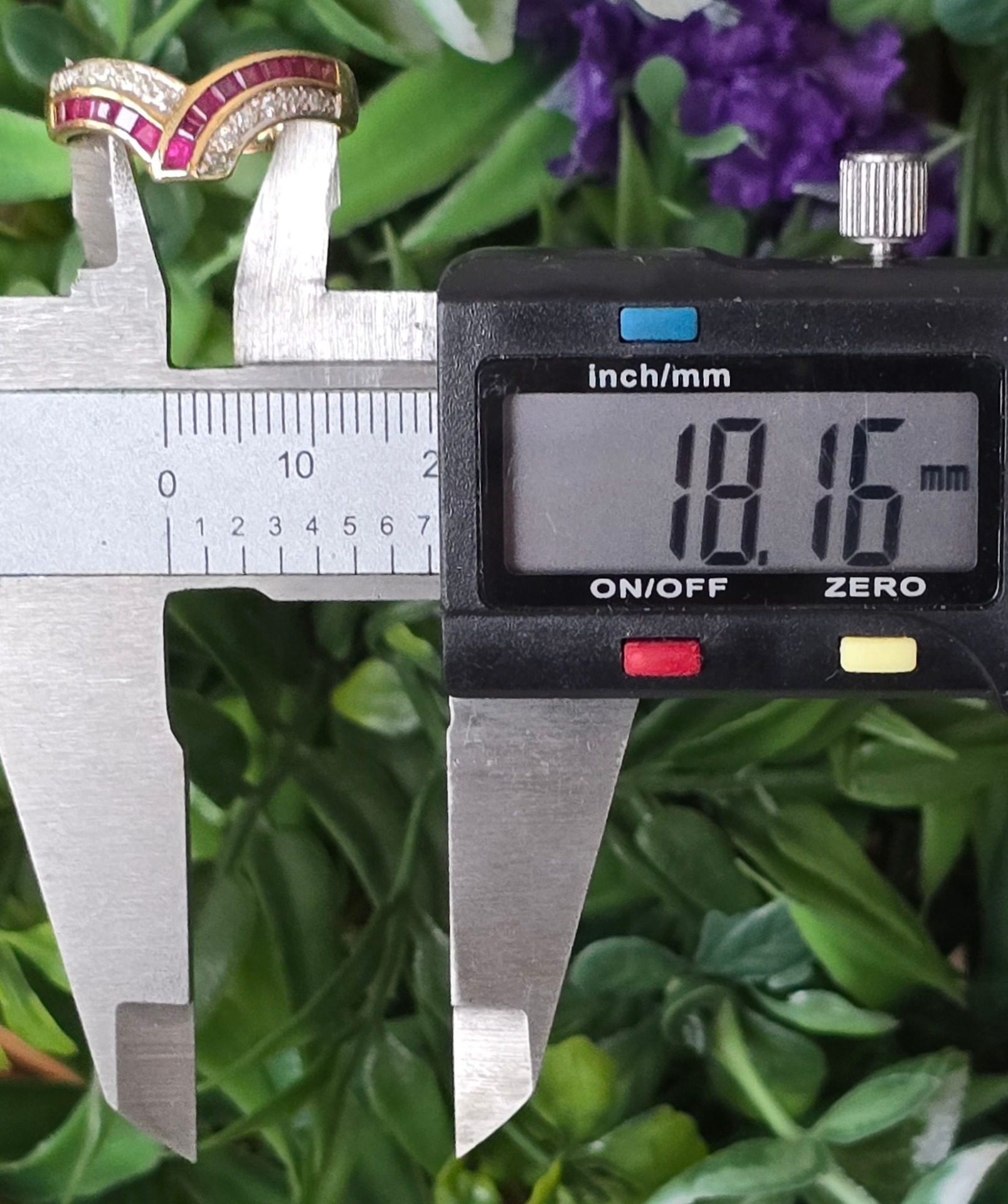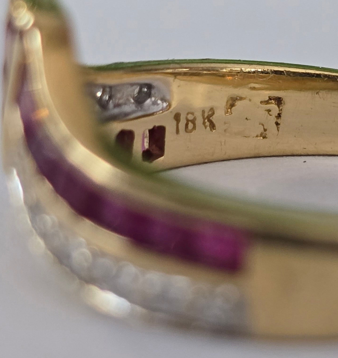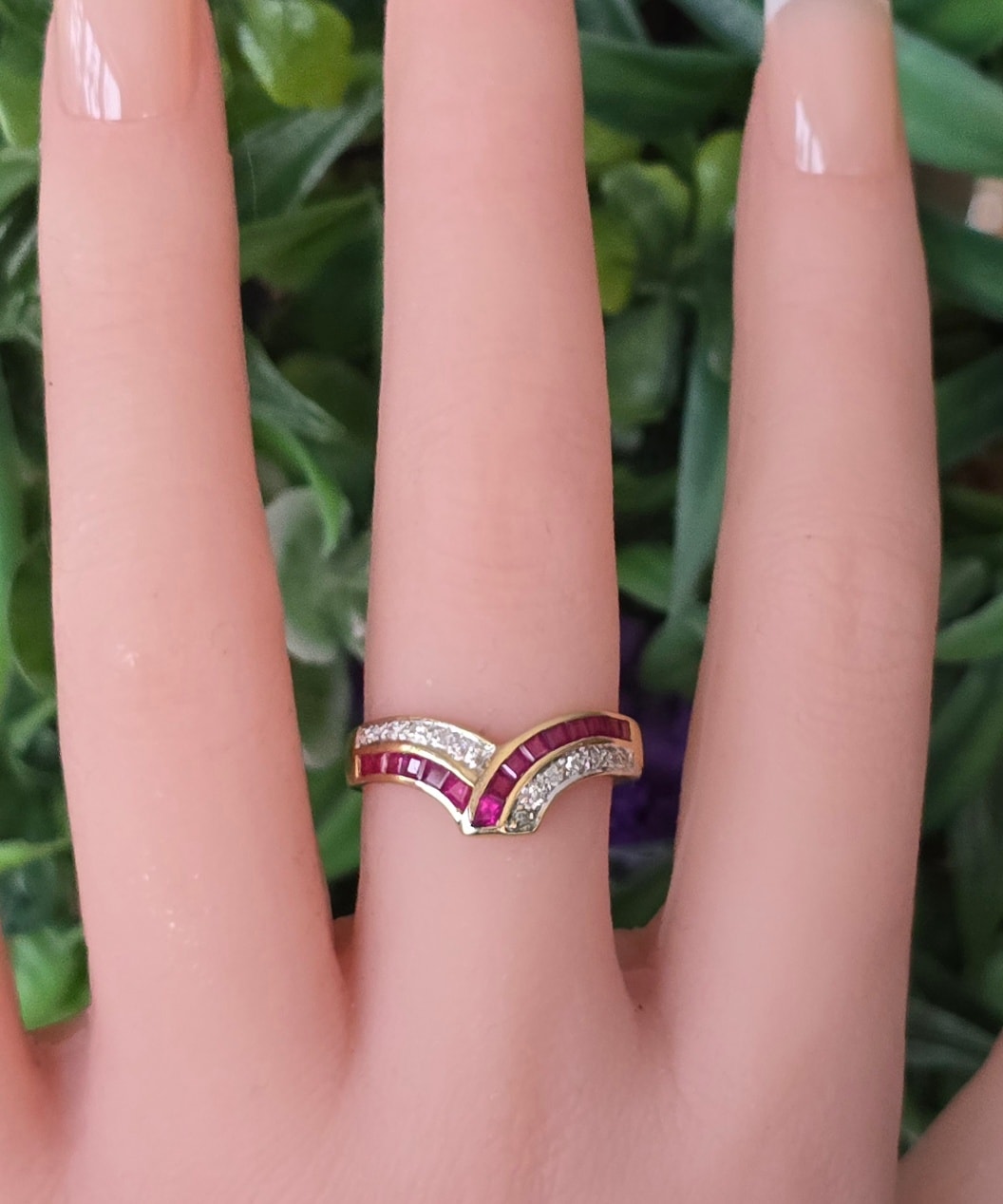 Inel vechi din aur de 18K, cu 13 diamante și 15 rubine naturale.