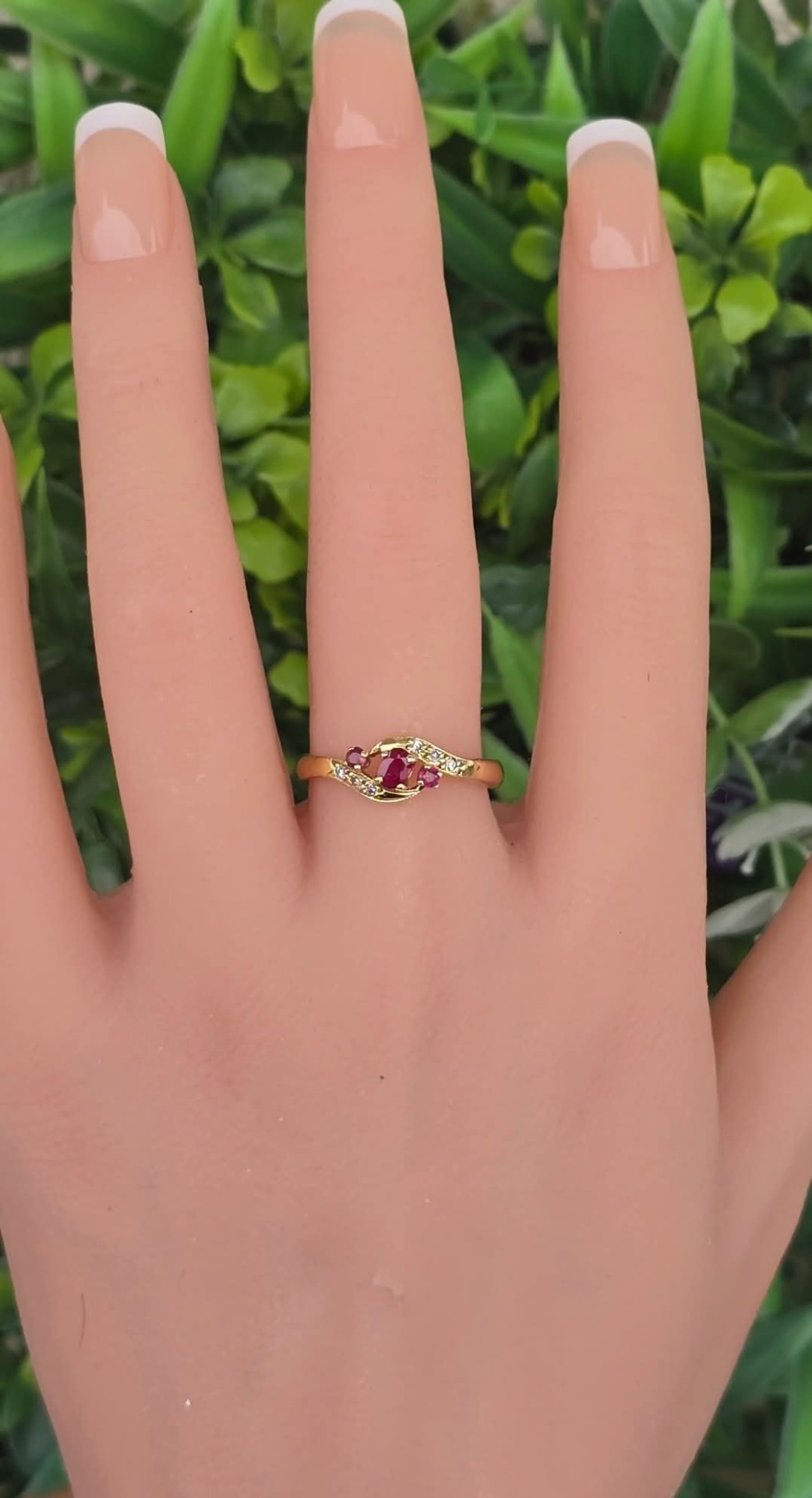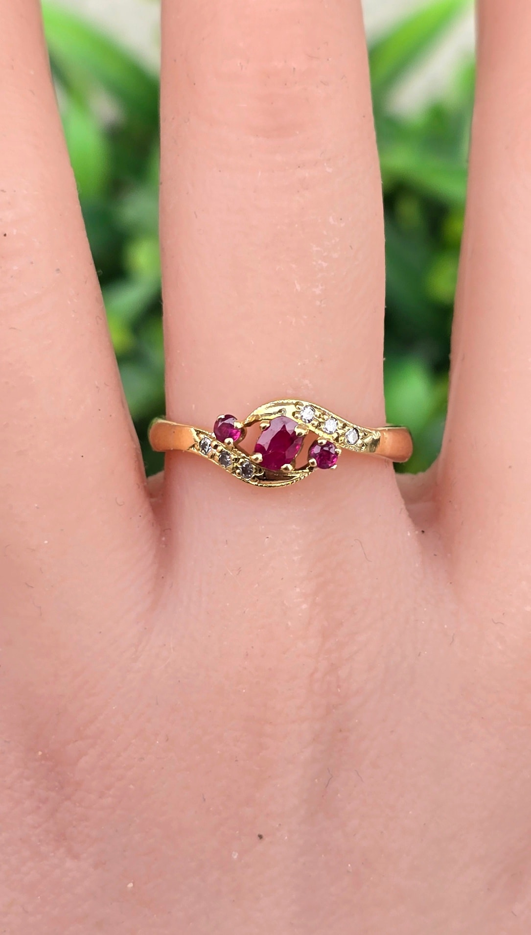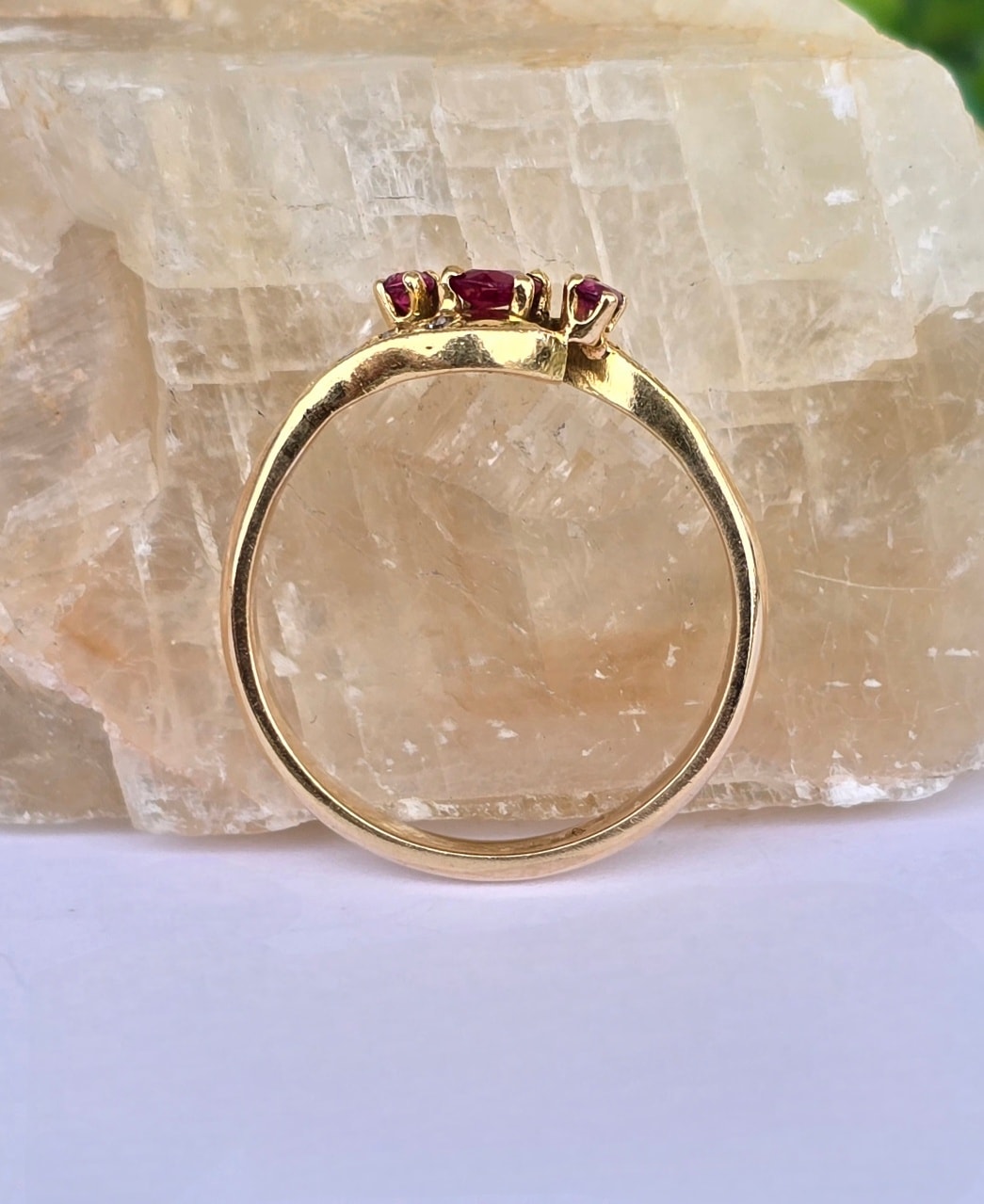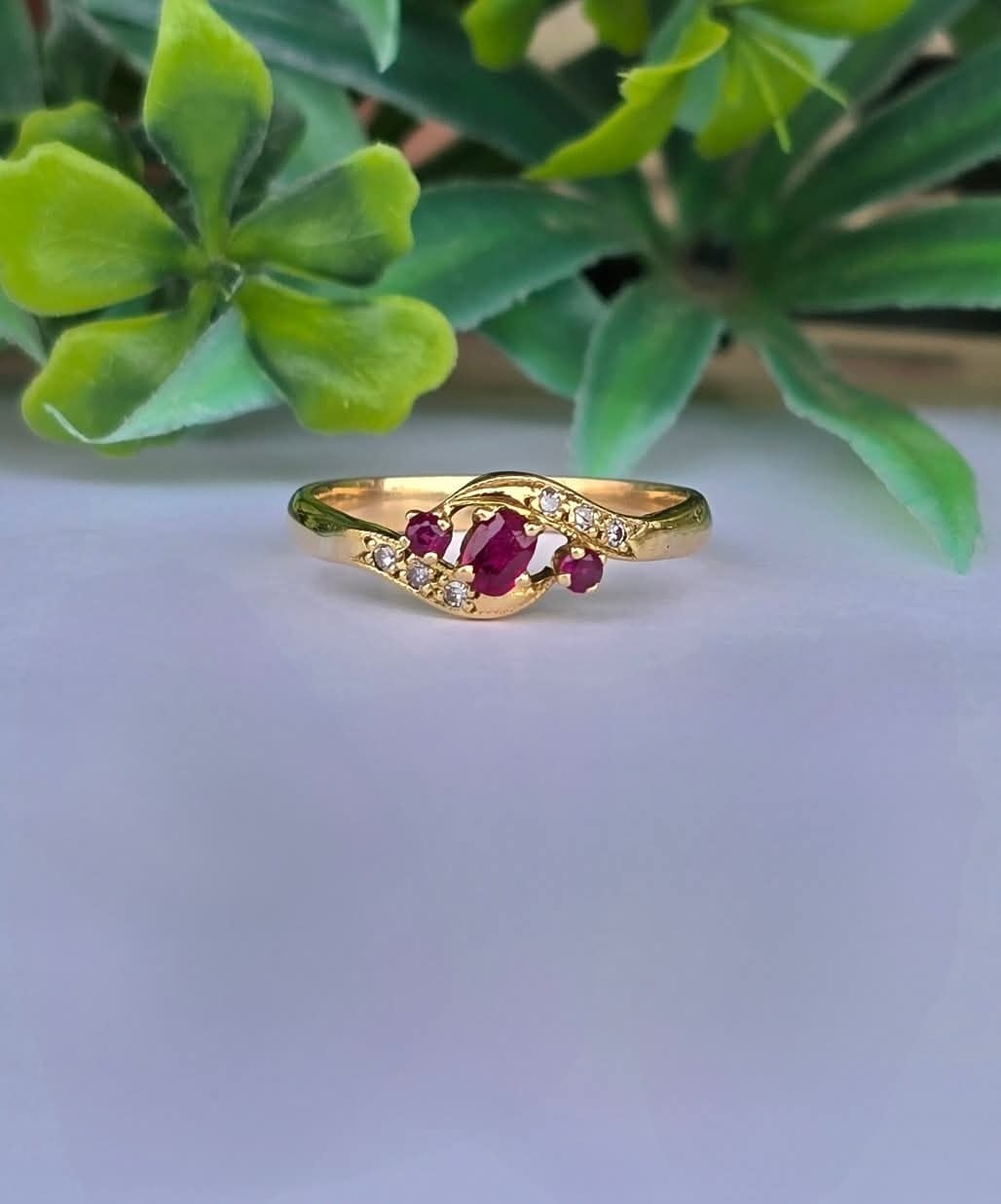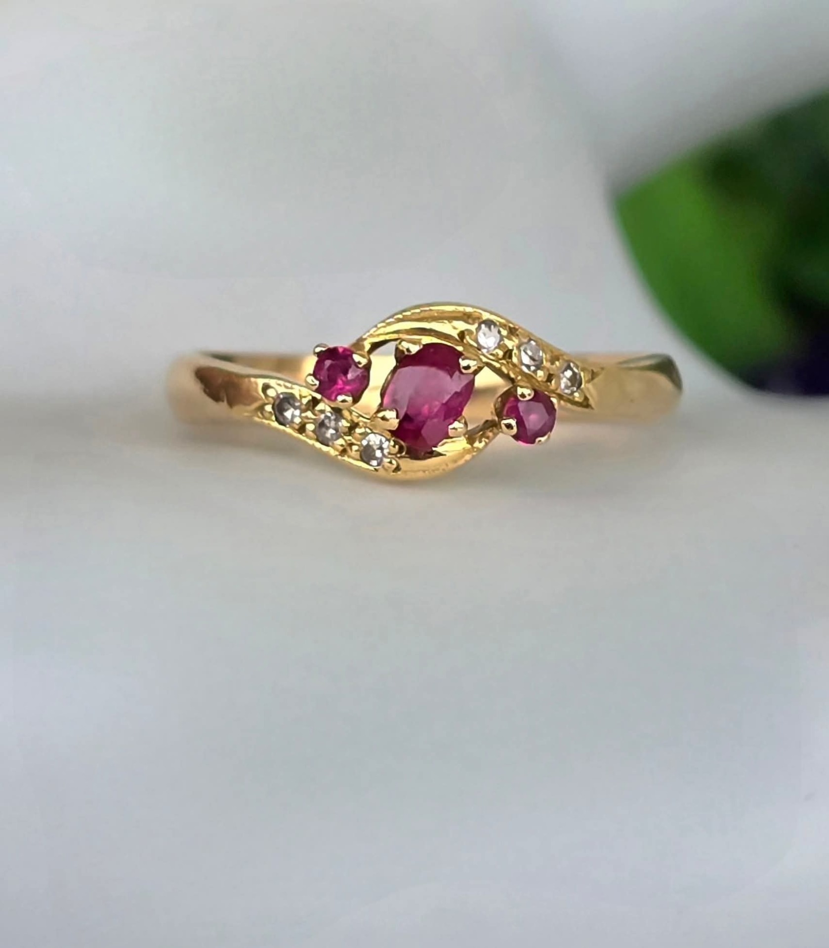 Inel vechi din aur de 18K, cu 3 rubine și 6 diamante naturale.