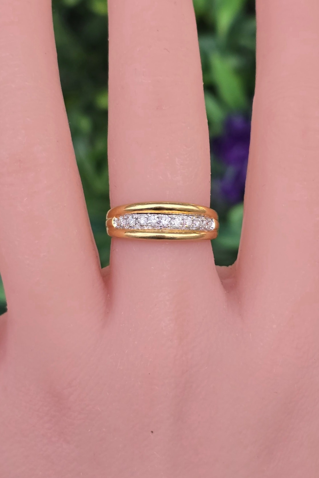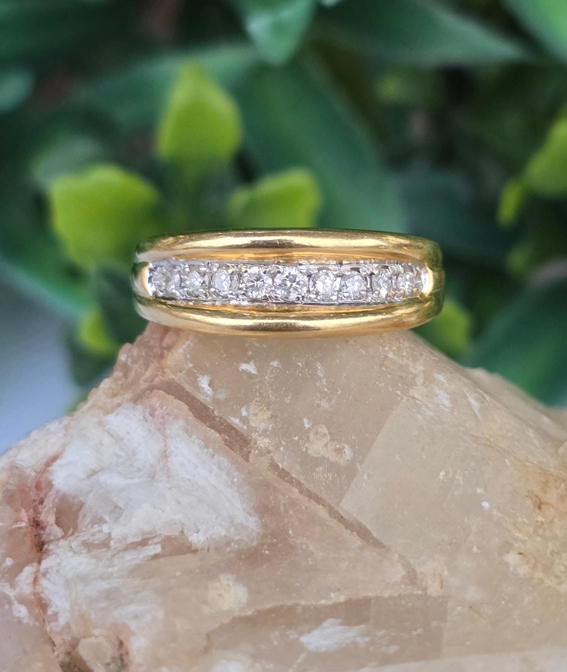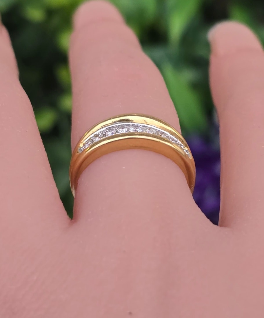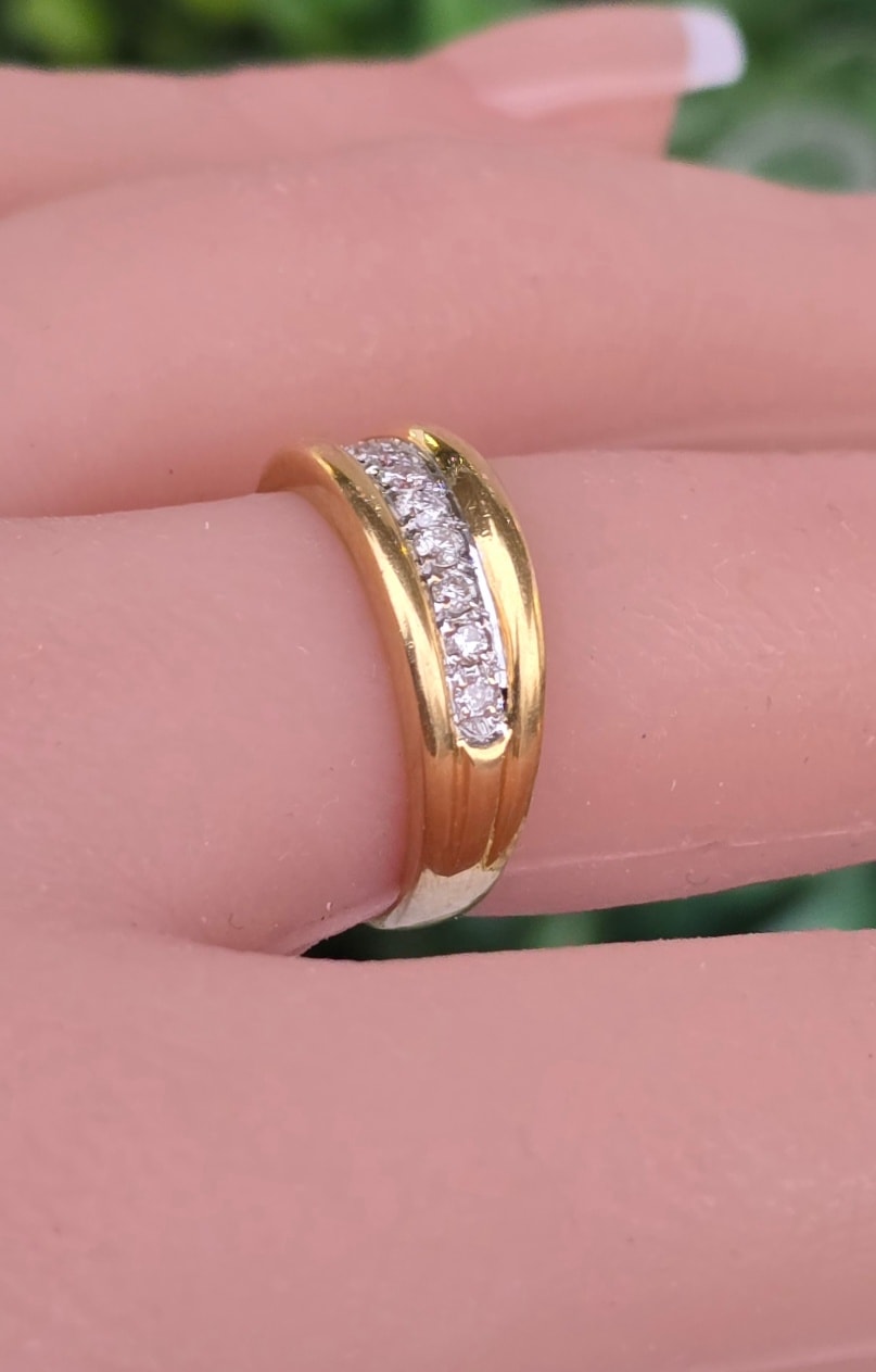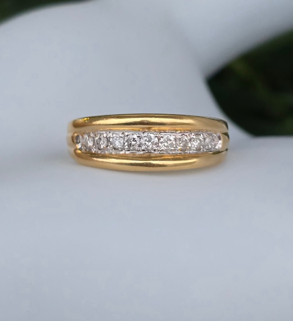 Inel vechi din aur de 18K, cu 9 diamante naturale.