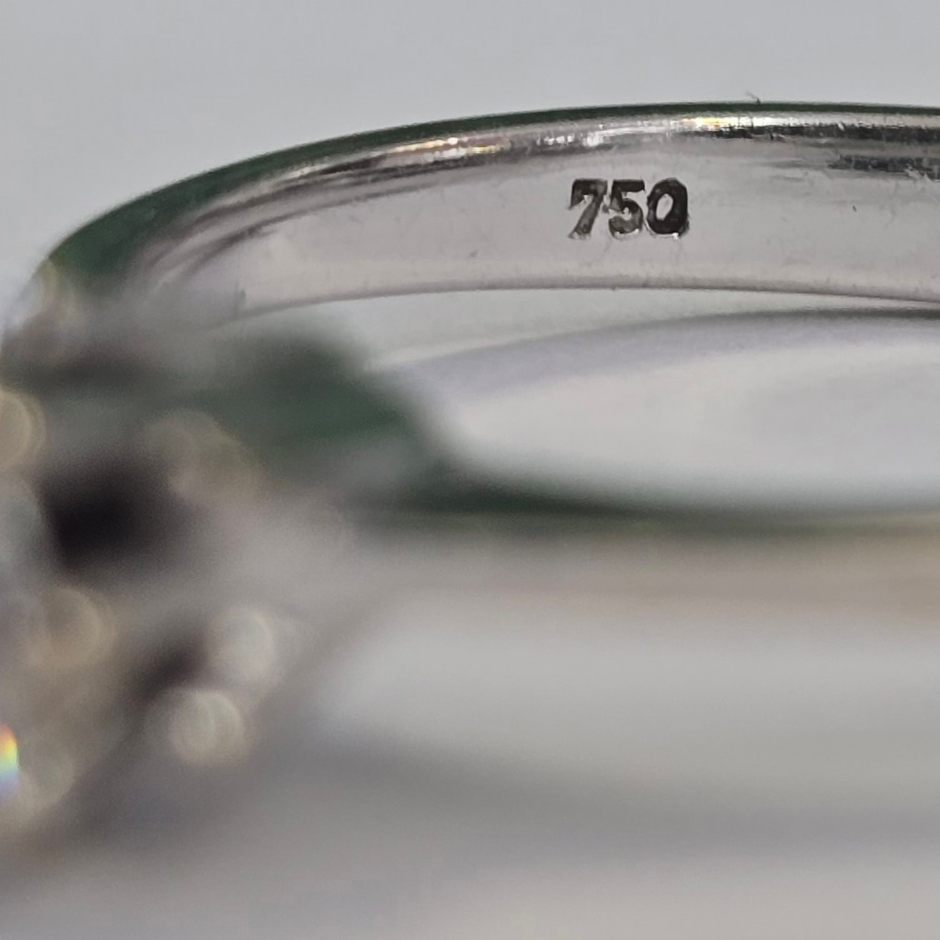 Prezintă marcaj 750 pentru puritate aur de 18K.