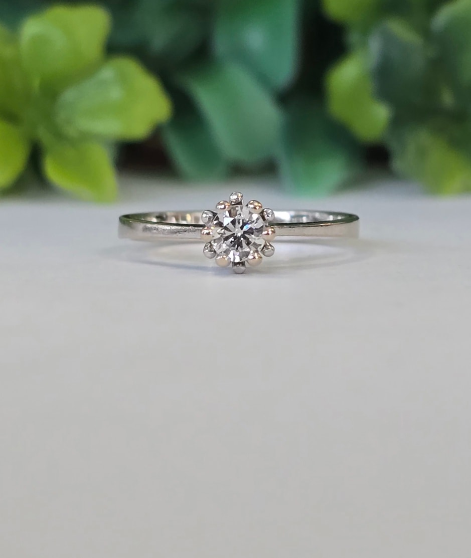 Inel vechi din aur de 18K, cu un superb diamant natural (0.25ct).