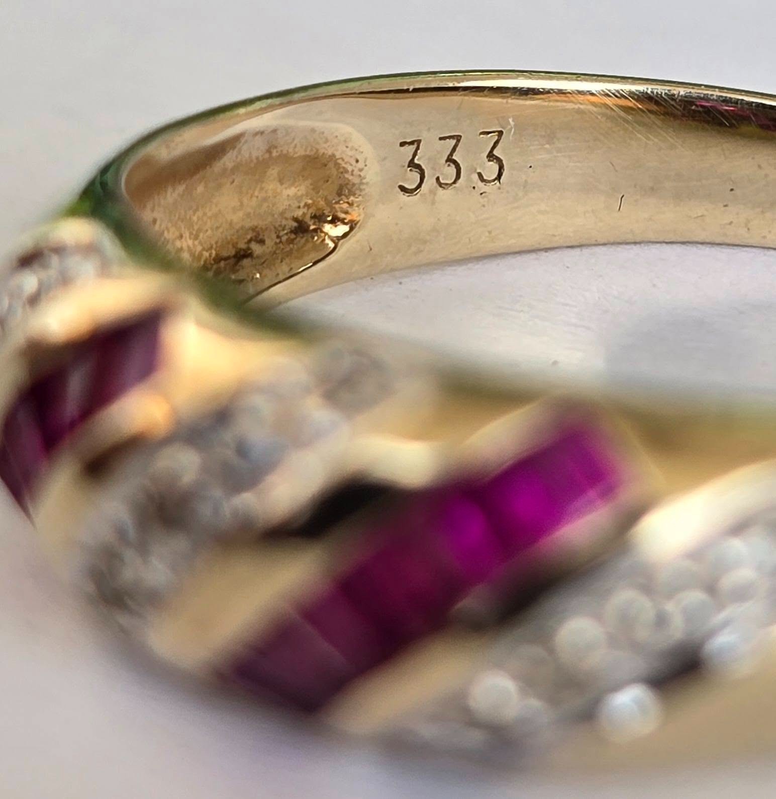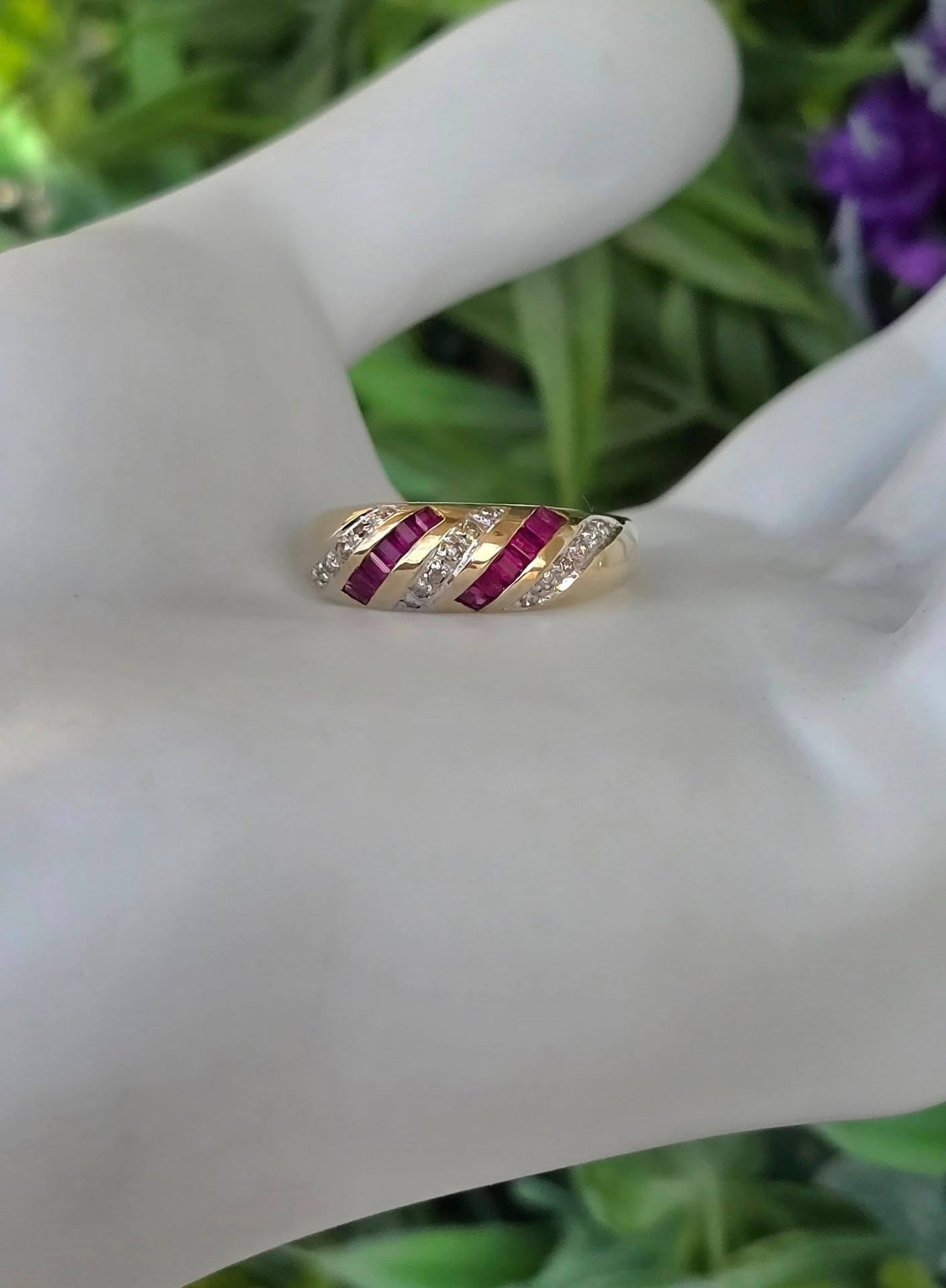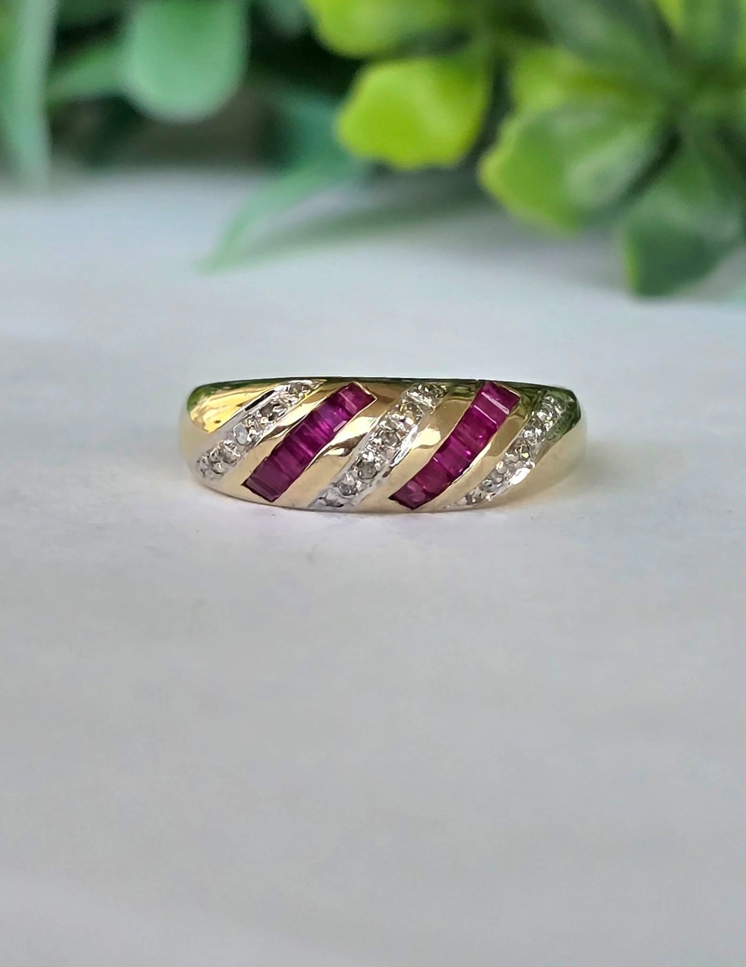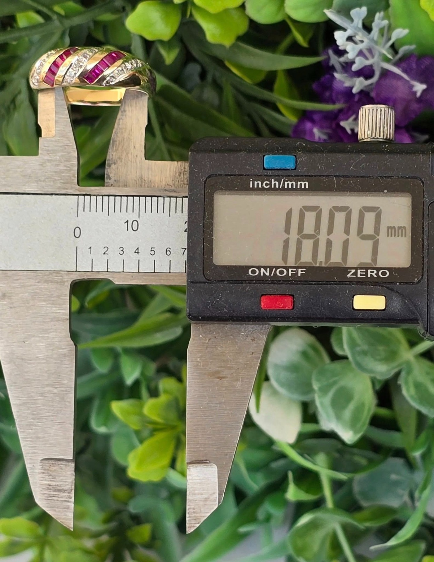 Inel vechi din aur de 8K, cu 12 rubine și 18 diamante naturale.