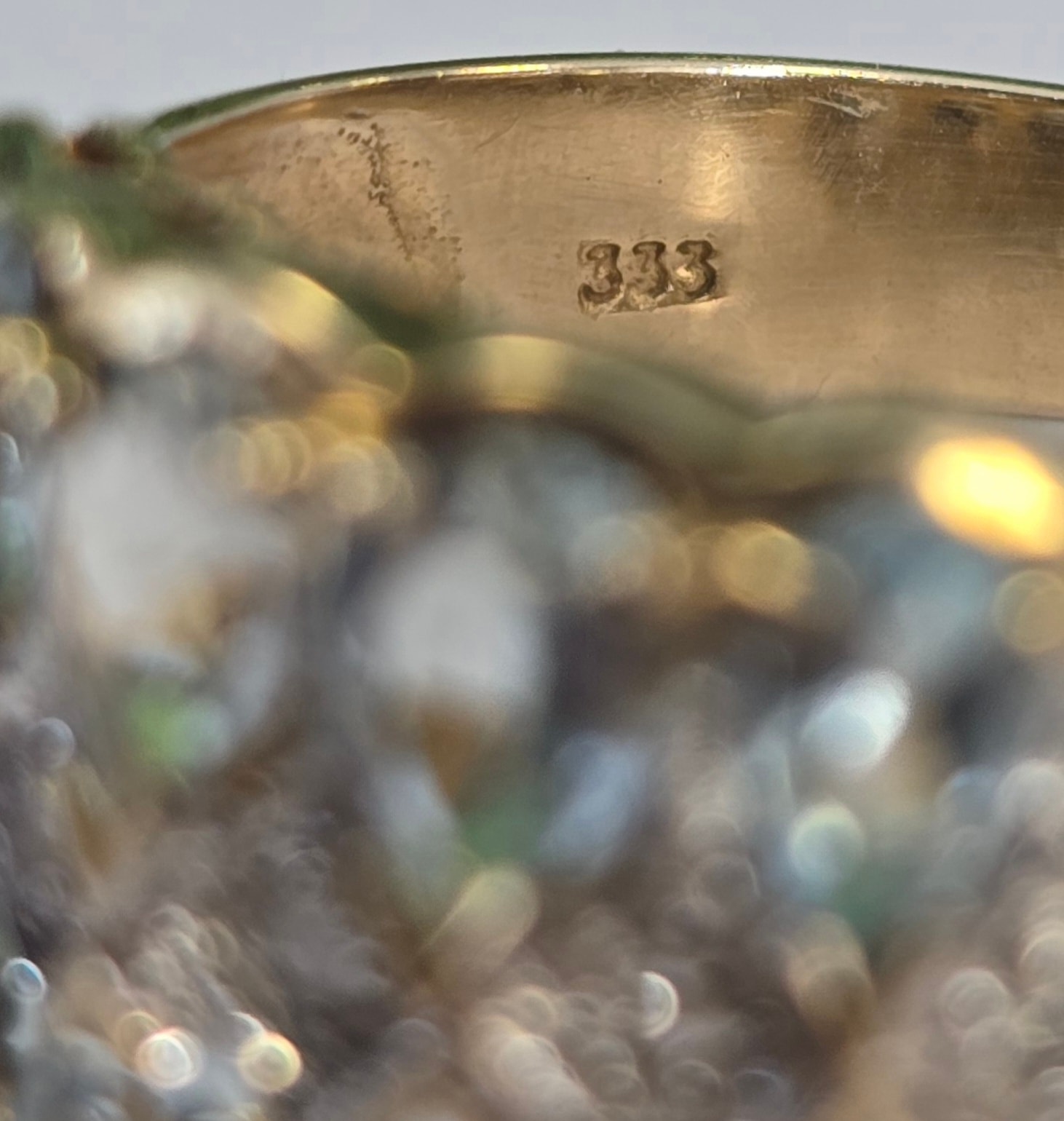 Prezintă marcaj 333 pentru puritate aur de 8K.