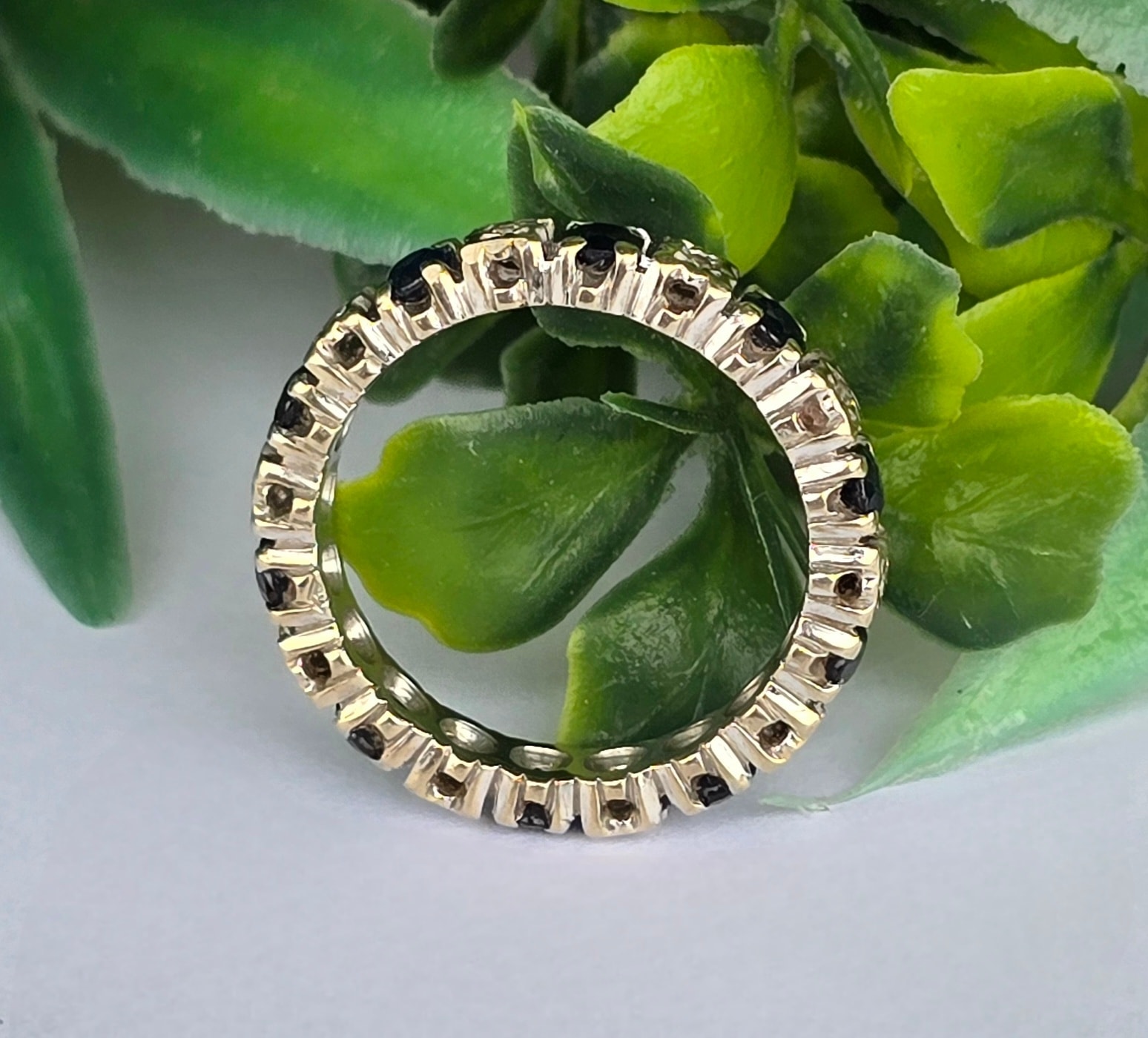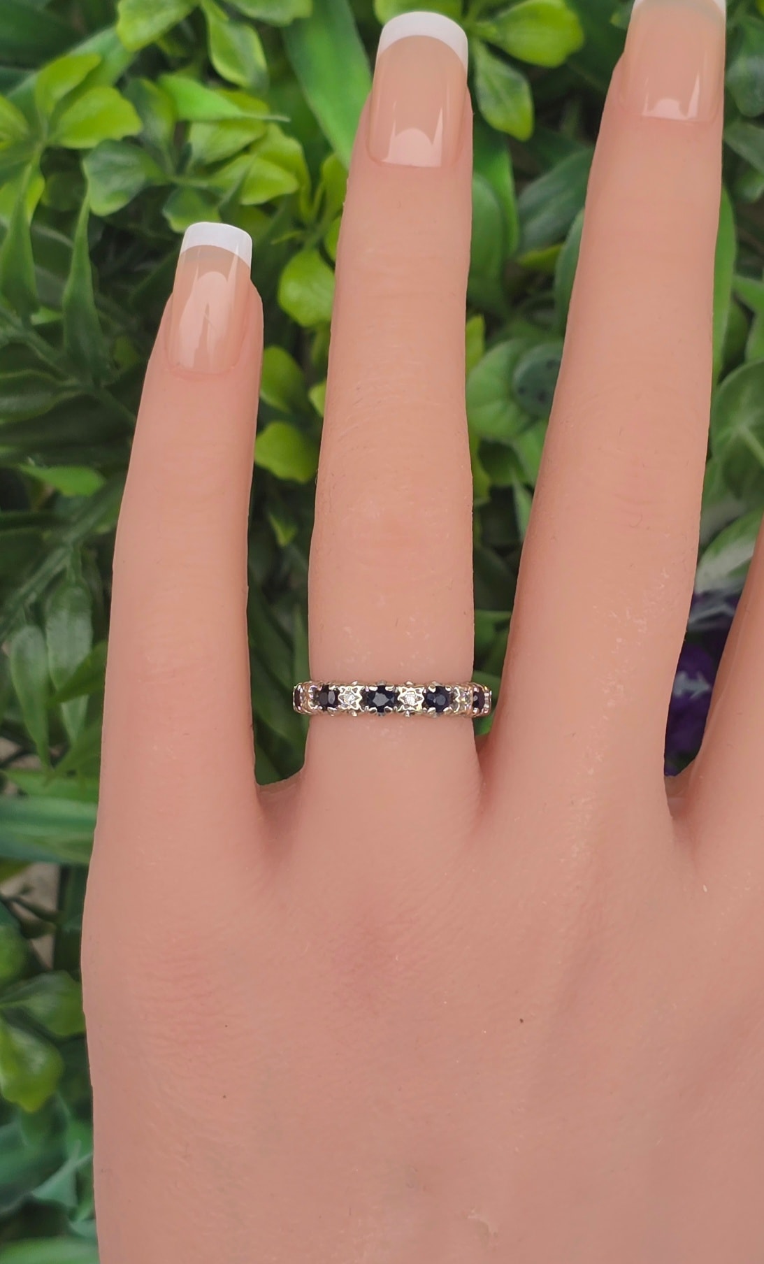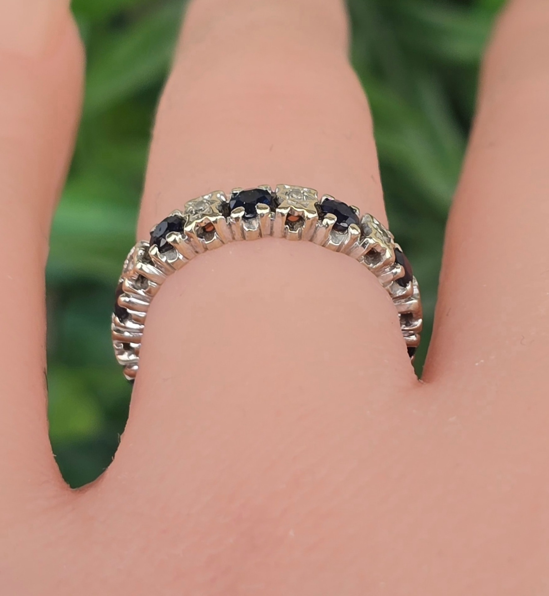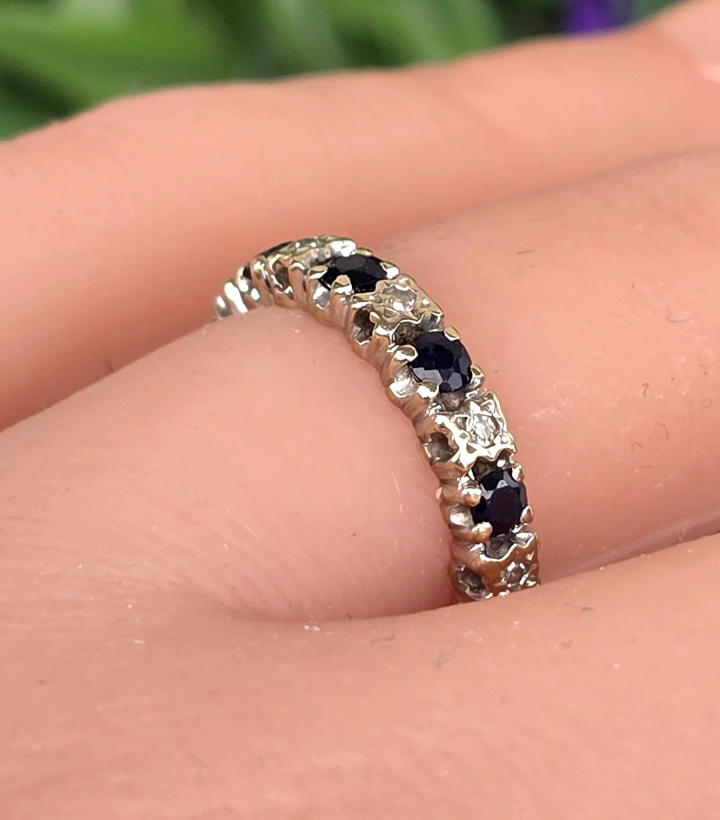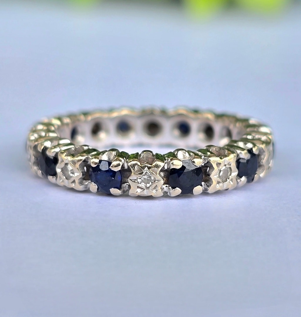 Inel vechi "eternity" superb, din aur de 18K, cu 10 diamante și 10 safire naturale.
