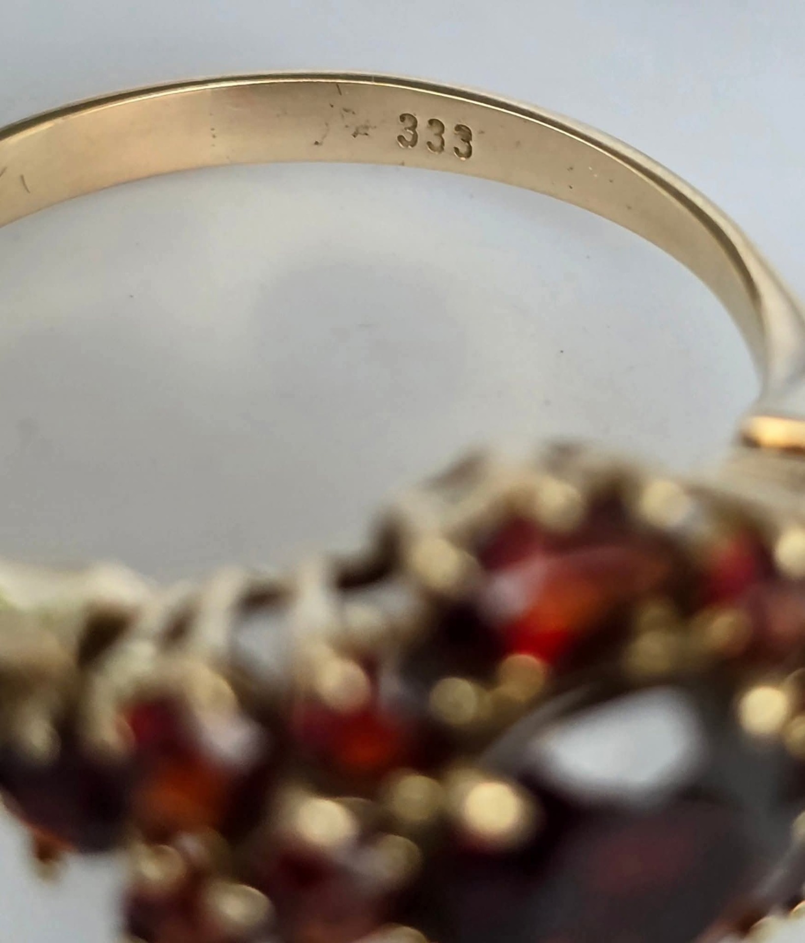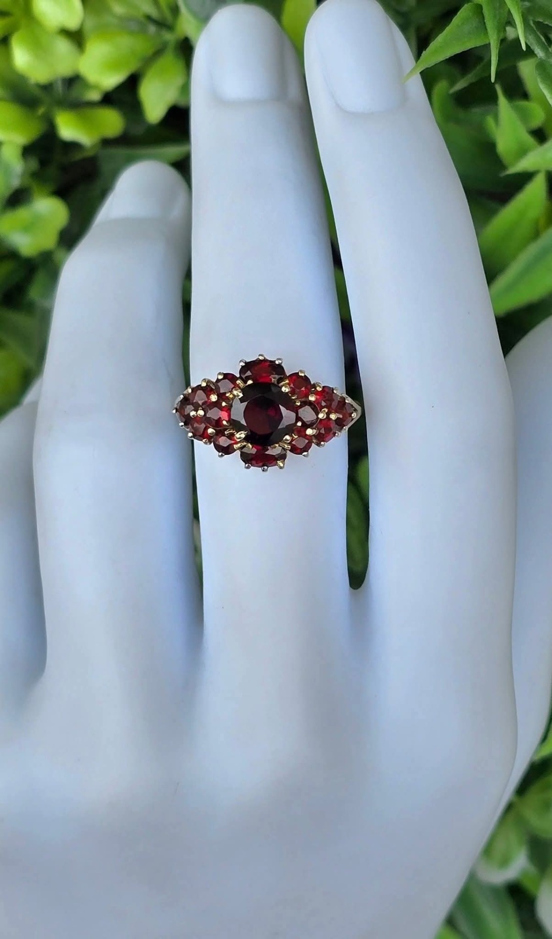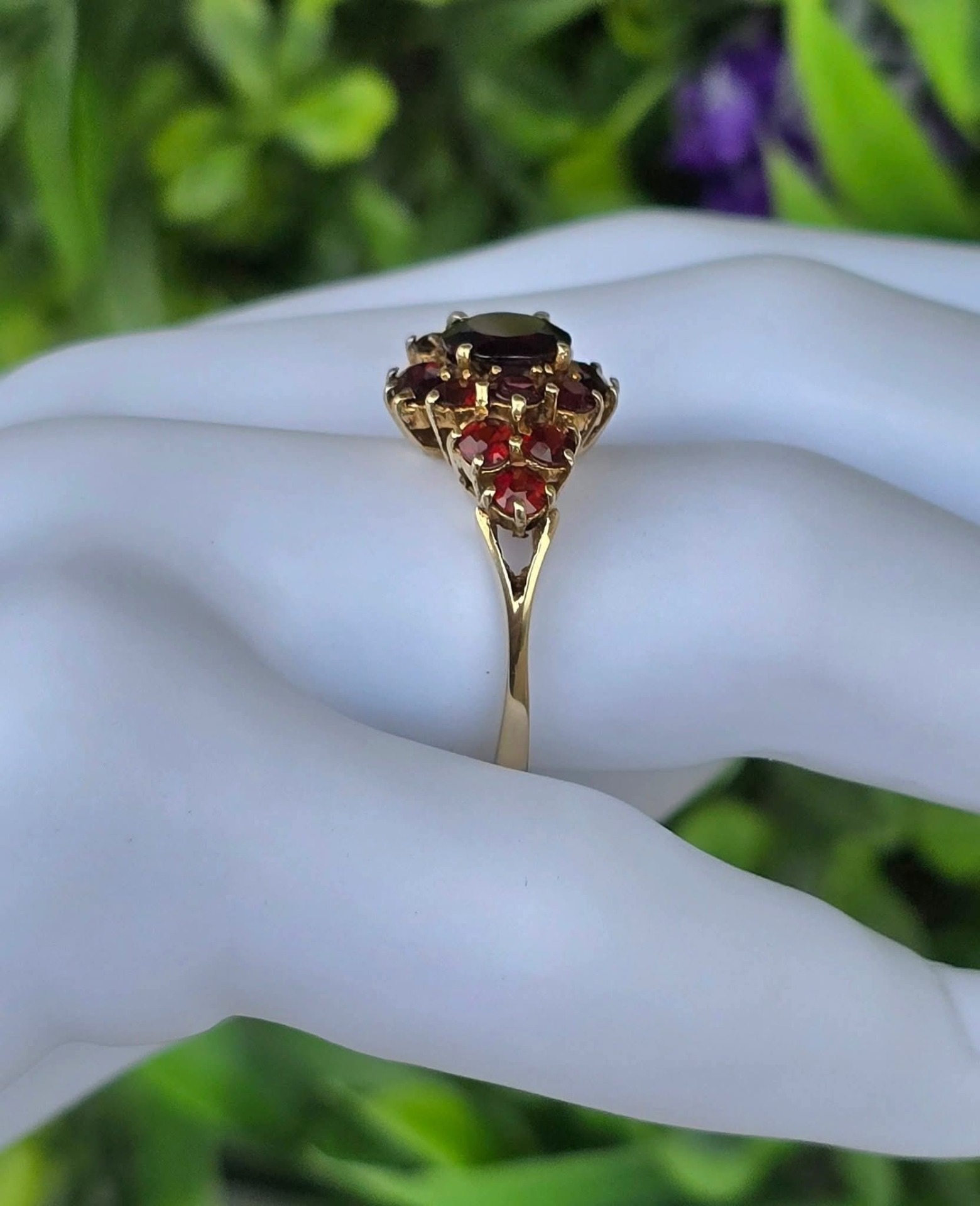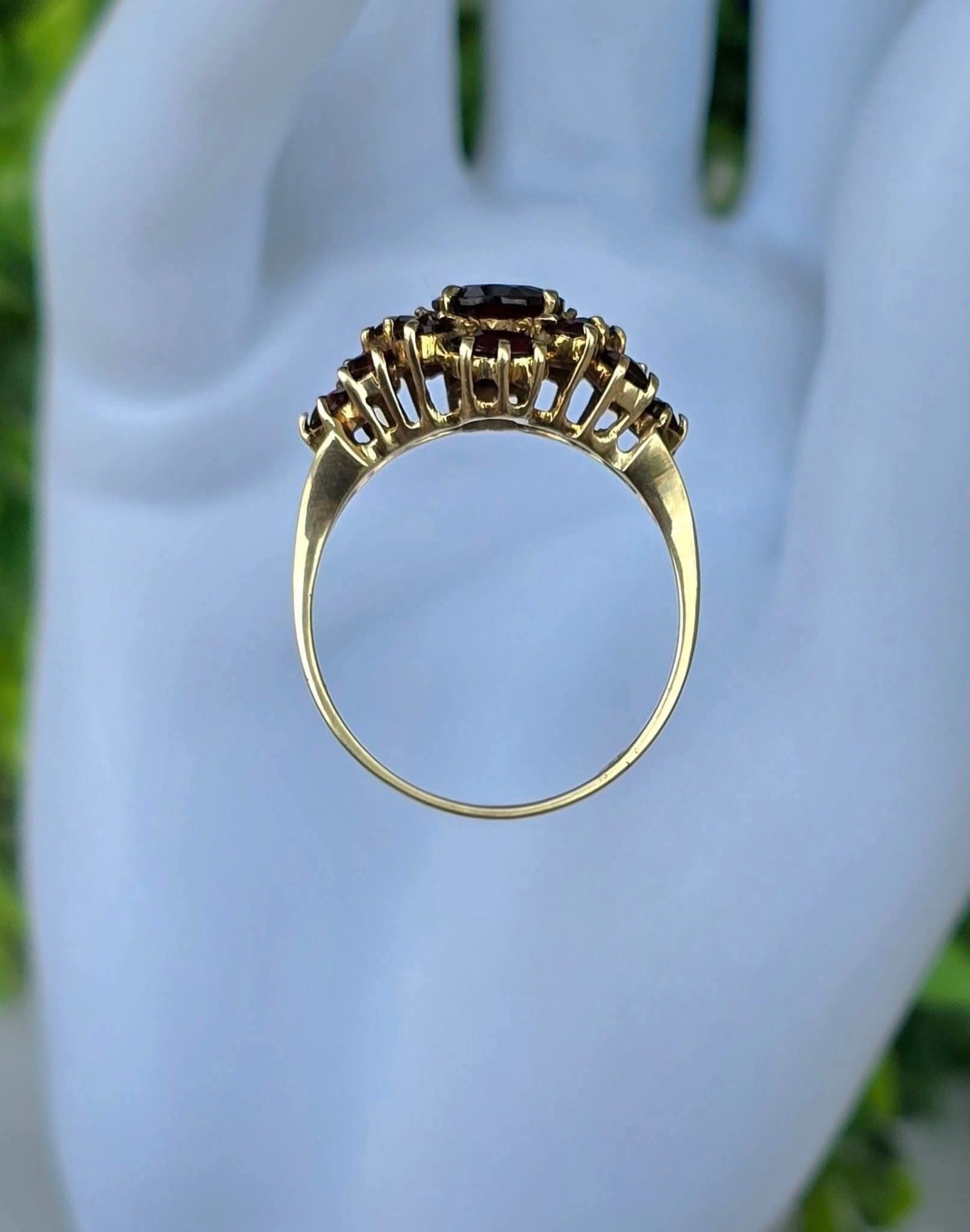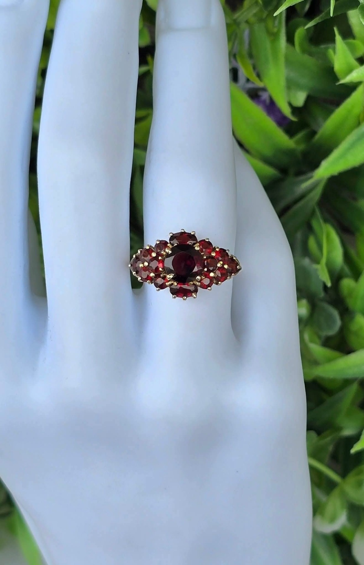 Inel vechi impresionant, din aur de 8K, cu 15 granate Bohemia naturale de calitate superioară, manufactură de excepție.