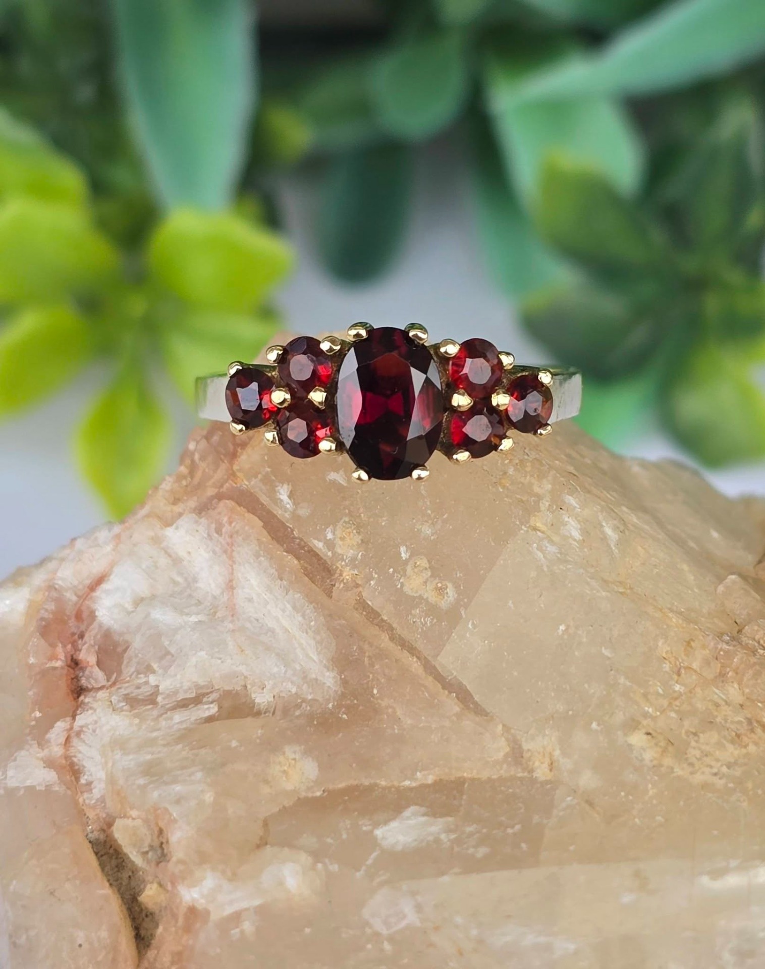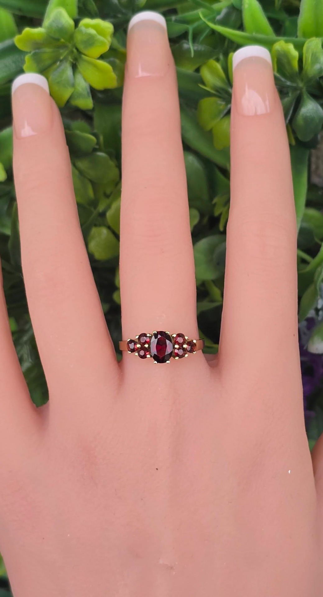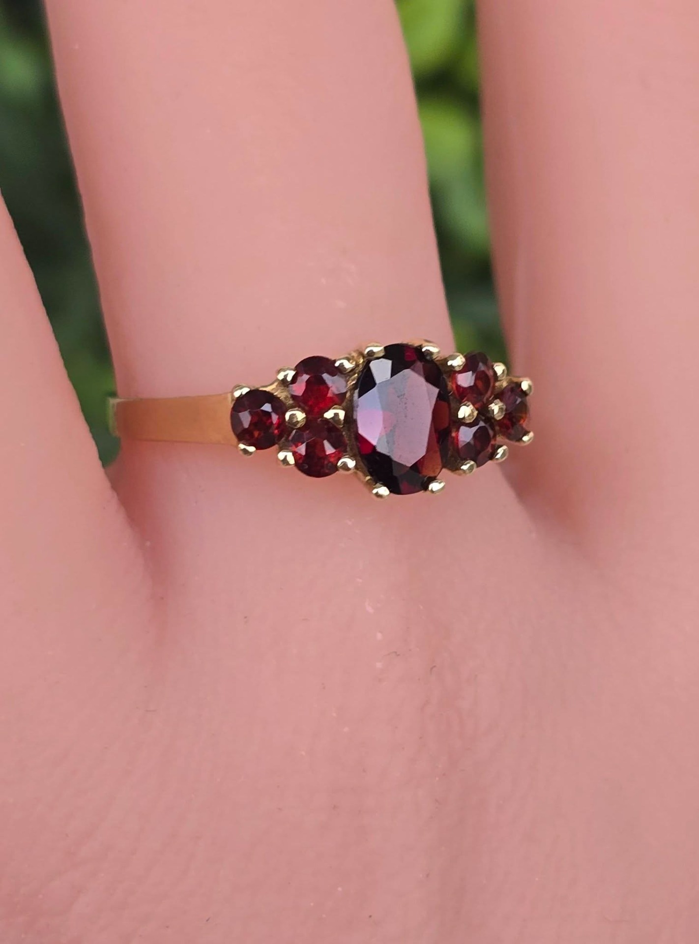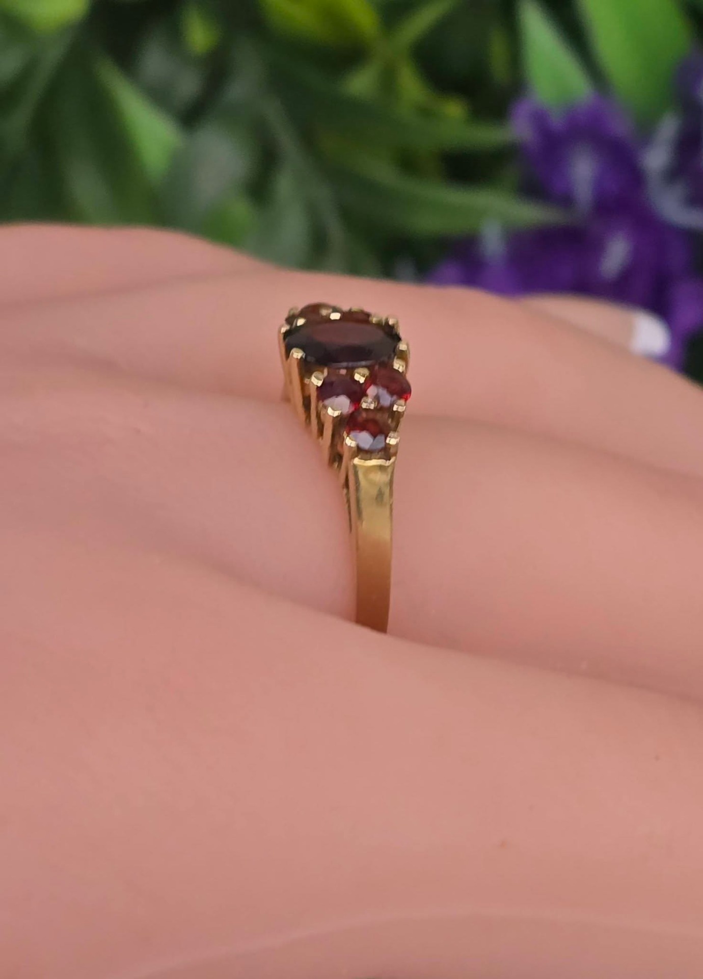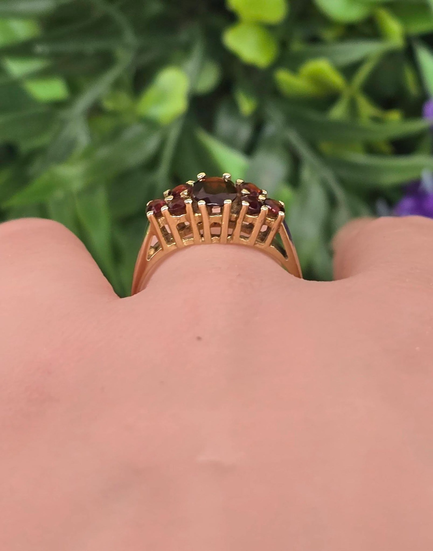 Inel vechi impresionant, din aur de 8K, cu 7 granate Bohemia naturale de calitate superioară, manufactură de excepție.