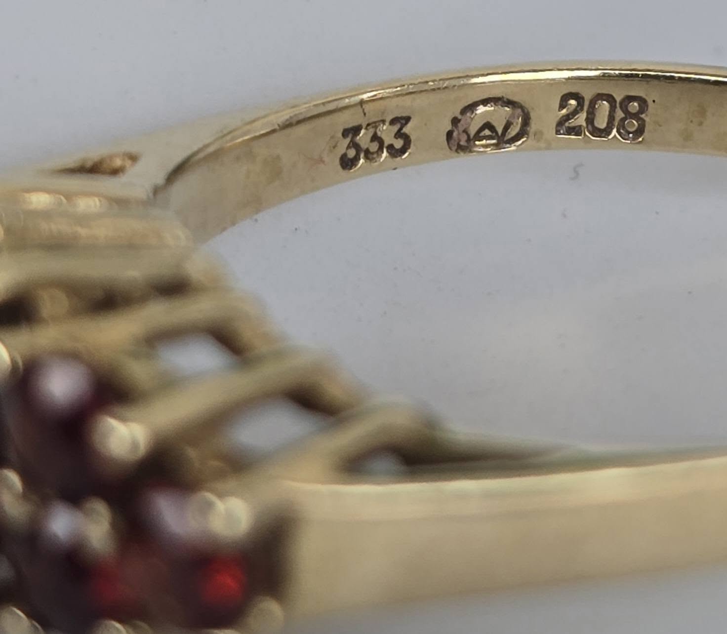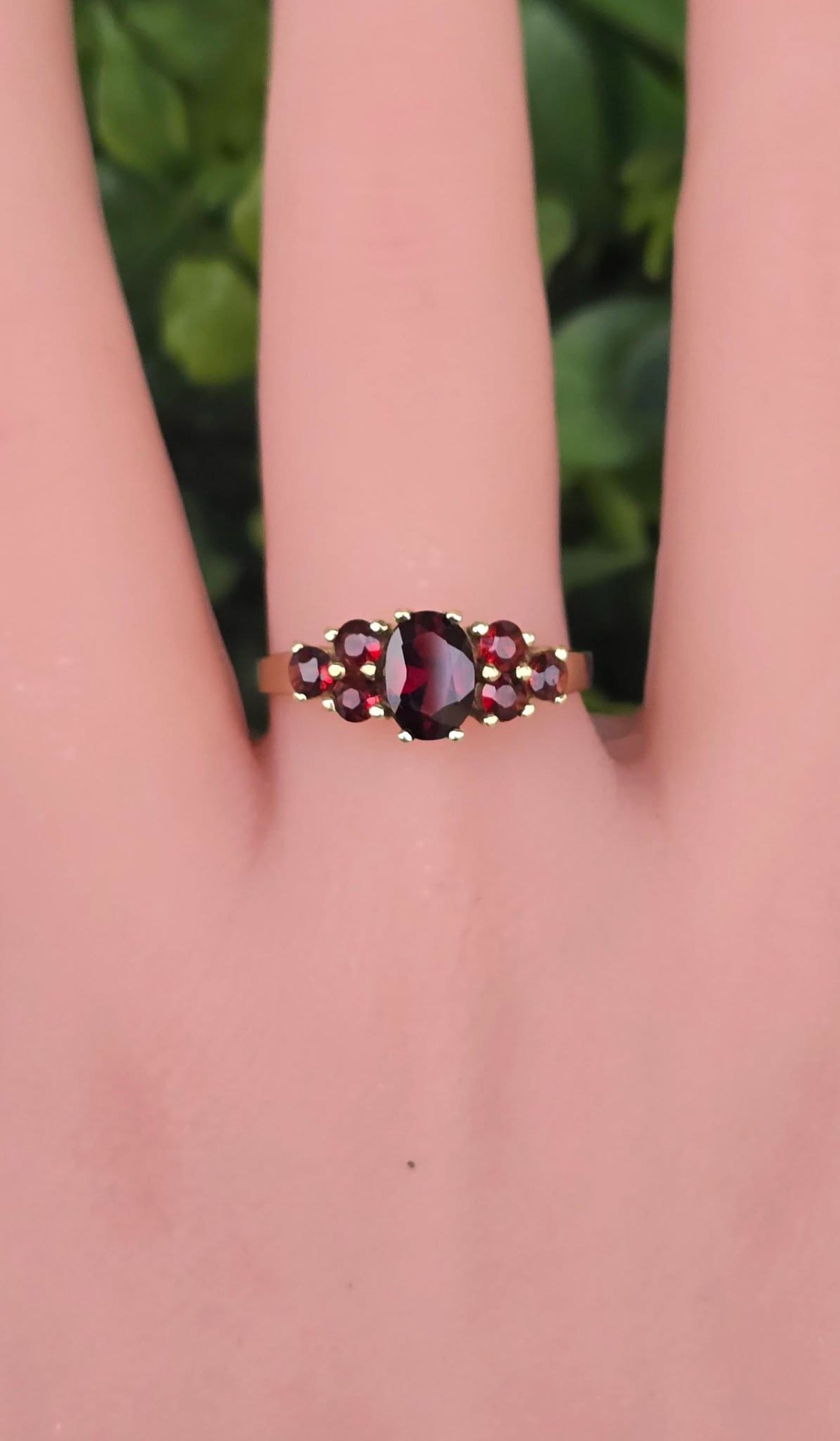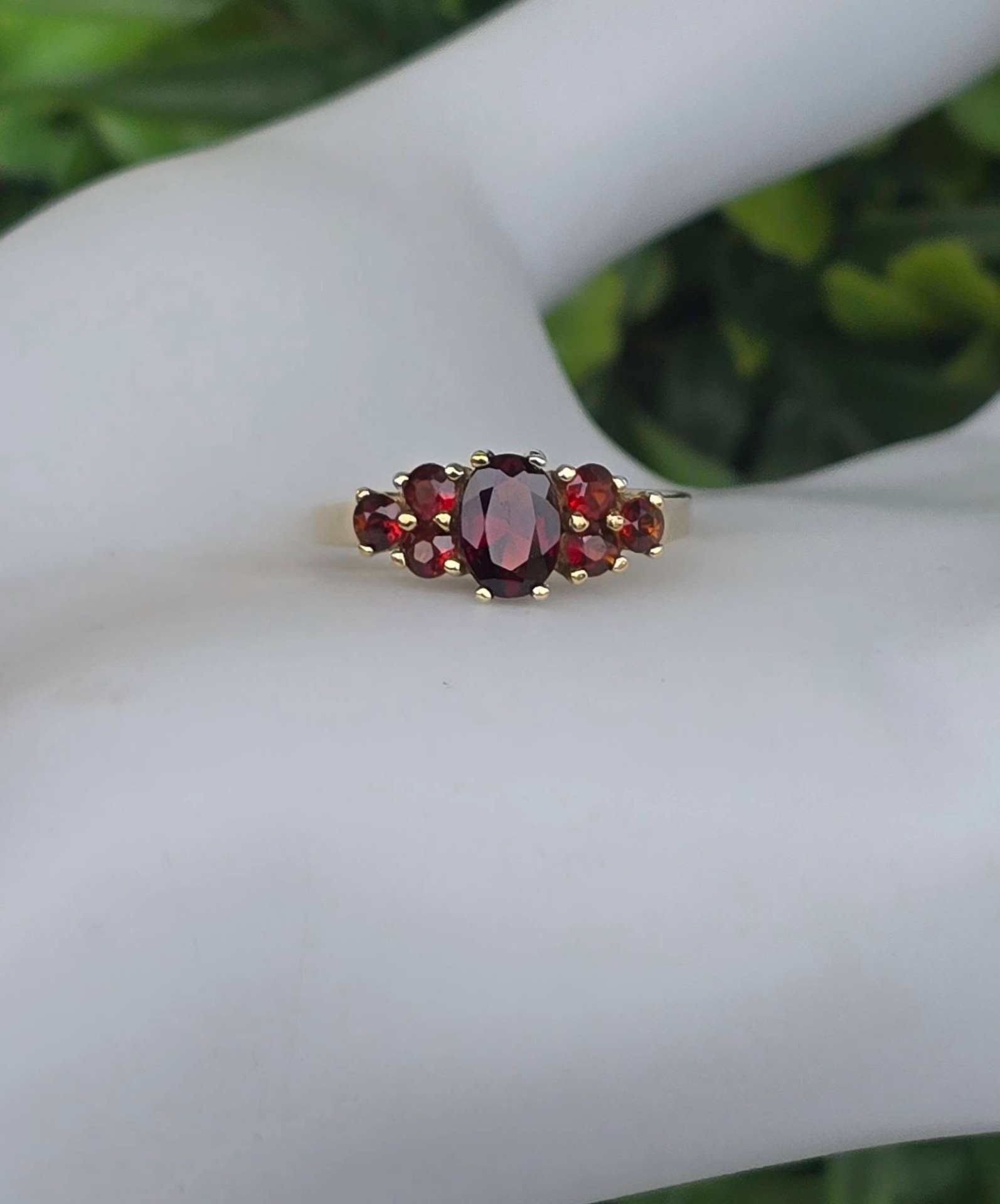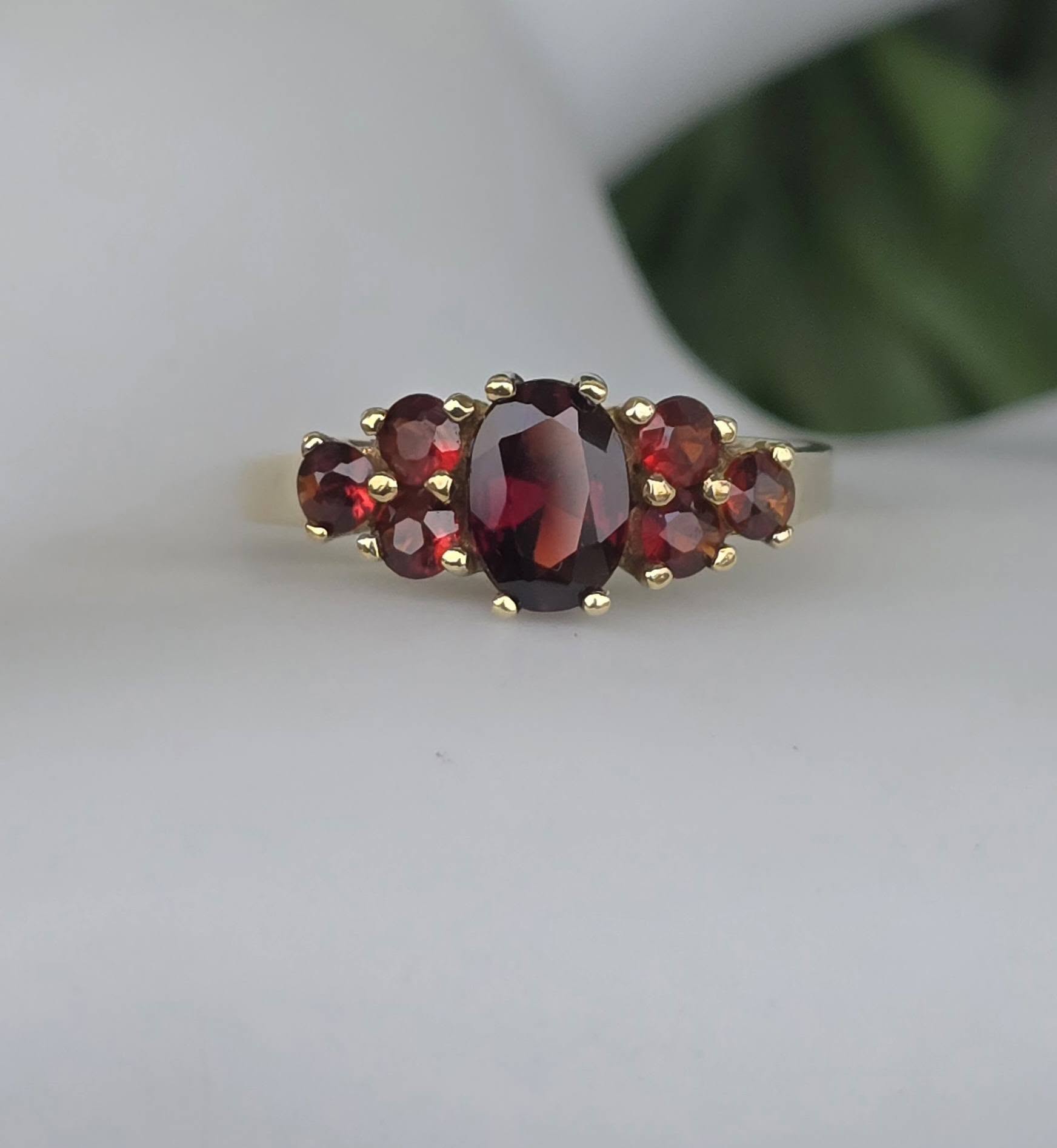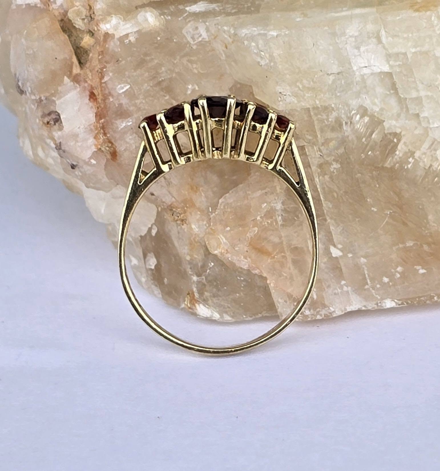 Inel vechi impresionant, din aur de 8K, cu 7 granate Bohemia naturale de calitate superioară, manufactură de excepție.
