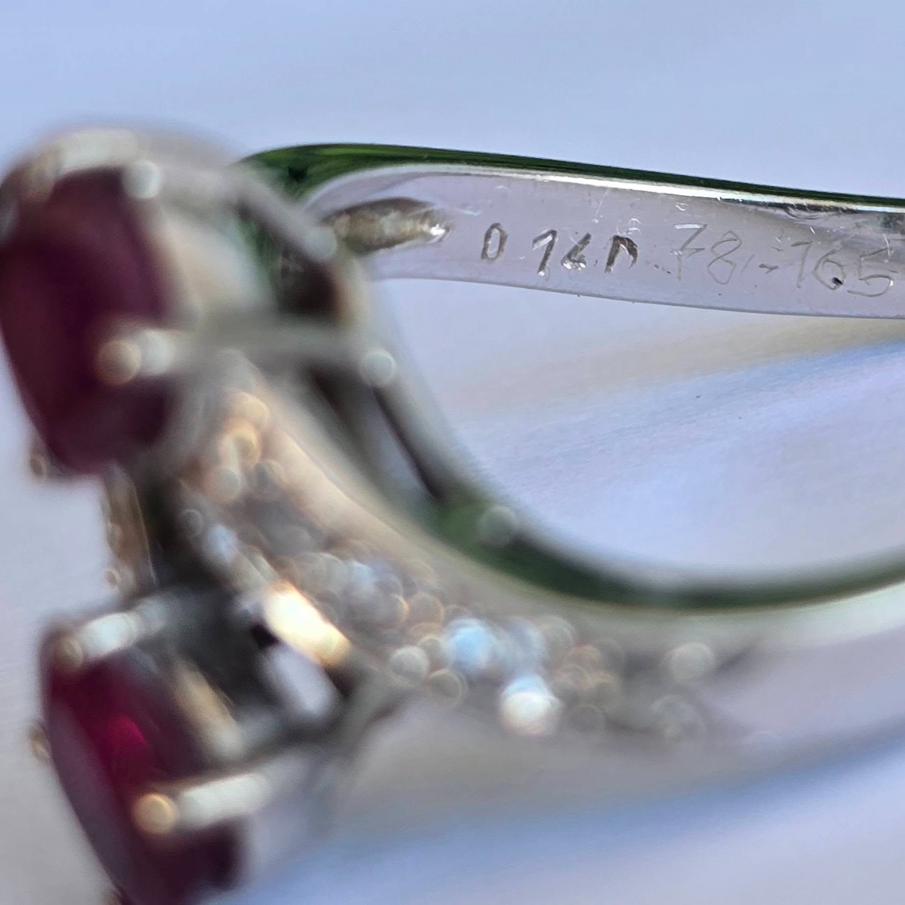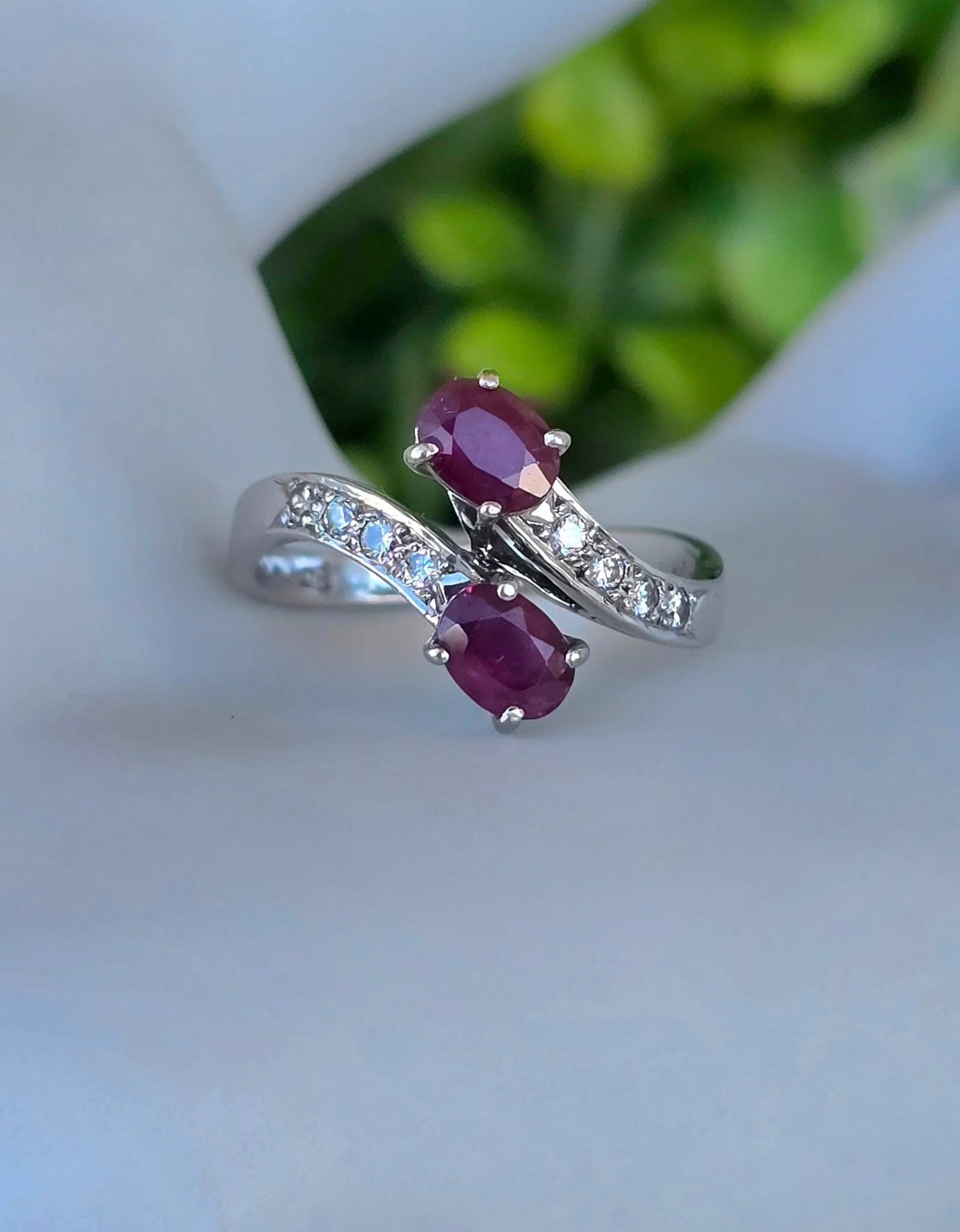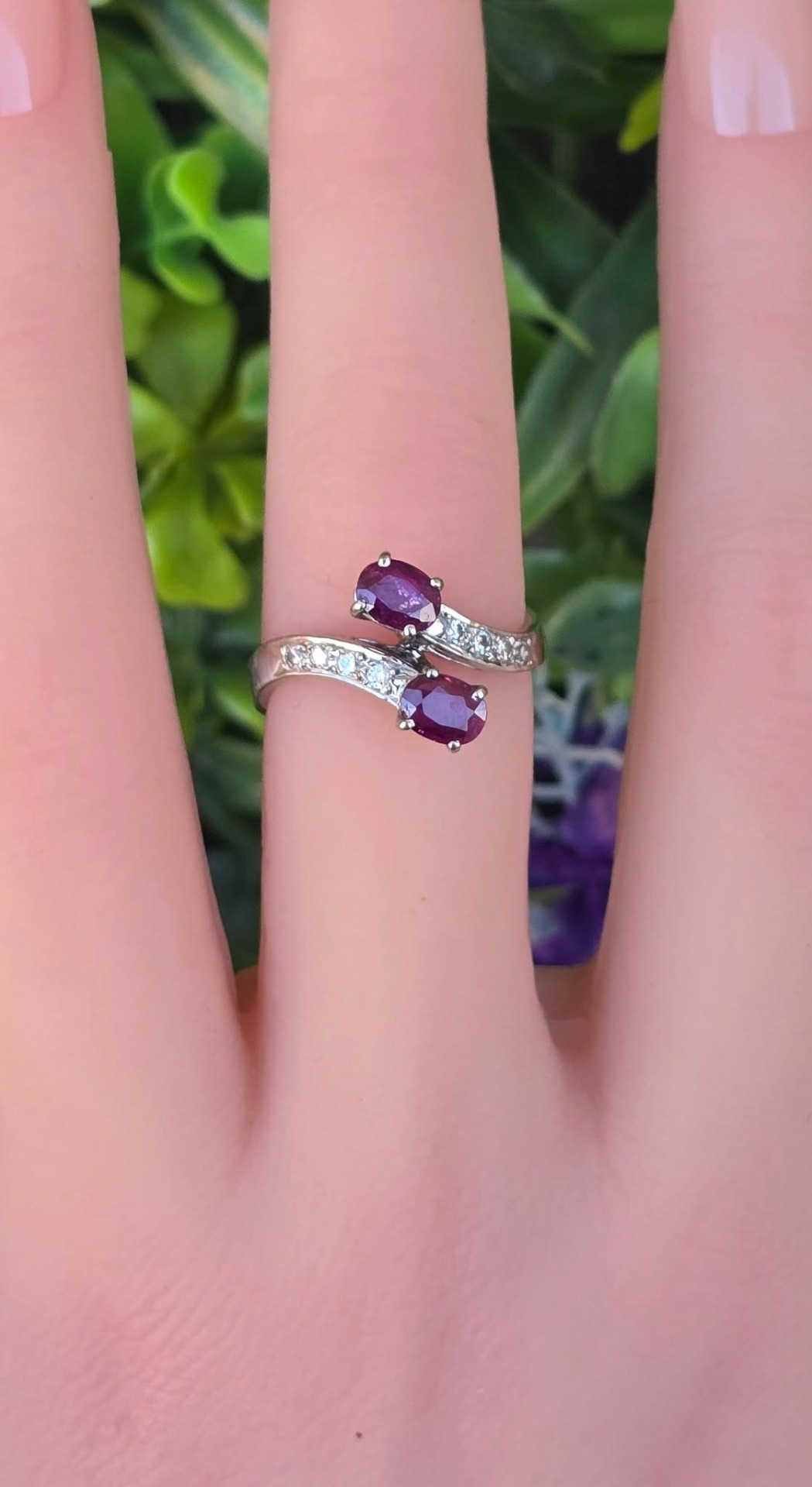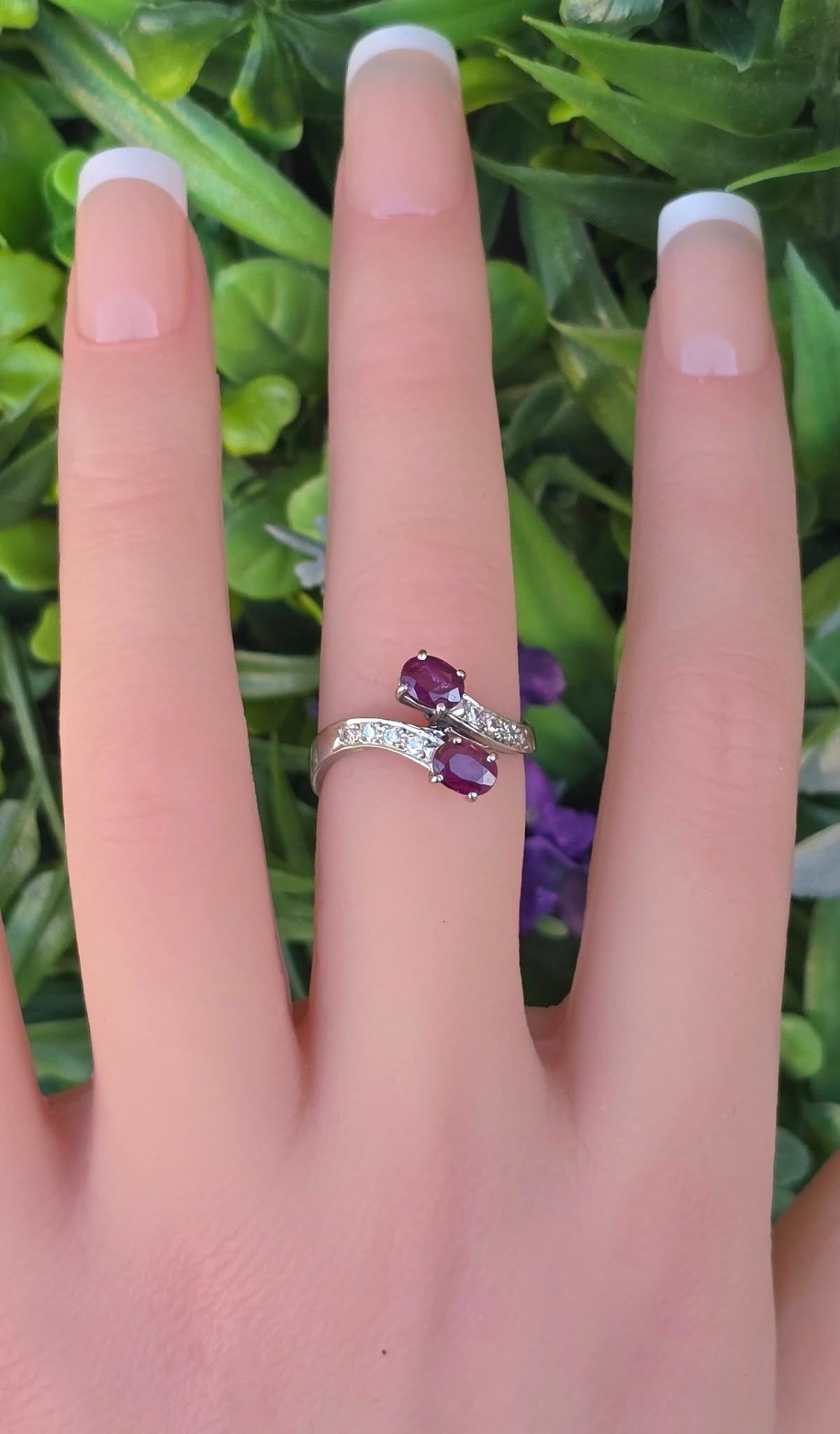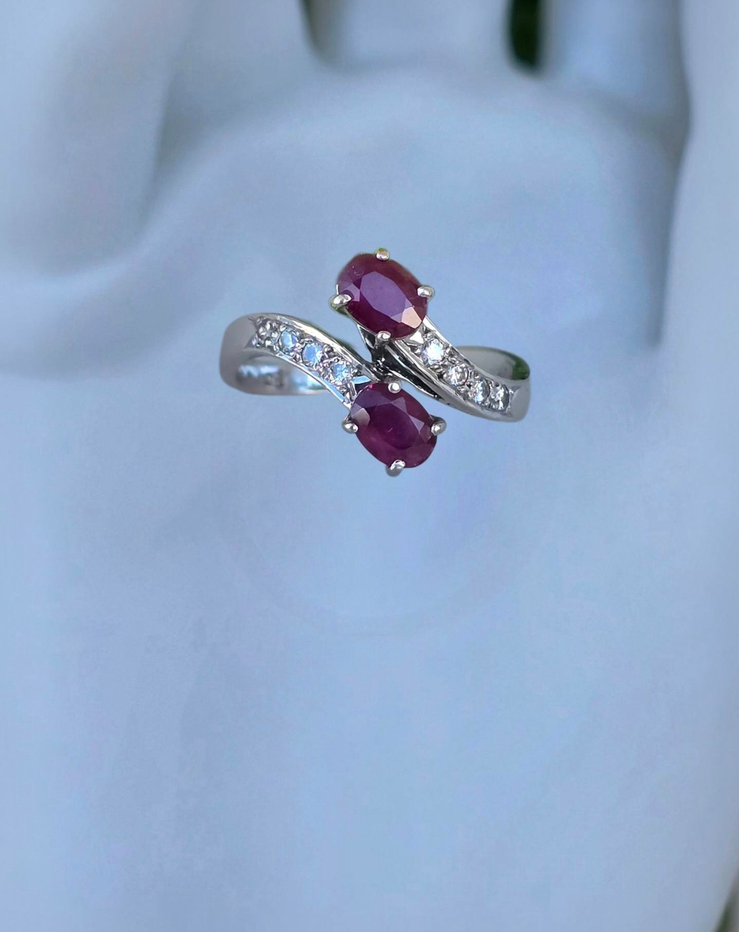 Inel vechi romantic, în stil "toi et moi", din aur de 18K, cu 2 rubine și 8 diamante naturale de calitate superioară.