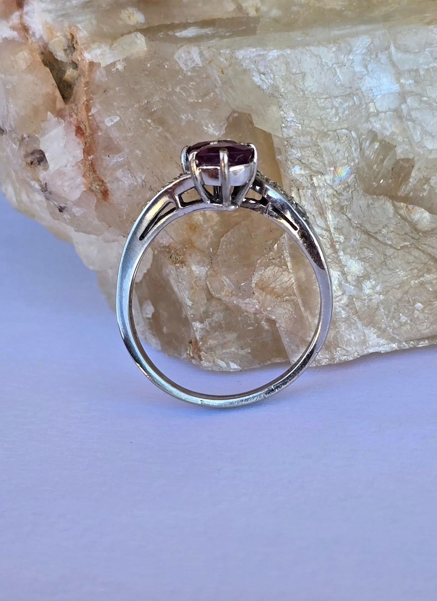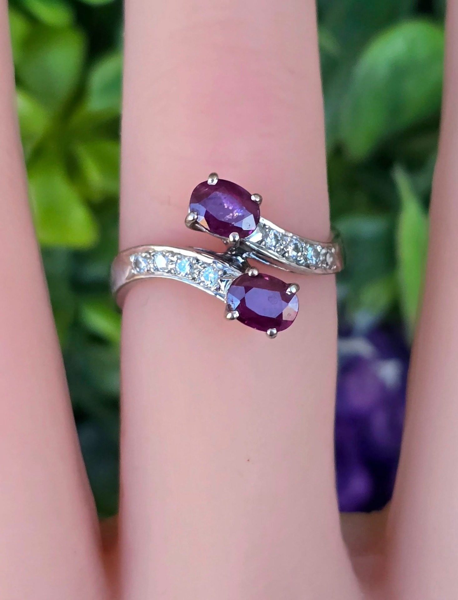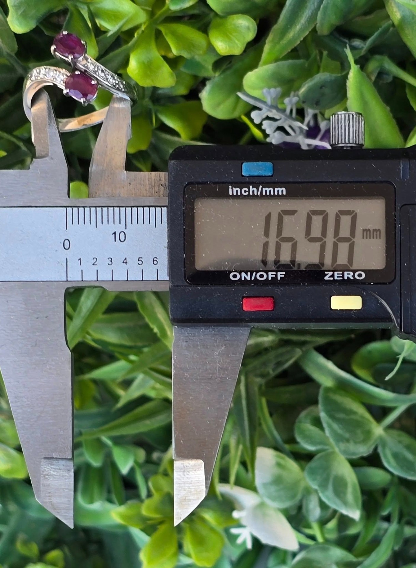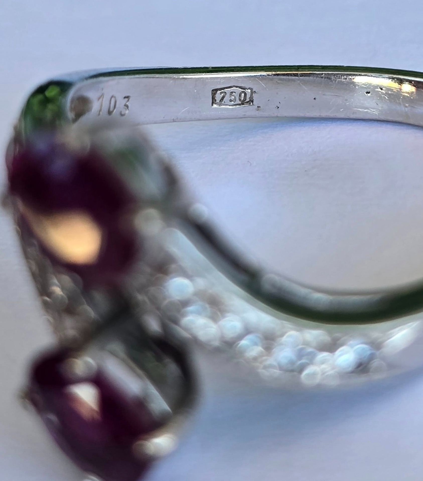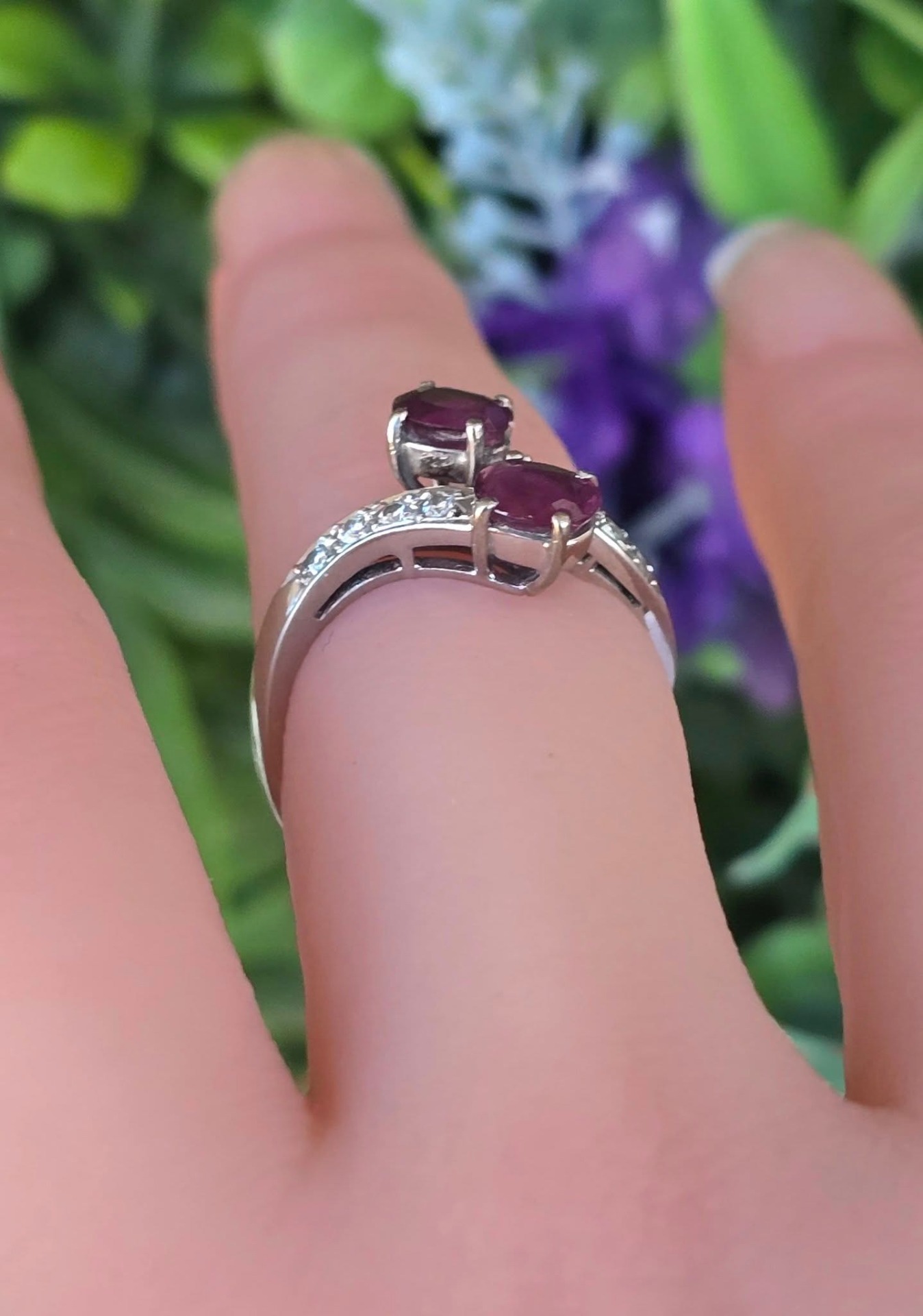 Inel vechi romantic, în stil "toi et moi", din aur de 18K, cu 2 rubine și 8 diamante naturale de calitate superioară.